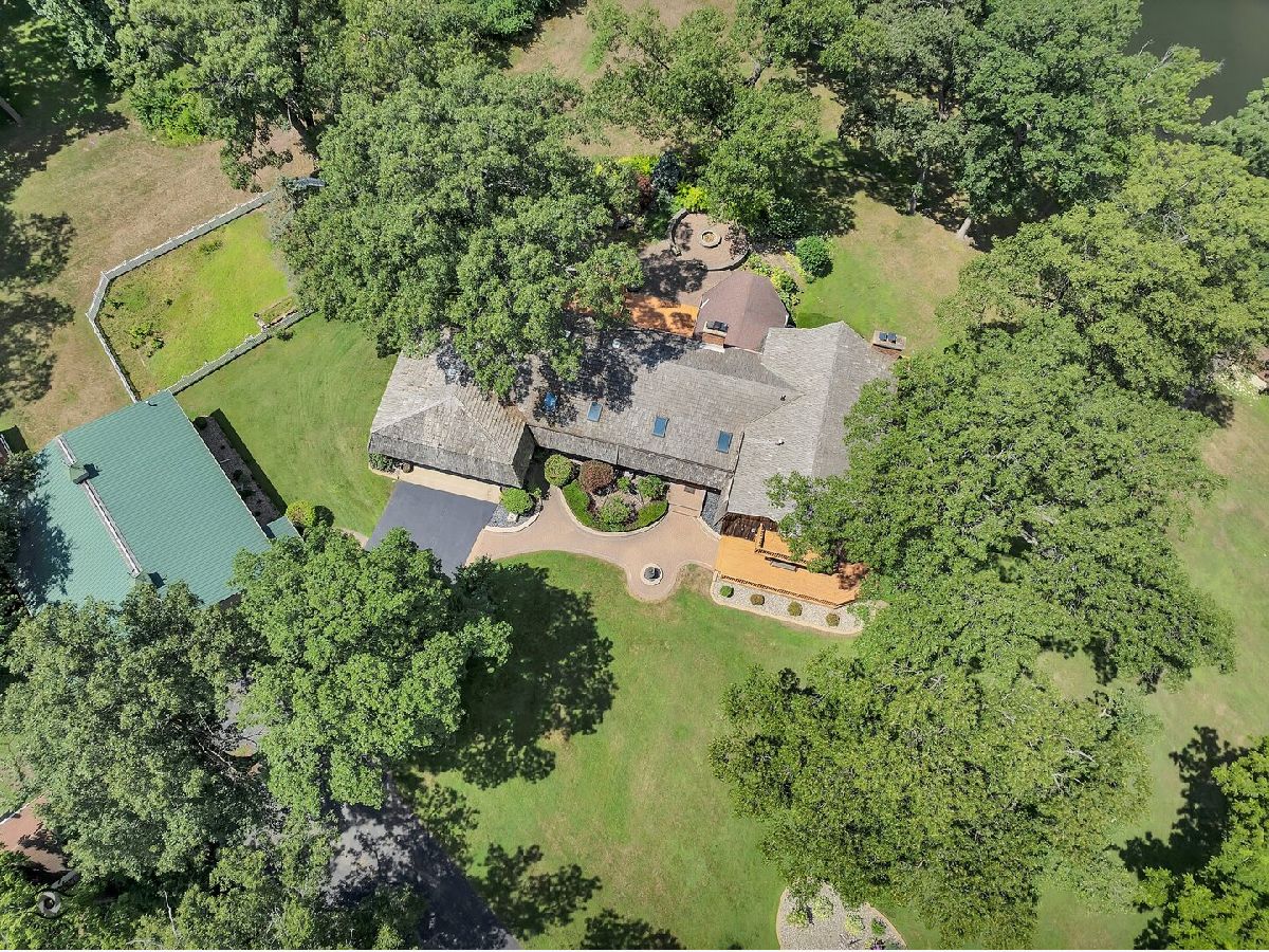 Introducing one of the most extraordinary properties in Kankakee County, offering an unmatched 450 feet of river frontage-one of the largest along the Kankakee River. Nestled on a scenic 3.33-acre hilltop, this breathtaking four-bedroom, four-bath estate is a rare blend of natural beauty, luxury, and privacy. From the moment you arrive, you'll be captivated by the mature trees, the inviting wraparound porch, and multiple balconies that showcase panoramic views of the river. Inside, the home is filled with natural light thanks to an abundance of skylights. The layout is bright and open, featuring three fireplaces, a 15x20 sunroom for year-round enjoyment, and a finished basement complete with a bar, pool table area, and fireplace-ideal for entertaining. The primary suite is a private retreat with windows and a personal balcony that perfectly frame the river's serene flow. Step outside to your own private oasis with a peaceful waterfall pond, a paver patio, a fire pit, and beautifully landscaped grounds. Families will love the charming play area with a playhouse, while those who enjoy gardening will appreciate the picket-fenced garden filled with grapes, raspberries, and strawberries. Additional features include a heated garage, a whole-house generator, and two storage sheds. A standout highlight is the 2,000 square foot SFBFI outbuilding, complete with heating, air conditioning, and an office-perfect for a business owner, hobbyist, or horse enthusiast. Located just an hour and fifteen minutes from Chicago with easy access to I-57, this one-of-a-kind estate offers the perfect balance of peaceful riverside living, thoughtful amenities, and functional space. A truly unparalleled opportunity for the next lucky owner.