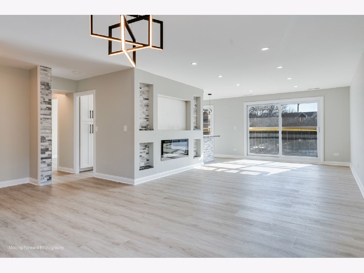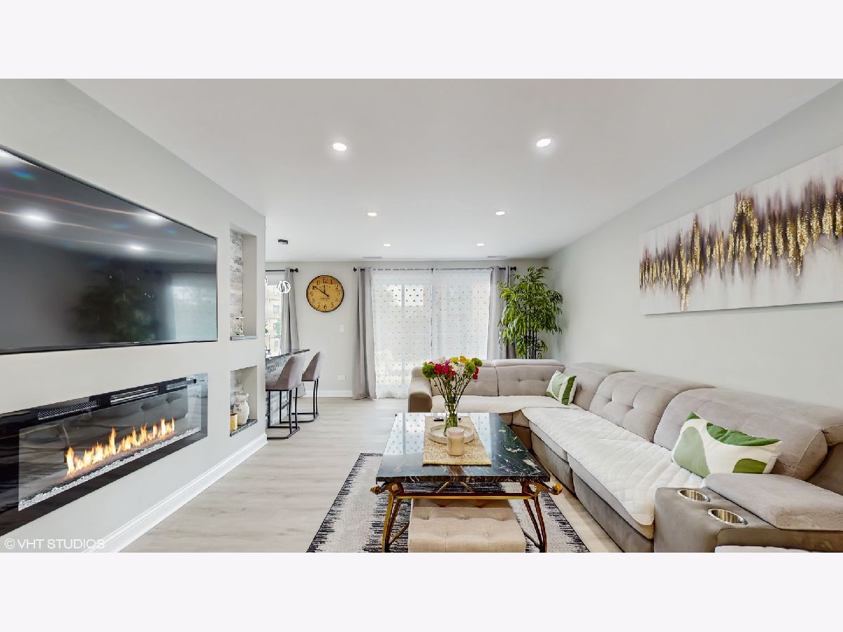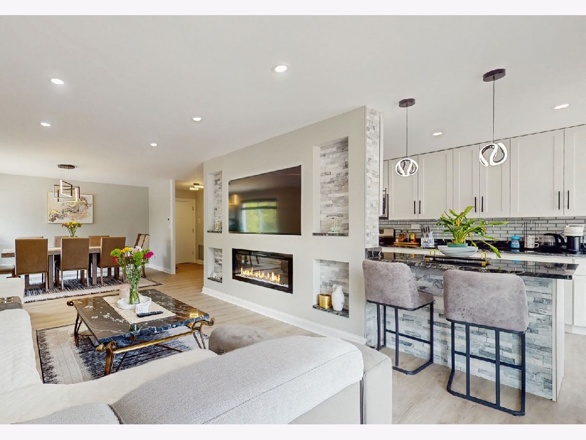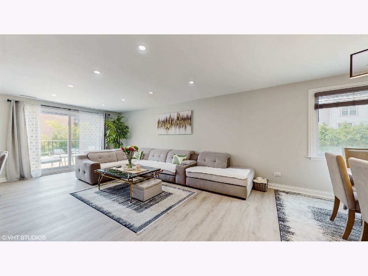 Step into an exceptional and sophisticated property that exudes the warmth of a true home. An abundance of natural light flows through windows, welcoming you into this beautifully renovated 1,800 square foot condo in the vibrant heart of Morton Grove, where modern style meets everyday comfort. The inviting foyer opens to an expansive 30-foot living and dining space, perfect for lively gatherings or cozy evenings by the fireplace with built-in TV hookups. The stunning designer kitchen boasts sleek cabinetry, eye-catching countertops, top-tier stainless steel appliances, a breakfast bar for casual meals, generous storage, and direct access to a spacious balcony ready for outdoor dining and grilling. Retreat to the primary suite, complete with multiple closets including a roomy walk-in, and unwind in a spa-inspired bathroom adorned with marble tile and sophisticated finishes. Two additional bedrooms and a refreshed hall bath offer versatile options for guests or a home office. Enjoy new luxury vinyl plank flooring, custom lighting, and all-new doors throughout. The unit comes with a dedicated garage parking space (#28) and a convenient storage closet just next door. Residents enjoy a well-kept building with a party room, a large laundry area, and an unbeatable location close to shops, dining, and transportation. Discover the perfect blend of luxury and convenience in your next home.