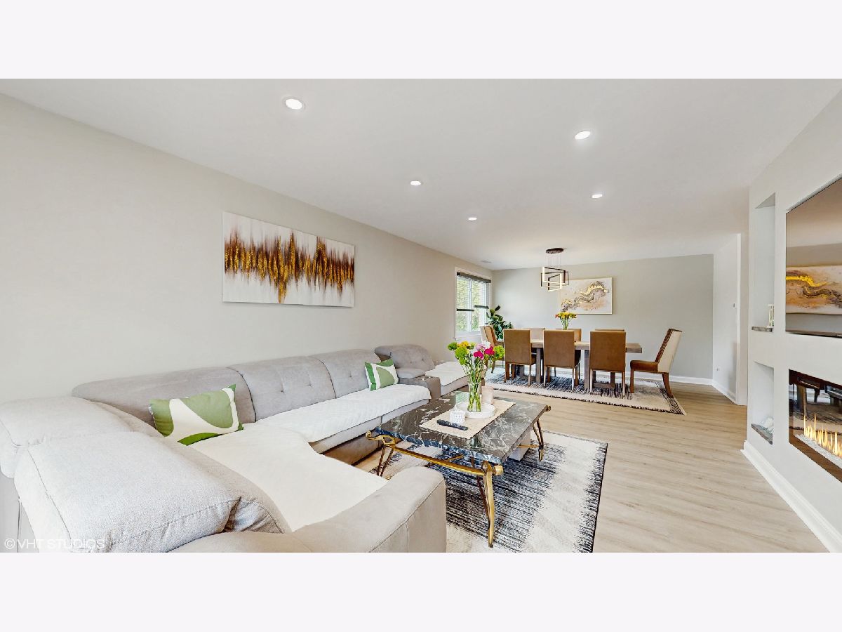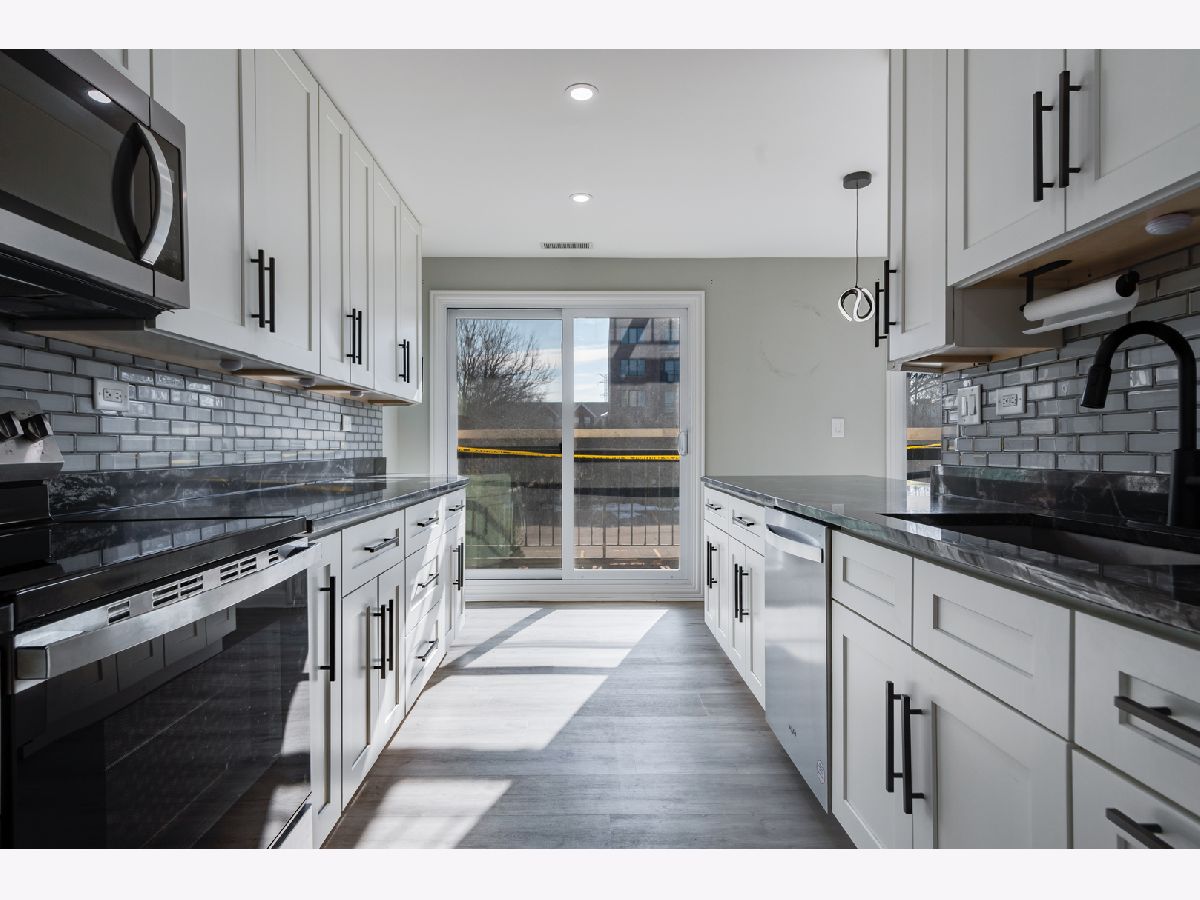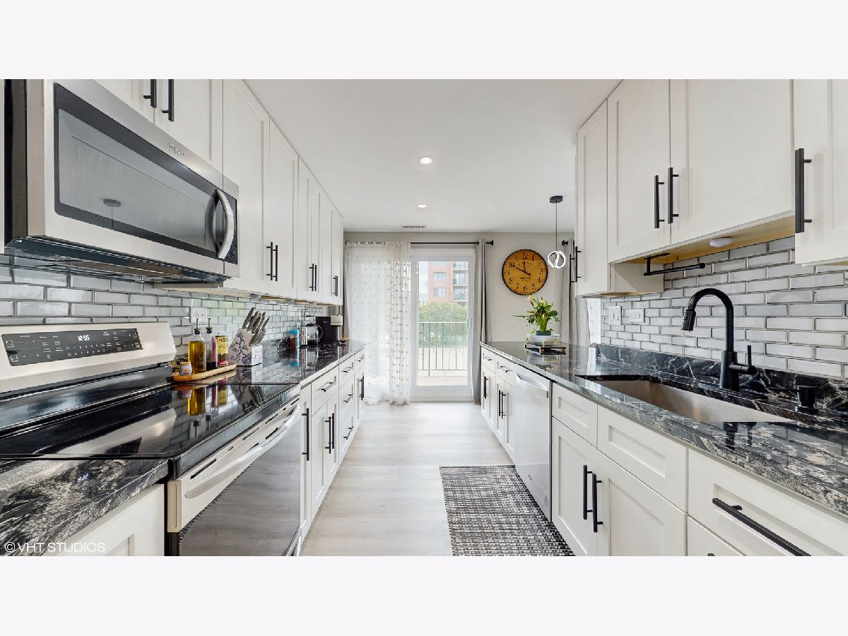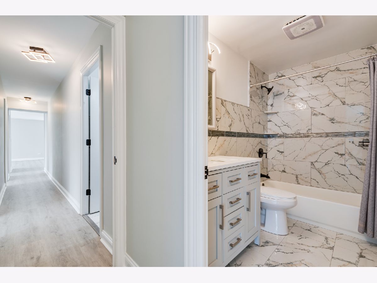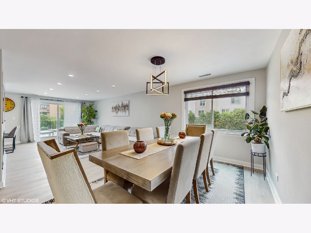 Step into an exceptional and sophisticated property that exudes the warmth of a true home. An abundance of natural light flows through windows, welcoming you into this beautifully renovated 1,800 square foot condo in the vibrant heart of Morton Grove, where modern style meets everyday comfort. The inviting foyer opens to an expansive 30-foot living and dining space, perfect for lively gatherings or cozy evenings by the fireplace with built-in TV hookups. The stunning designer kitchen boasts sleek cabinetry, eye-catching countertops, top-tier stainless steel appliances, a breakfast bar for casual meals, generous storage, and direct access to a spacious balcony ready for outdoor dining and grilling. Retreat to the primary suite, complete with multiple closets including a roomy walk-in, and unwind in a spa-inspired bathroom adorned with marble tile and sophisticated finishes. Two additional bedrooms and a refreshed hall bath offer versatile options for guests or a home office. Enjoy new luxury vinyl plank flooring, custom lighting, and all-new doors throughout. The unit comes with a dedicated garage parking space (#28) and a convenient storage closet just next door. Residents enjoy a well-kept building with a party room, a large laundry area, and an unbeatable location close to shops, dining, and transportation. Discover the perfect blend of luxury and convenience in your next home.