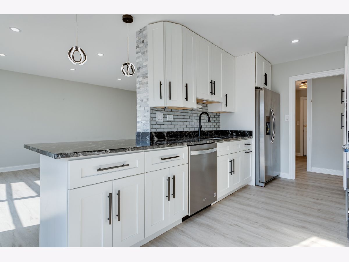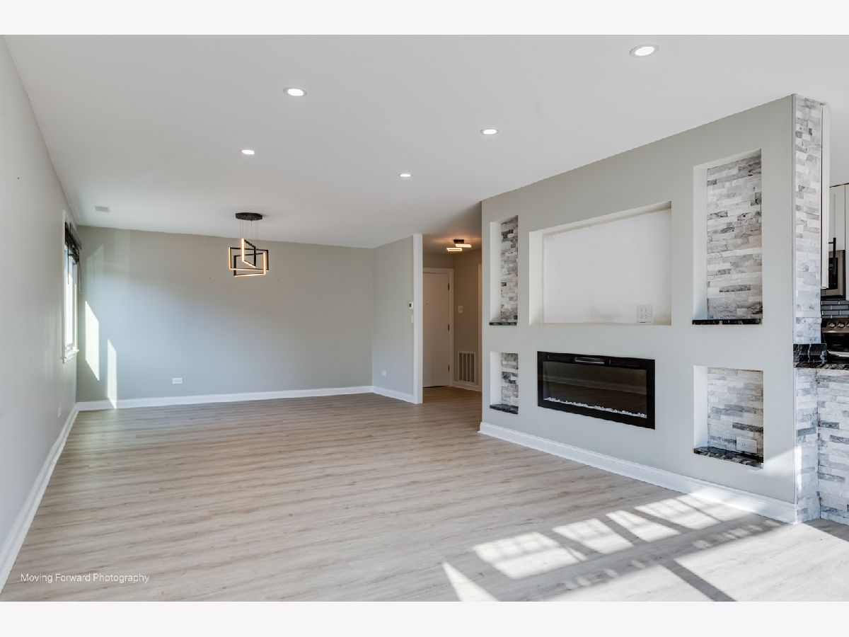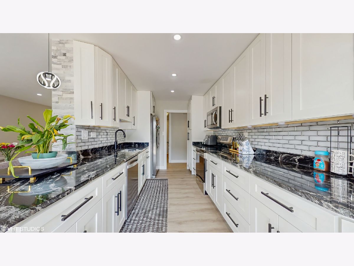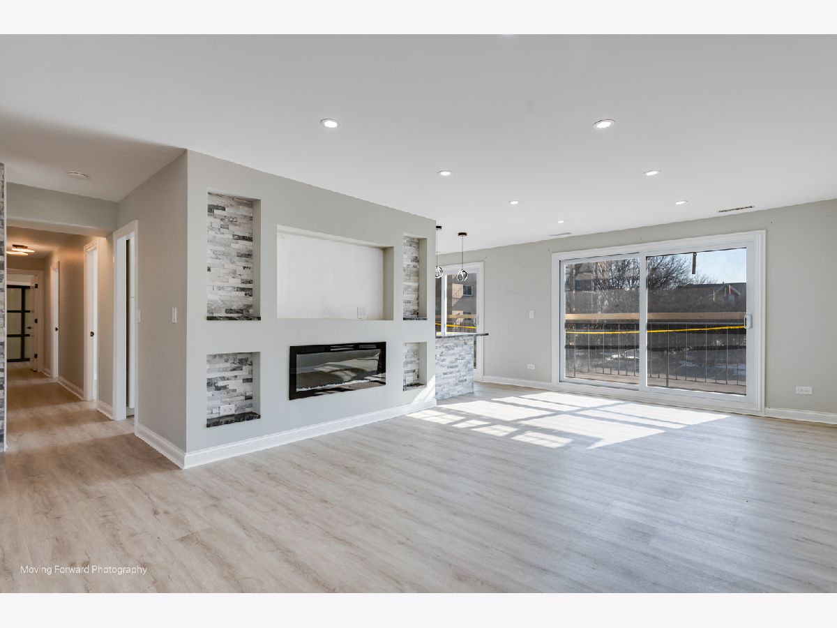 Step into an exceptional and sophisticated property that exudes the warmth of a true home. An abundance of natural light flows through windows, welcoming you into this beautifully renovated 1,800 square foot condo in the vibrant heart of Morton Grove, where modern style meets everyday comfort. The inviting foyer opens to an expansive 30-foot living and dining space, perfect for lively gatherings or cozy evenings by the fireplace with built-in TV hookups. The stunning designer kitchen boasts sleek cabinetry, eye-catching countertops, top-tier stainless steel appliances, a breakfast bar for casual meals, generous storage, and direct access to a spacious balcony ready for outdoor dining and grilling. Retreat to the primary suite, complete with multiple closets including a roomy walk-in, and unwind in a spa-inspired bathroom adorned with marble tile and sophisticated finishes. Two additional bedrooms and a refreshed hall bath offer versatile options for guests or a home office. Enjoy new luxury vinyl plank flooring, custom lighting, and all-new doors throughout. The unit comes with a dedicated garage parking space (#28) and a convenient storage closet just next door. Residents enjoy a well-kept building with a party room, a large laundry area, and an unbeatable location close to shops, dining, and transportation. Discover the perfect blend of luxury and convenience in your next home.