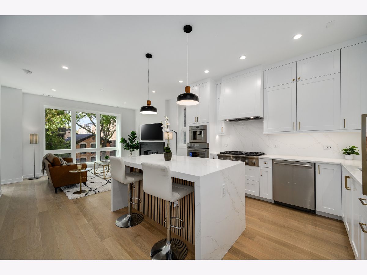 LAST ONE LEFT!!! West Town's newest luxury condos are here and ready to impress! Welcome to 867 N Marshfield Unit 2. The living spaces are nothing short of magnificent! A chef's kitchen complete with custom cabinetry, waterfall edge quartz counters, exquisite lighting/hardware, top-of-the-line Thermador appliances, highlighted by the showstopper quartz island perfect for gatherings (seats 4). The sun-filled living room is an absolute masterpiece with soaring ceilings, floor-to-ceiling windows, stone fireplace and wide plank white oak hardwood flooring. The primary bedroom makes you feel like you're on vacation, with your own gorgeous spa-like bathroom featuring a fully enclosed steam shower, double sink quartz vanity, dimmable backlit mirrors and radiant heated floors. The primary bedroom also offers TWO professionally custom-built closets. Premium options available include an Elan/Nice smart home automation system that can control room temperature, security locks, lighting, speakers in every room, window treatments and video door entry. 14X11 BRICK PAVER PATIO INCLUDED. One garage parking spot is included. Unbelievable A++ location close to public transit, interstate, boutique shops, and restaurants, with every bell and whistle already included. Your Home is ready for delivery!!