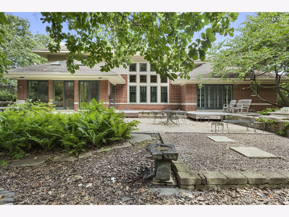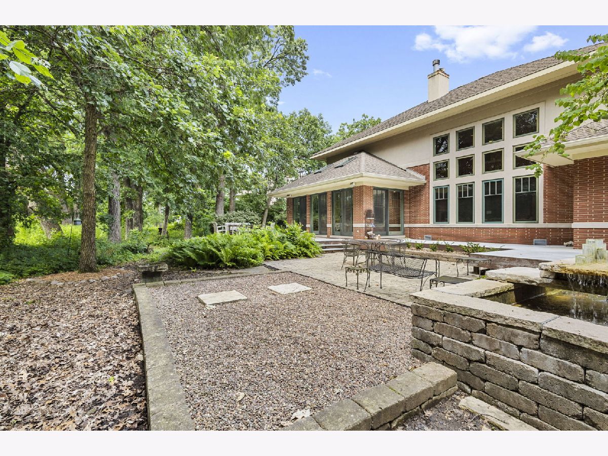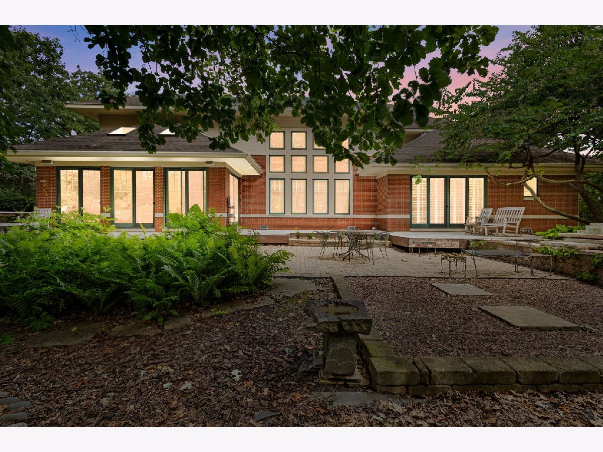 This stunning home is a showcase of Frank Lloyd Wright-inspired Prairie style, thoughtfully designed to harmonize with its natural surroundings. Situated on a quiet cul-de-sac, the home's free-flowing layout was intentionally crafted for comfortable and connected family living. A striking stained glass front door welcomes you inside, where the architecture immediately captivates, drawing you inward and upward. The main level features beautiful hardwood floors, soaring 10-foot ceilings, and a functional floor plan designed for modern living. Highlights include a dedicated first-floor office, a cozy library, a spacious primary suite with an elegant bath, a well-appointed kitchen with an adjoining eating area, and a spectacular great room with 19-foot ceilings and a dramatic wall of windows that frame views of the lush backyard - seamlessly blending structure and landscape. The second level offers three generously sized bedrooms, each with large closets, a Jack and Jill bath, and a private en suite. A walk-up staircase leads to an unfinished upper level. The inviting lower level, complete with a two-sided fireplace, offers the perfect setting for extended family fun or entertaining guests. Kitchen has maple cabinetry, granite countertops, stainless steel appliances, wet bar with beverage fridge and walk in pantry. The office has double French doors. There is a cheery sunroom off the kitchen with skylights and access to the deck, brick paver patio, and tranquil waterfall. The catwalk overlooking the great room joins the third bedroom with en suite bath. The lower level has radiant floor heat, ample space for recreational activities, additional full bath, and access to three car garage. Conveniently located near shopping, dining, major expressways, and the vibrant Burr Ridge Village Center, this home masterfully combines architectural beauty, thoughtful design, and everyday functionality.