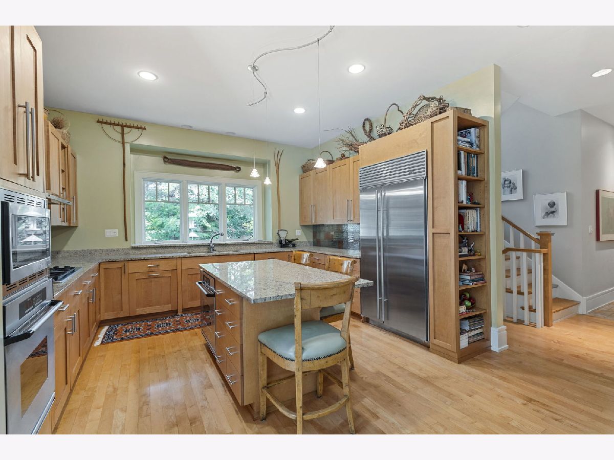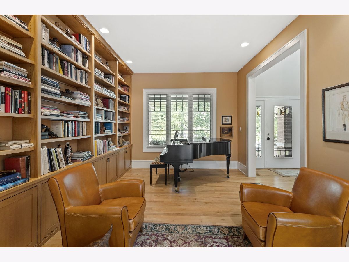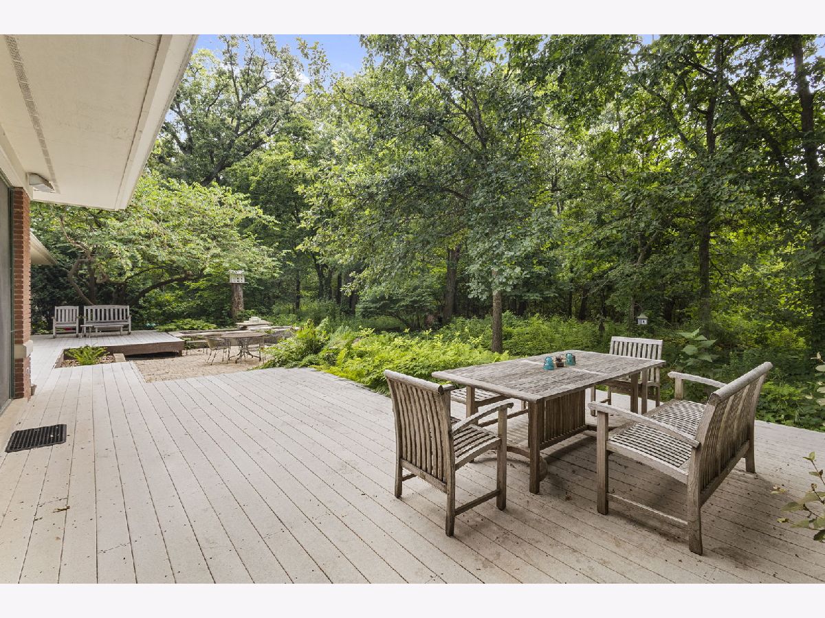 This stunning home is a showcase of Frank Lloyd Wright-inspired Prairie style, thoughtfully designed to harmonize with its natural surroundings. Situated on a quiet cul-de-sac, the home's free-flowing layout was intentionally crafted for comfortable and connected family living. A striking stained glass front door welcomes you inside, where the architecture immediately captivates, drawing you inward and upward. The main level features beautiful hardwood floors, soaring 10-foot ceilings, and a functional floor plan designed for modern living. Highlights include a dedicated first-floor office, a cozy library, a spacious primary suite with an elegant bath, a well-appointed kitchen with an adjoining eating area, and a spectacular great room with 19-foot ceilings and a dramatic wall of windows that frame views of the lush backyard - seamlessly blending structure and landscape. The second level offers three generously sized bedrooms, each with large closets, a Jack and Jill bath, and a private en suite. A walk-up staircase leads to an unfinished upper level. The inviting lower level, complete with a two-sided fireplace, offers the perfect setting for extended family fun or entertaining guests. Kitchen has maple cabinetry, granite countertops, stainless steel appliances, wet bar with beverage fridge and walk in pantry. The office has double French doors. There is a cheery sunroom off the kitchen with skylights and access to the deck, brick paver patio, and tranquil waterfall. The catwalk overlooking the great room joins the third bedroom with en suite bath. The lower level has radiant floor heat, ample space for recreational activities, additional full bath, and access to three car garage. Conveniently located near shopping, dining, major expressways, and the vibrant Burr Ridge Village Center, this home masterfully combines architectural beauty, thoughtful design, and everyday functionality.