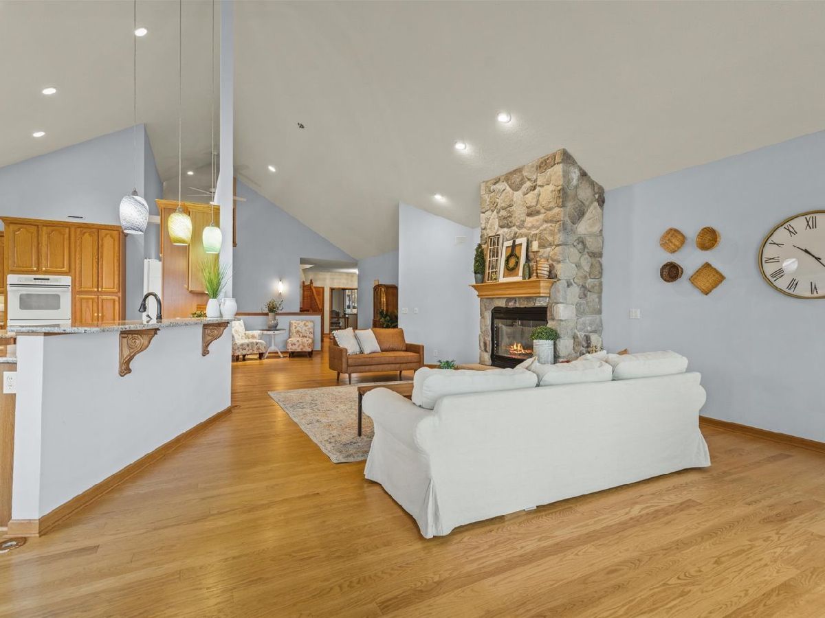 Stunning 5,500 sq. ft. Custom LAKEFRONT Home! Exceptional lake living awaits in this one-of-a-kind property featuring a brand-new steel seawall and concrete patio (2024). Designed for both luxury and function, the main floor boasts a private office, spacious primary suite with a glass block shower, jetted soaker tub, and walk-in closets, plus beautiful custom wood flooring throughout. Enjoy convenience with main floor laundry and an additional mudroom. The open-concept kitchen and living room impress with vaulted ceilings, floor-to-ceiling windows showcasing breathtaking lake views, and a dramatic stone fireplace as the centerpiece. Upstairs, a loft with a half bath offers flexible living space. The walk-out lower level features radiant heated floors, a second full kitchen, three additional bedrooms, home gym, solarium, and a family room highlighted by a stunning three-sided stone fireplace. Car enthusiasts will love the heated, insulated 5.5-car garage. Other updates include a new roof (2020) and new furnace and central air (2025). Outdoors, enjoy panoramic lake views from the maintenance-free deck, gather on the patio, or head down to the brand-new steel seawall (2024) and shoreline. The boat is negotiable, making it the perfect opportunity to step right into the luxury lake lifestyle. Just a short stroll to the shoreline-this home is truly a rare find! Enjoy access to all of the community amenities Lake Summerset has to offer! Don't miss your chance to own a rare lakefront gem in Lake Summerset-where every day feels like a vacation! Located in the gated Lake Summerset community-known for its 285-acre stocked lake-residents enjoy two beaches, marinas, a heated pool, splash pad, tennis, pickleball, disc golf, a dog park, playgrounds, and year-round events. Just 30minutes from Rockford, Freeport, and Monroe WI, and 90 minutes from Chicago via I-90.