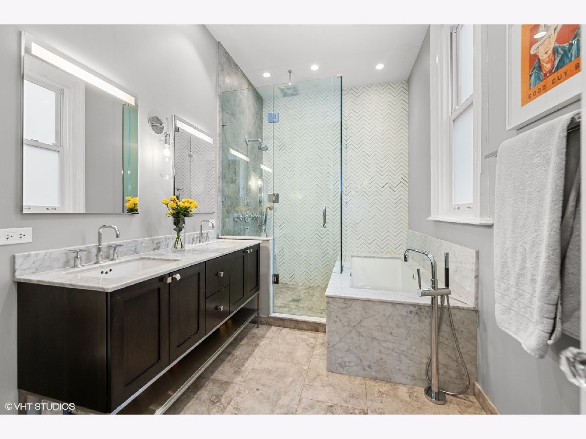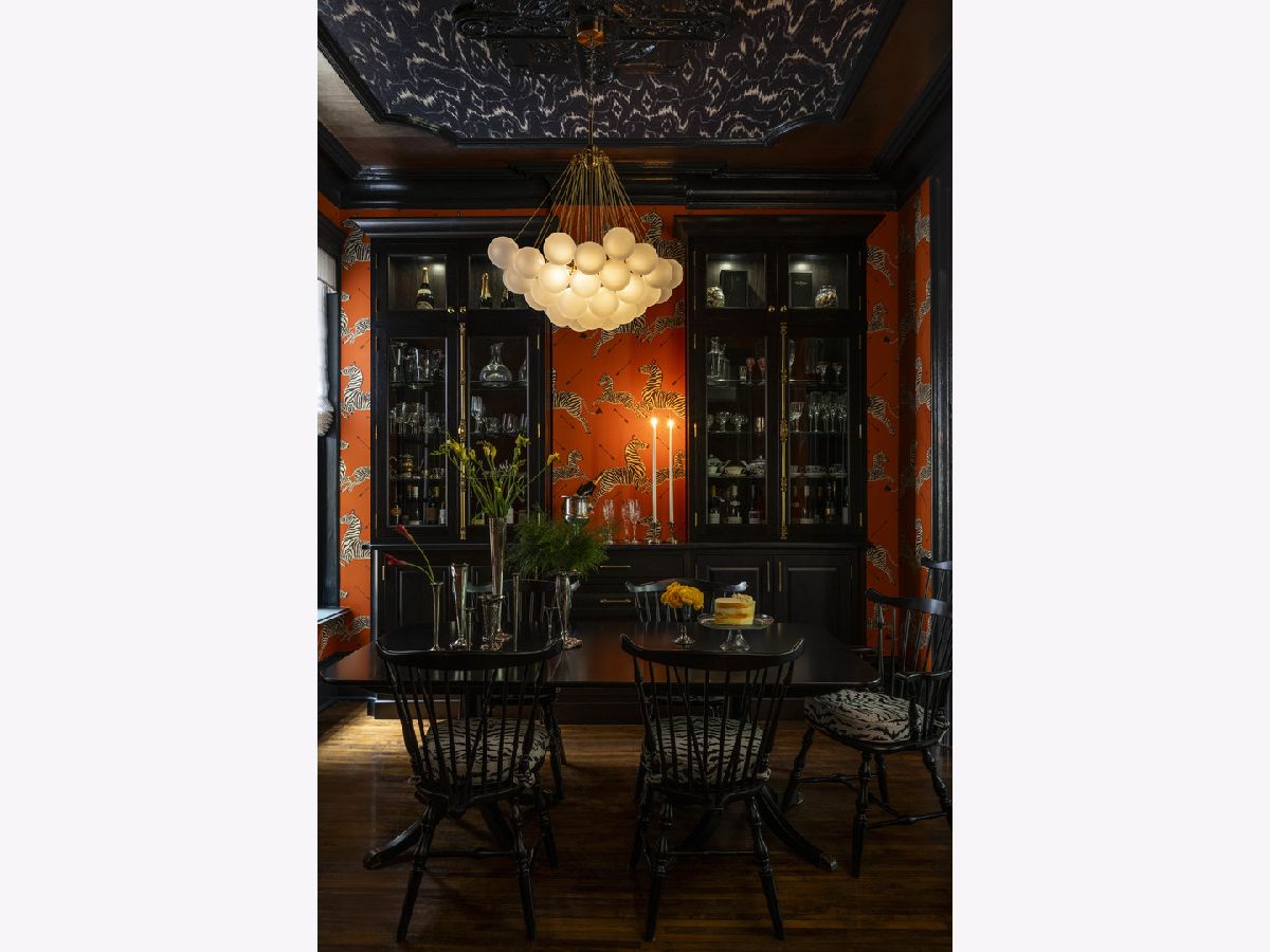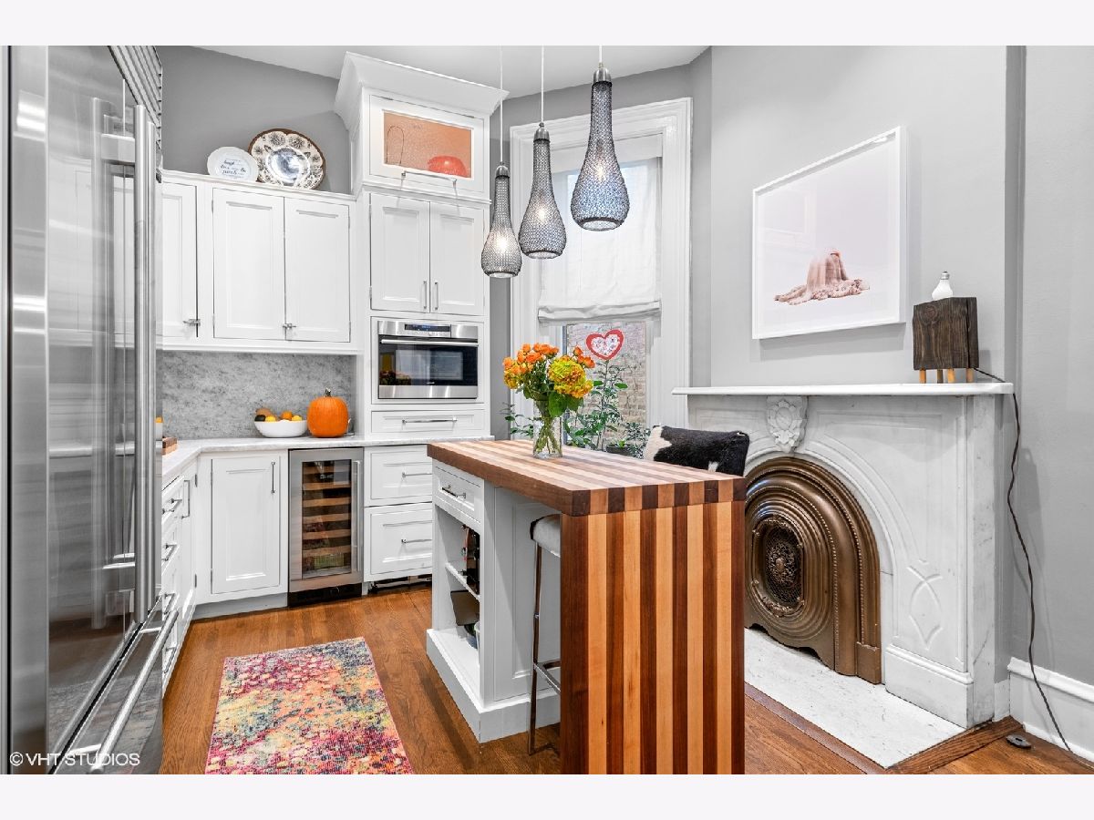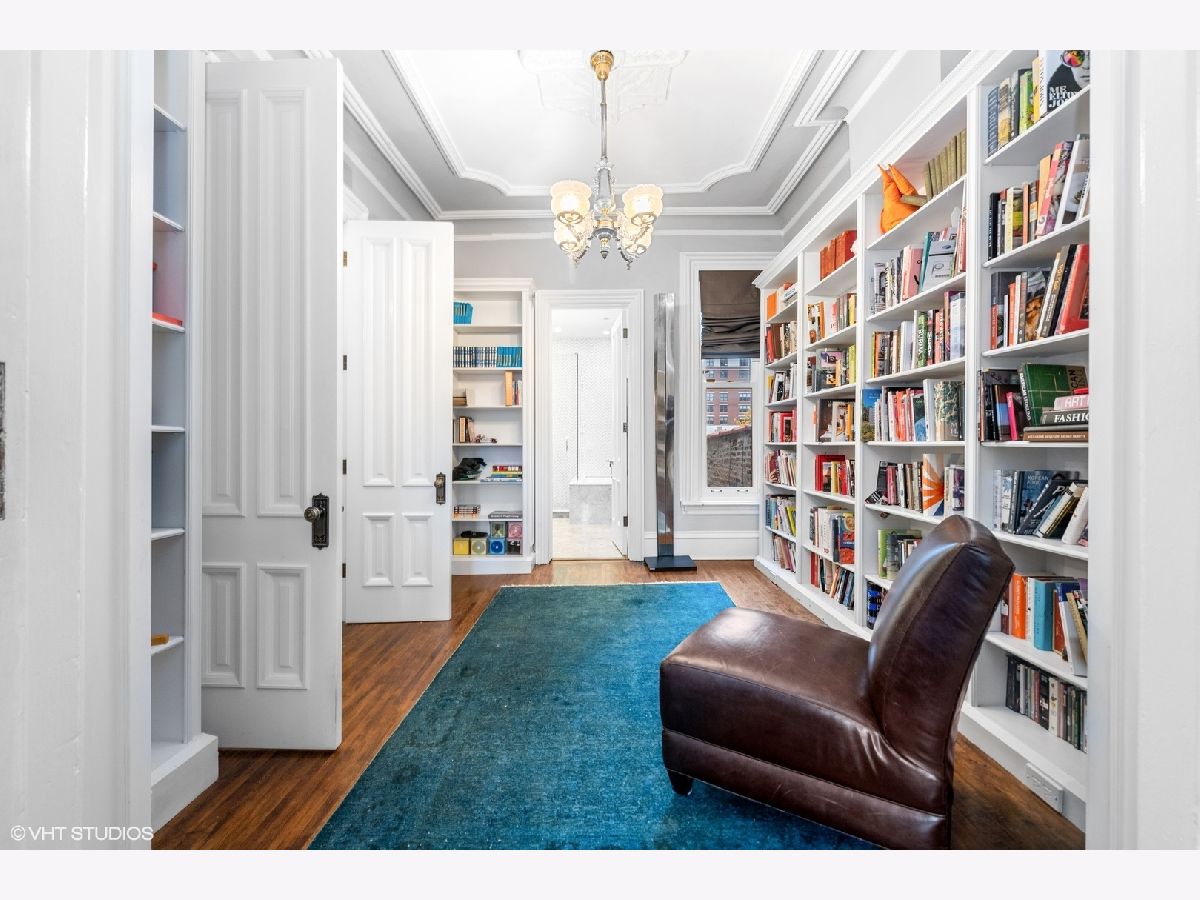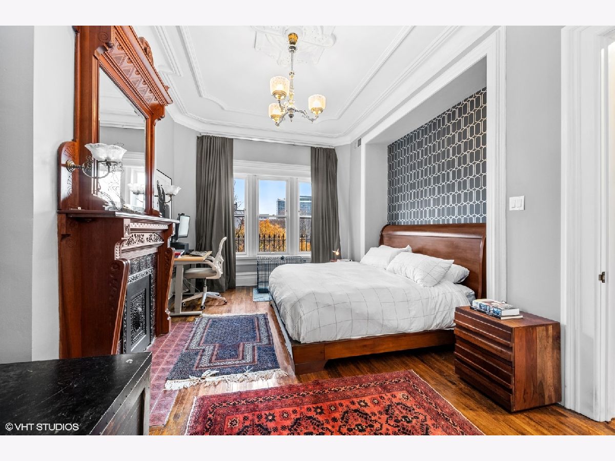 Beautifully reimagined 4 bedroom, 3 bathroom, Gold Coast rowhome residence with incredible character and one-of-a-kind design. The home has been thoughtfully updated with custom millwork and built-ins throughout, a Chicago Closets wardrobe, custom gates, sisal runner, Lutron dimmable lighting, and tailored Roman shades, all layered with Phillip Jeffries, Scalamandre, and grasscloth wallcoverings that bring a rich mix of bright color and moody sophistication. Gracious living and dining spaces flow into a well-equipped kitchen featuring Sub-Zero refrigeration, wine refrigerator, and Wolf appliances, while gas fireplaces with new gas logs add warmth and charm. The spacious primary suite includes a large walk-in closet, library, and newly created nook with custom shelving. Additional highlights include updated bathrooms, custom storage throughout, updated laundry room, reimagined office/playroom, private balconies, and courtyard. An exceptionally designed, layered, and truly one-of-a-kind Gold Coast home blending historic architecture with modern, playful sophistication. 3,050 sqft.