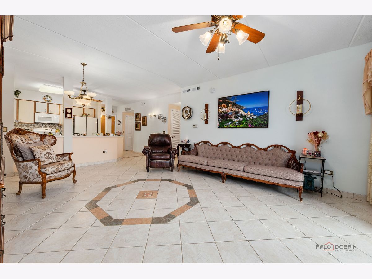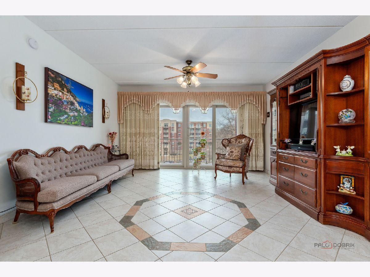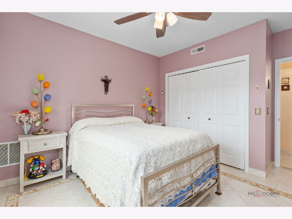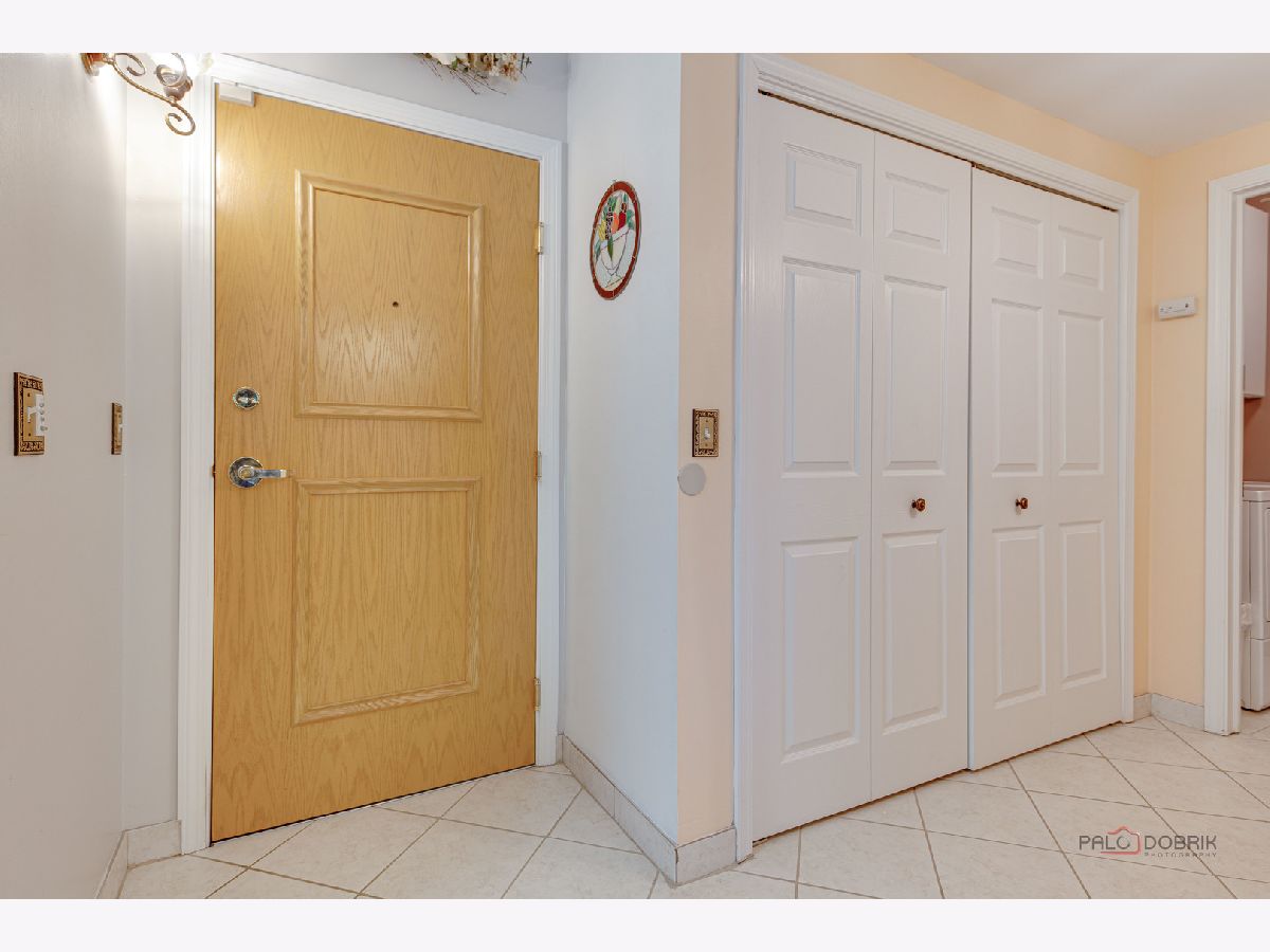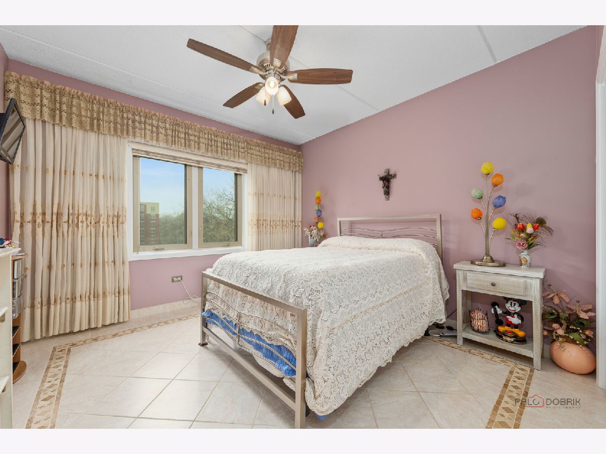 Step into this beautifully maintained, Tuscan-inspired residence in the highly sought-after Bryn Mawr complex. From the moment you enter, you'll notice the stylish tile flooring throughout, adding warmth, character, and timeless Mediterranean charm to every space. The thoughtfully designed kitchen features newer appliances, elegant Corian countertops, and an open layout that seamlessly flows into the sun-filled living area-perfect for entertaining or relaxing at home. Spacious bedrooms offer generous closet space, while the updated bath and convenient in-unit laundry provide modern comfort and ease. Enjoy morning coffee or evening sunsets from your private 5th-floor balcony. Heated garage parking with additional storage is included for added convenience. Ideally located near a park with scenic walking trails and just a short stroll to the Blue Line, this meticulously clean unit is truly move-in ready.