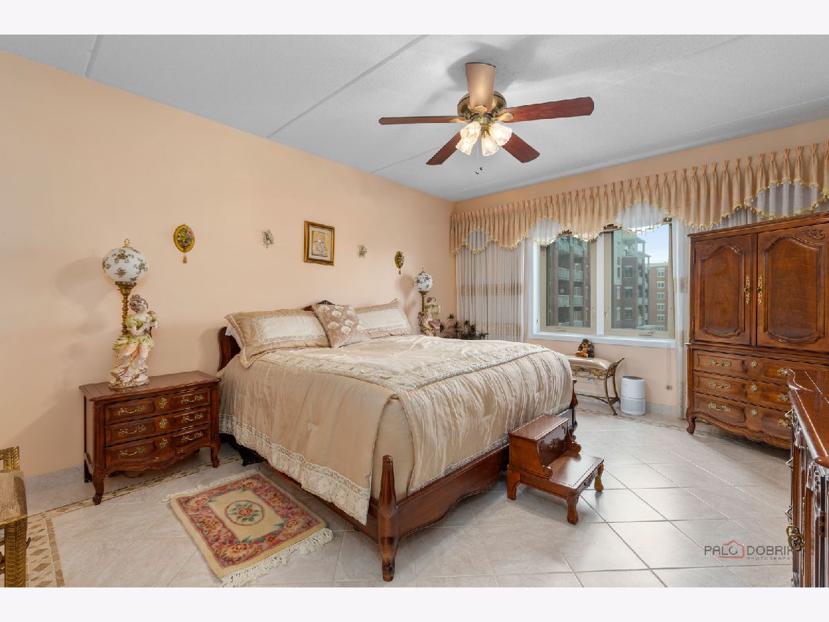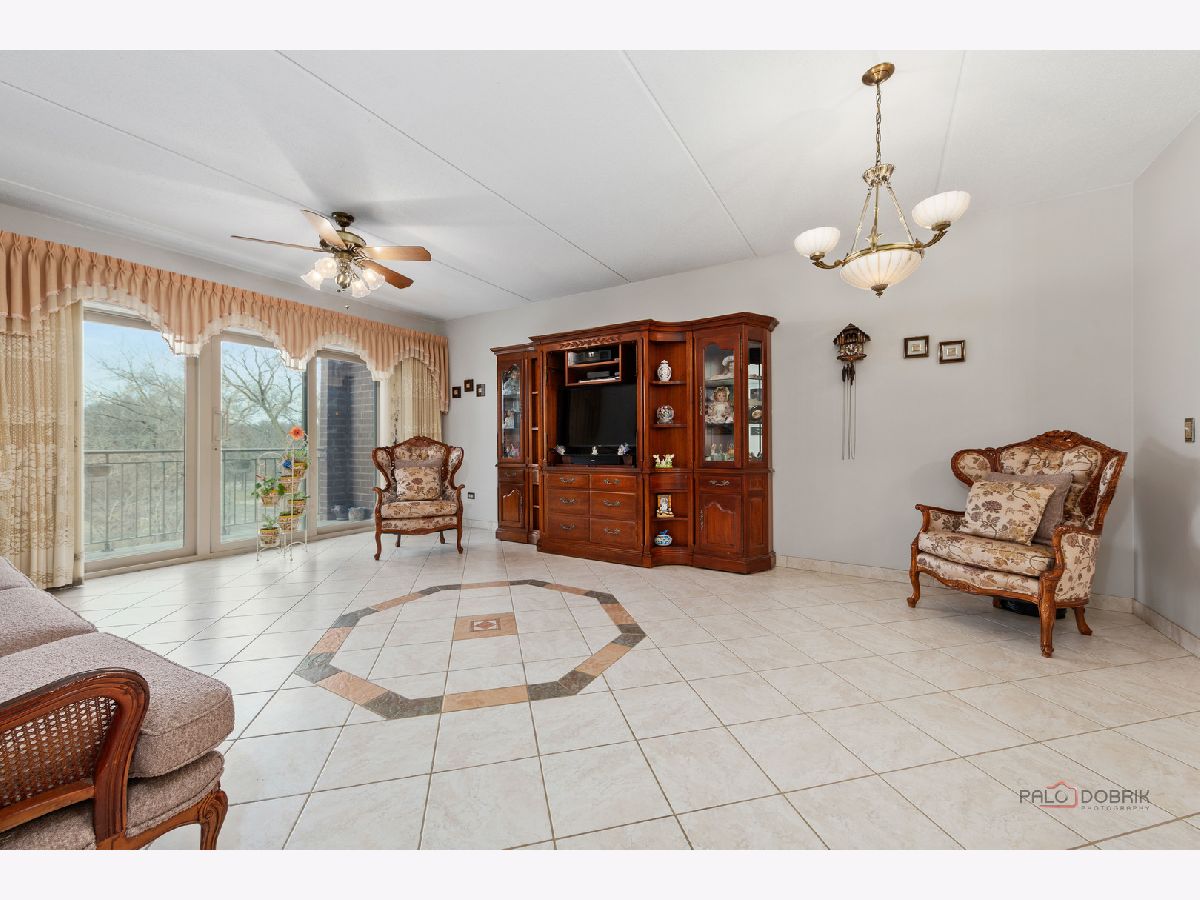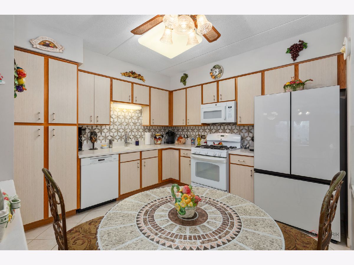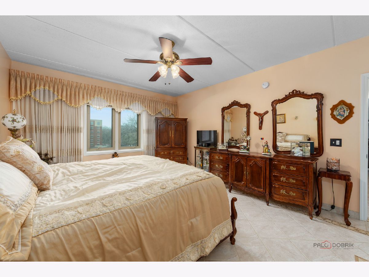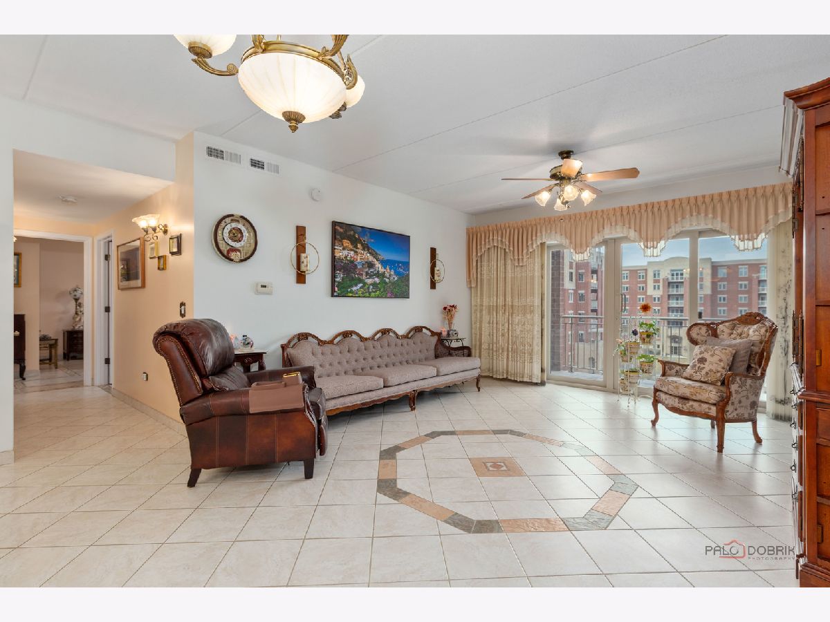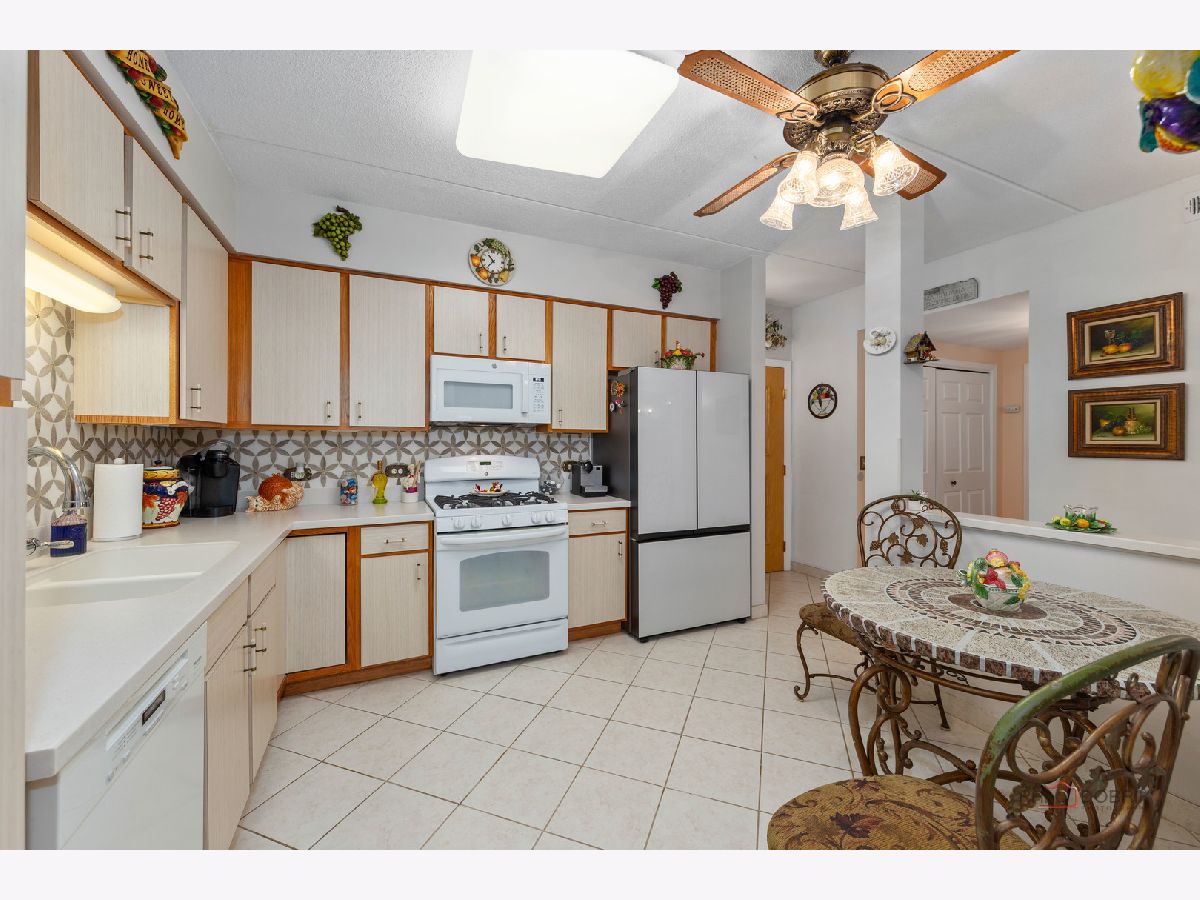Step into this beautifully maintained, Tuscan-inspired residence in the highly sought-after Bryn Mawr complex. From the moment you enter, you'll notice the stylish tile flooring throughout, adding warmth, character, and timeless Mediterranean charm to every space. The thoughtfully designed kitchen features newer appliances, elegant Corian countertops, and an open layout that seamlessly flows into the sun-filled living area-perfect for entertaining or relaxing at home. Spacious bedrooms offer generous closet space, while the updated bath and convenient in-unit laundry provide modern comfort and ease. Enjoy morning coffee or evening sunsets from your private 5th-floor balcony. Heated garage parking with additional storage is included for added convenience. Ideally located near a park with scenic walking trails and just a short stroll to the Blue Line, this meticulously clean unit is truly move-in ready.