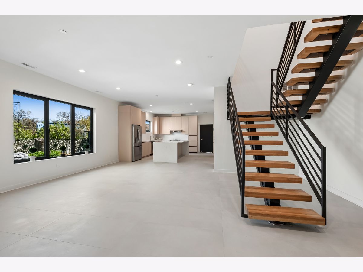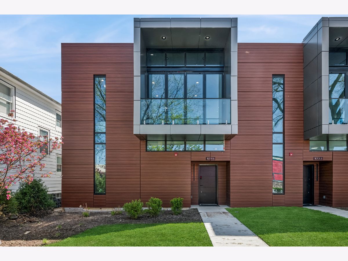 Ready to move in. Prime Location. Close to Park, Metra, 94 Hwy, Shopping and Restaurants. The Pinnacle of Modern Design. This stunning duplex, crafted with aluminum steel framing and commercial-grade materials, offers approximately 2,700 SF of luxurious living space. Featuring 4 bedrooms, 3 full bathrooms, a dedicated laundry room, and a versatile office/bedroom/flex space on the first floor, this home perfectly balances style and functionality. Step inside to a spacious foyer, sun-drenched family room, and a chef's kitchen with pantry. Enjoy seamless indoor-outdoor living with floor-to-ceiling glass, sleek glass-railed balconies, and a rooftop terrace with lounge access. Clad in premium wood-look panels and architectural metal, the exterior exudes both warmth and durability. Bold geometric lines and high-end finishes make this architectural masterpiece a true statement home for those who value form, function, and unparalleled style.