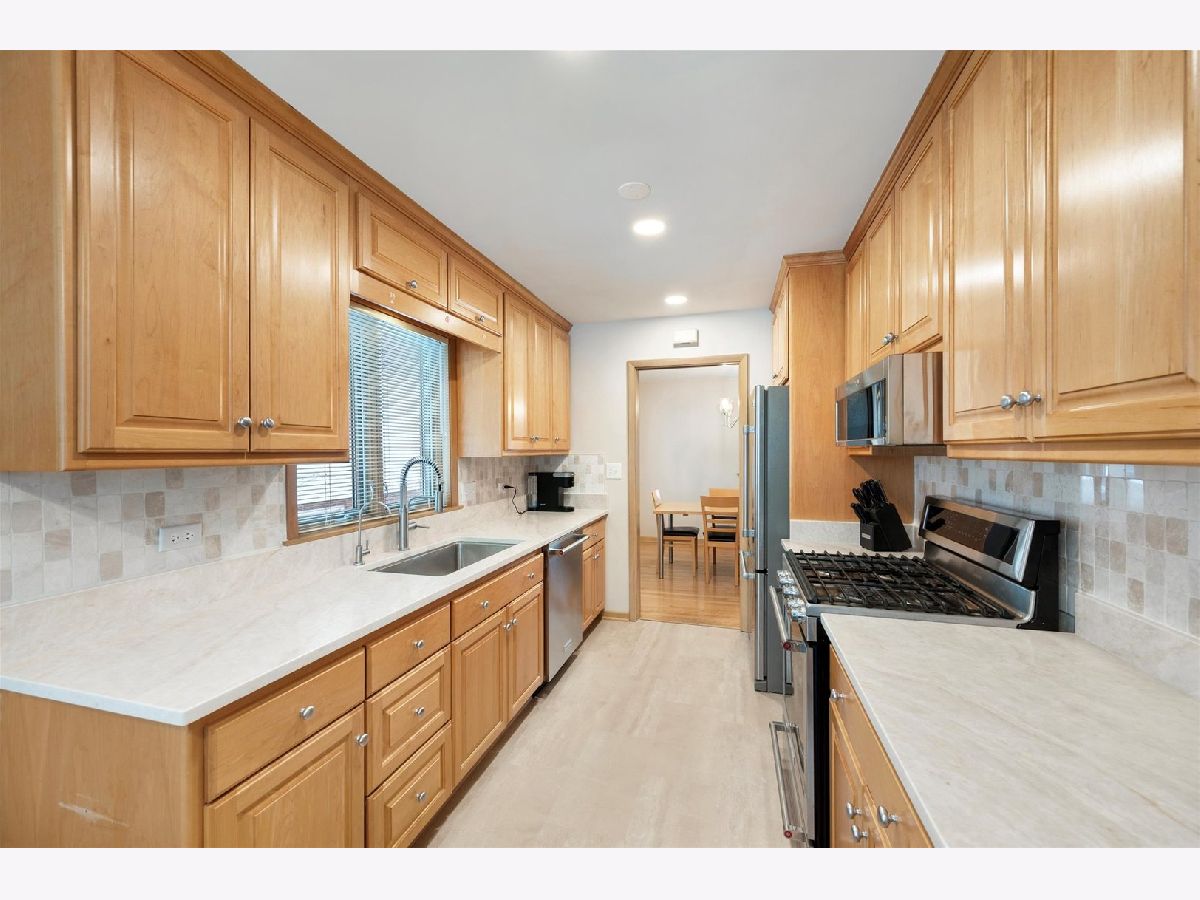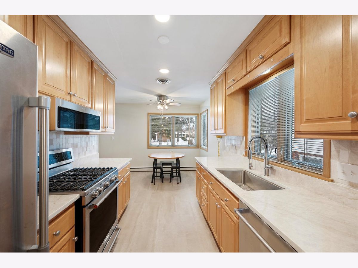 BUYER GOT COLD FEET. THEIR LOSS IS YOUR GAIN! Welcome home to this classic 3 bedroom, 2 bath, all brick McDougall ranch in south Elmhurst. This home has been meticulously maintained and updated! Features include hardwood floors. Tall windows in the living room and dining room makes it extra cheery and bright. Eat-in kitchen with 42" Maple cabinetry, newer Quartz counter tops, stainless appliances, luxury vinyl plank flooring, newer can lighting, ceiling fan plus newer back door and screen door. 3 generous sized bedrooms. All closets have closet made shelving. Totally remodeled (2020) loft-styled lower lever family room includes a 4th bedroom or office, 2nd bathroom, laundry room and storage room. 2 car detached garage and fenced backyard. Updates include: microwave, oven/range and new washer (2025), sump pump and battery back-up (2021), basement refrigerator and dryer (2021-2022), air handler and condenser (2020). Hot water heater, boiler, dishwasher, kitchen refrigerator (2014-2019). Roof, windows, kitchen cabinets and outside railings (approximately around 2014ish). Ice maker as-is. Don't miss this amazing opportunity to call this exceptional property your new home. Close proximity to downtown Elmhurst, Metra train, schools, shopping and restaurants. Easy access to expressways.