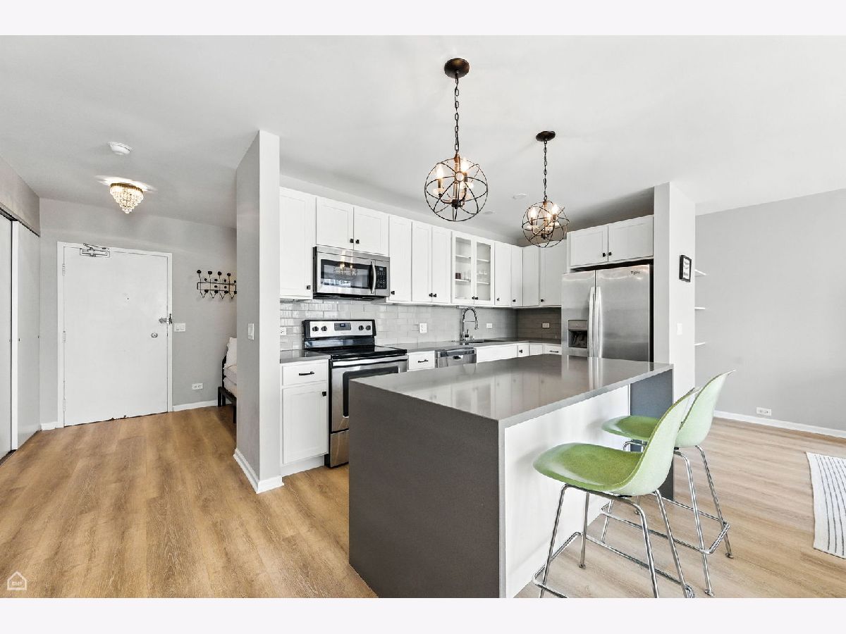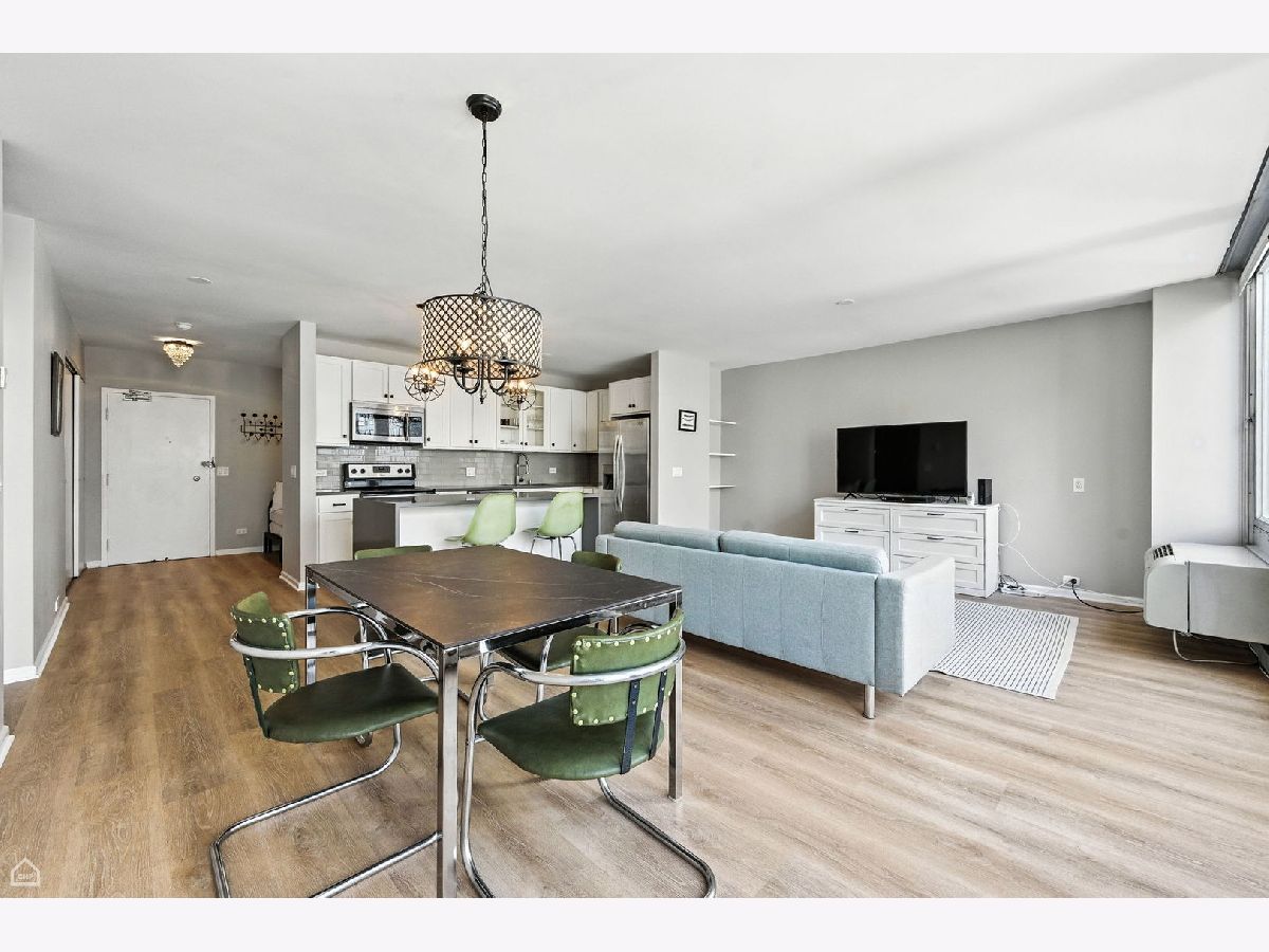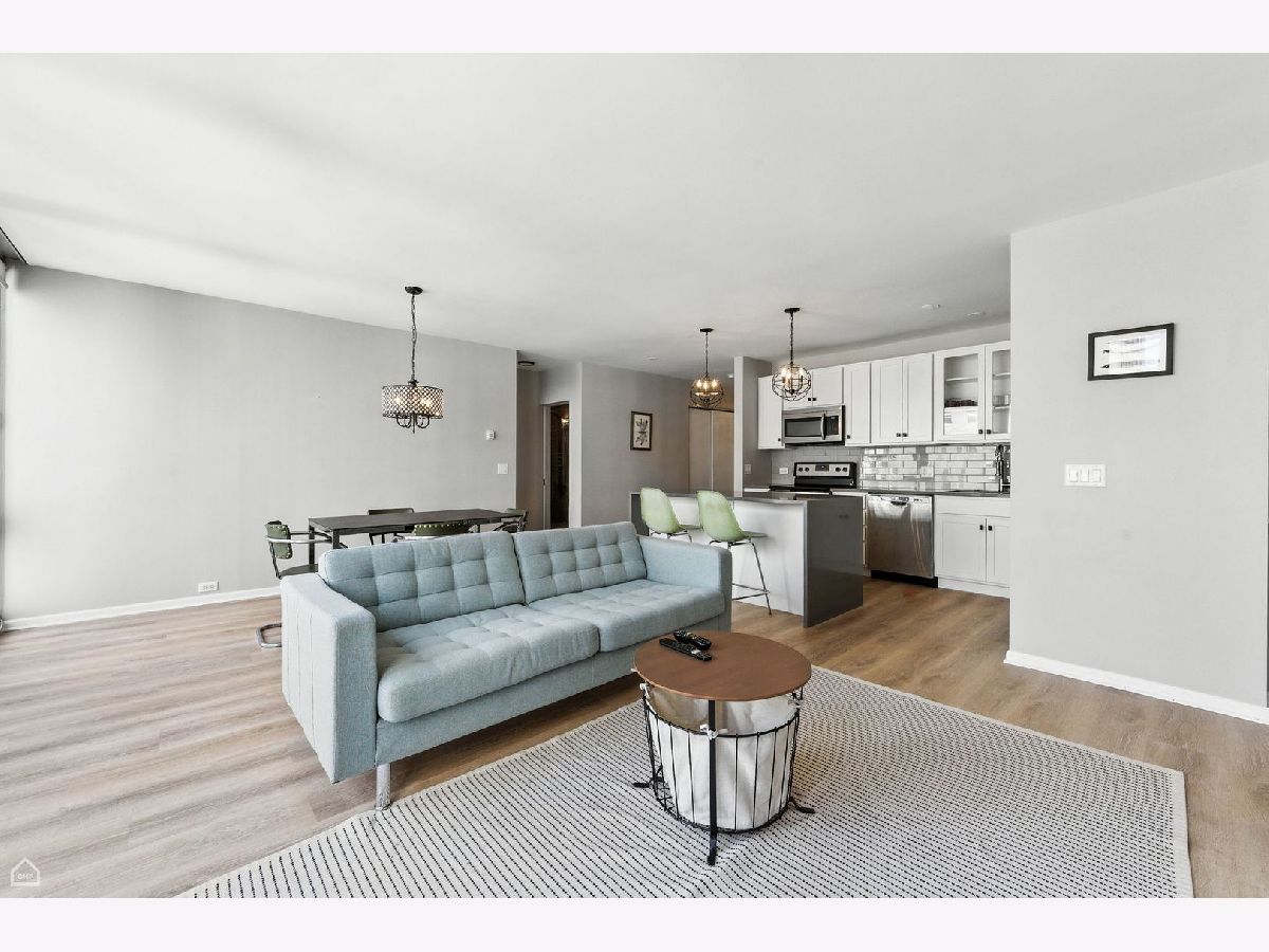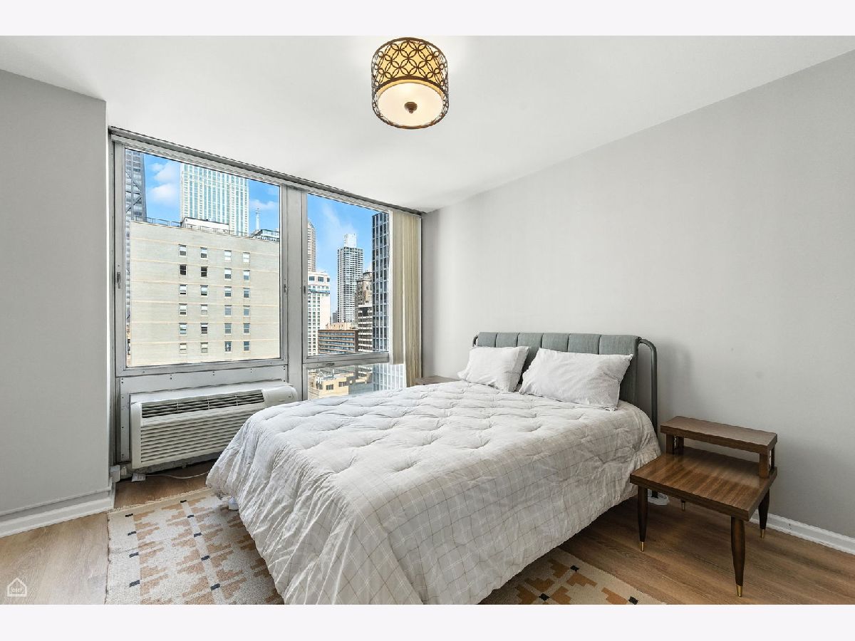 Wonderful open plan. The kitchen and island is a focal point of the apartment. Stainless steel appliances, and recently added hardwood laminate flooring throughout. This open plan flows from kitchen to dining and large living room area. High floor western city views with the John Hancock in the background are enjoyed from floor-to-ceiling windows, plus wonderful natural light throughout the day. Separate, tranquil area perfect for a day bed or office nook when you first walk in. Bathroom includes spa-like tiled shower. Ideally located Iconic Mies van der Rohe landmark on Lake Michigan in Streeterville's PRIME residential neighborhood. It's the BEST! Walking distance to so much of what the city has to offer. Just steps from the MCA, seasonal farmer's markets, coffee shop, Oak Street Beach and Ohio Street Beach, Northwestern Hospitals/Campus, Children's Hospital, world class Oak Street and Michigan Avenue shopping, the Looking Glass and Shakespeare theaters, Whole Foods, Trader Joe's, the Jewel and several other grocery stores all within a 15 minute walk. 880 N Lake Shore Drive is a full amenity building with 24-hour door and maintenance staff, exercise facilities, laundry room, bike storage, common room, and a full cage storage locker for your use. Monthly Assessment of $1,639.85 includes everything!!! Breakdown as follows: General Assessment $708.58, Utility Assessment $263.37, Real Estate Tax Assessment $504.52, Mortgage Loan Assessment $163.38. (Until June 2028) ***ANNUAL 2023 REAL ESTATE TAXES ARE $4,839.67 ($403.30 paid monthly in the monthly assessment.) An owner can rent for 2 years during their term of ownership. Either one, 2 year term, or two, 1 year terms. Monthly parking at $375. Guest parking available. This is a no dog building.