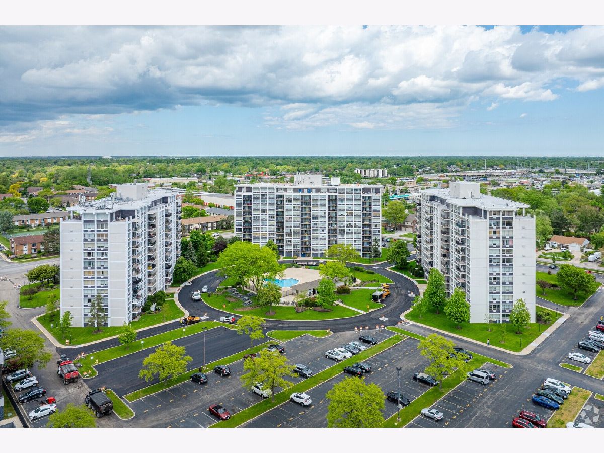 Offered AS-IS for the first time in 35 years, this rarely available 10th-floor condo in Highland Towers is a vintage time capsule with Chicago skyline views and renovation potential! Set in the most desirable of the three towers, this south-facing unit is tucked away from Golf Road traffic, offering peace, privacy, and the strongest in property values! Inside, original 1972 finishes are ready for their next chapter. Adequate and safe, the unit is readily habitable. The flexible layout lets you keep the enclosed kitchen or open it up as many neighbors have, creating a light-filled modern flow, or a large pass-through. Freshly painted and professionally deep-cleaned, this prized location still showcases some groovy details: a mirrored dining room wall, a cast-iron square 'garden tub', floor-to-ceiling louvered metal closet doors, and sturdy cabinetry that has stood the test of time. The older appliances are quite functional, and the real opportunity lies in bringing your own design vision. Two A/C units have reached the end of their service life, and the floors - aside from the original kitchen linoleum - are all, bare concrete, letting you choose exactly what you want underfoot - carpet, hardwood, laminate, LVP, or tile with no tear-out costs. Bring your imagination, your Pinterest boards, and a sense of adventure! Whether you preserve the layout from its 'true blank slate' state or reinvent it, the possibilities are endless - and the price reflects both value and opportunity! Step back in time... and leap into your next big project! Extra: the Village of Niles operates a free local bus to shopping centers, public facilities, and neighborhoods - no car required.
