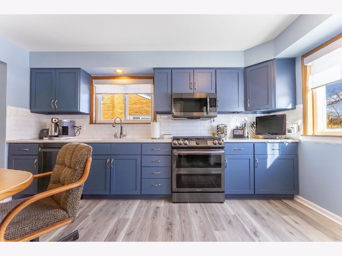 Welcome to this beautifully updated split-level home in the heart of Morton Grove, offering modern style, thoughtful upgrades, and exceptional functionality. The bright, open main level features a spacious living room with a large bay window, updated flooring, and fresh contemporary finishes. The redesigned eat-in kitchen boasts stylish cabinetry, newer appliances, quartz countertops, a subway tile backsplash, and a newly added oversized pantry for ample storage. Upstairs, you'll find three comfortable bedrooms and a fully updated bathroom. The finished lower level expands your living space with a cozy family room, office nook, second updated full bathroom, and convenient laundry area. Step outside to a generous backyard with a covered patio and awning-perfect for relaxing, gardening, or entertaining. A 2.5-car garage provides plenty of space for parking and additional storage. You can't beat the location. Close to parks, schools and shopping!