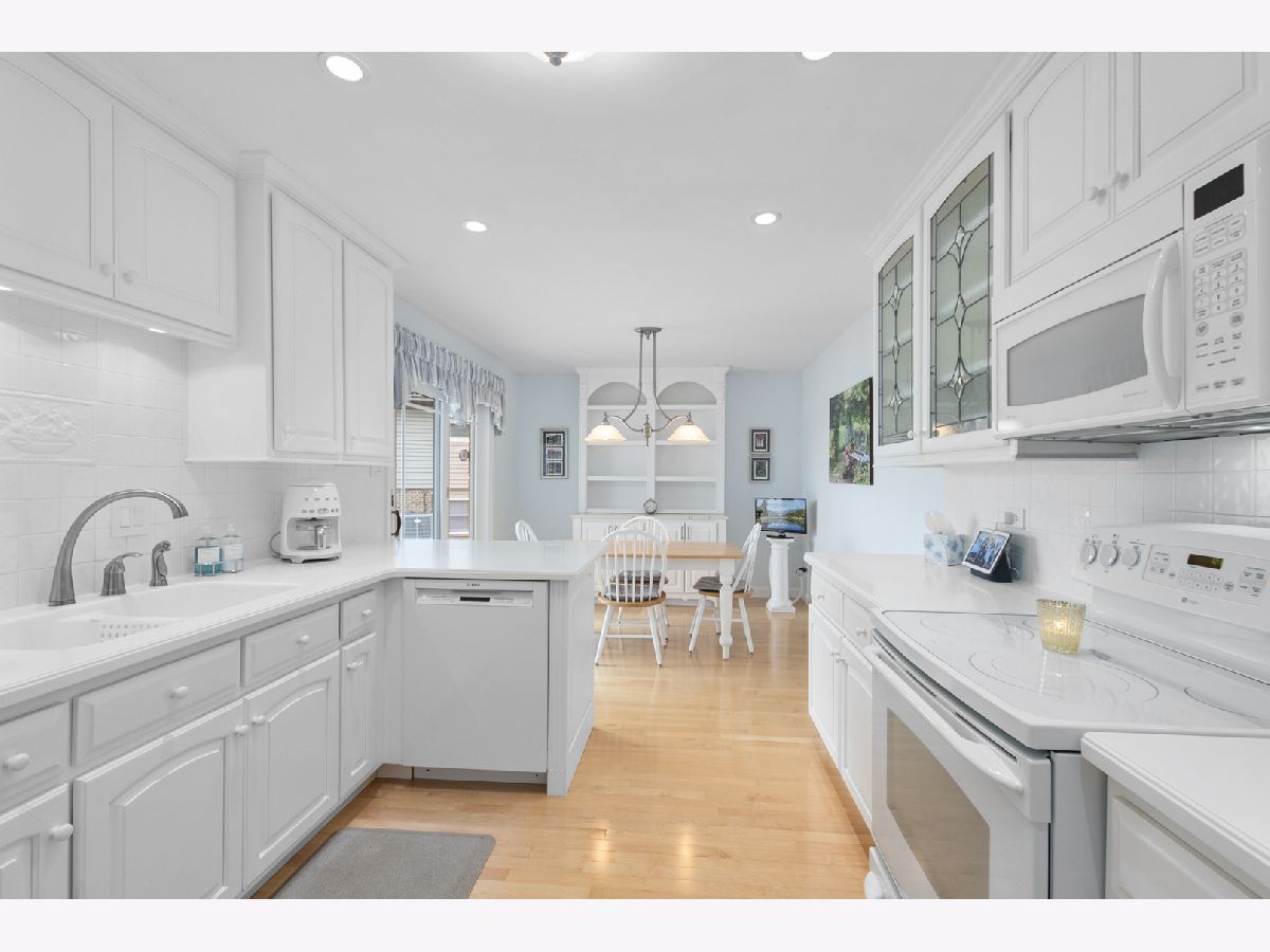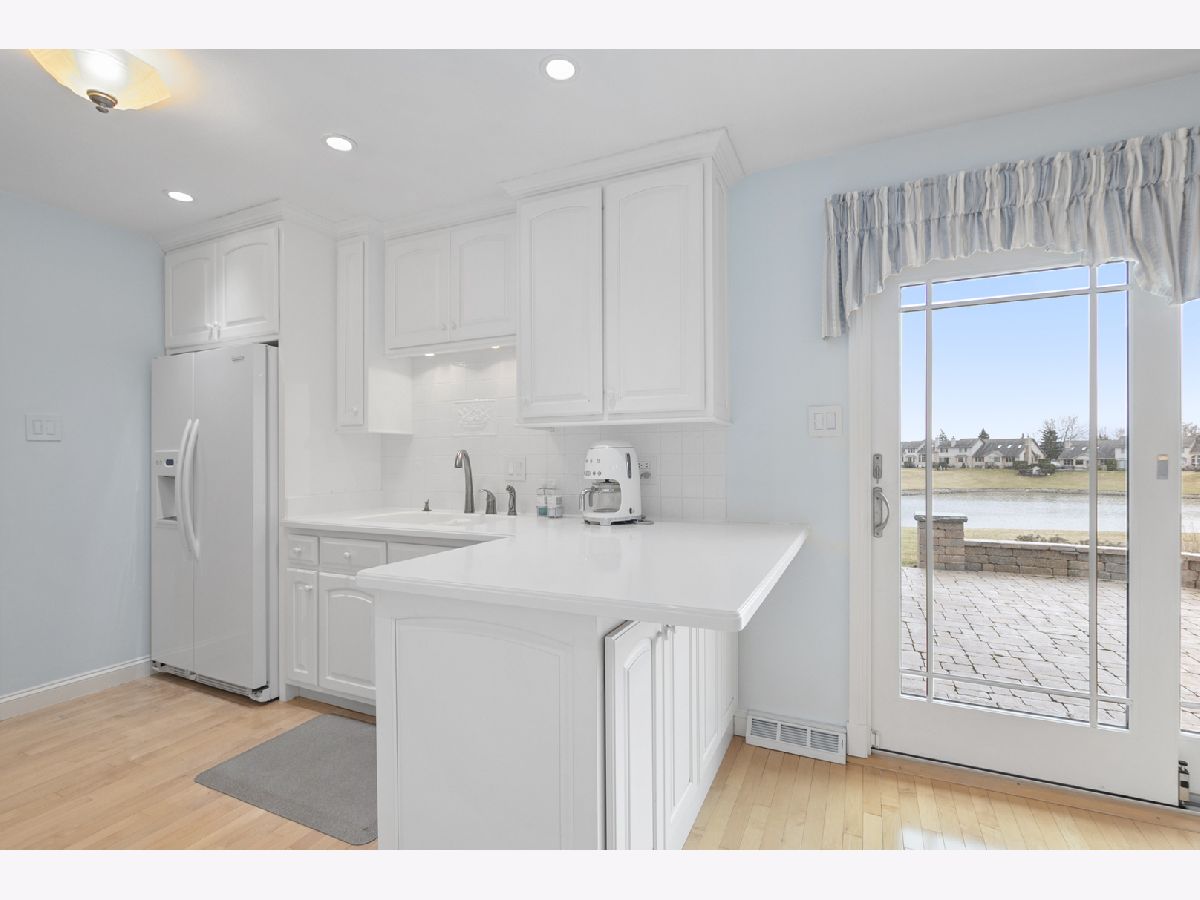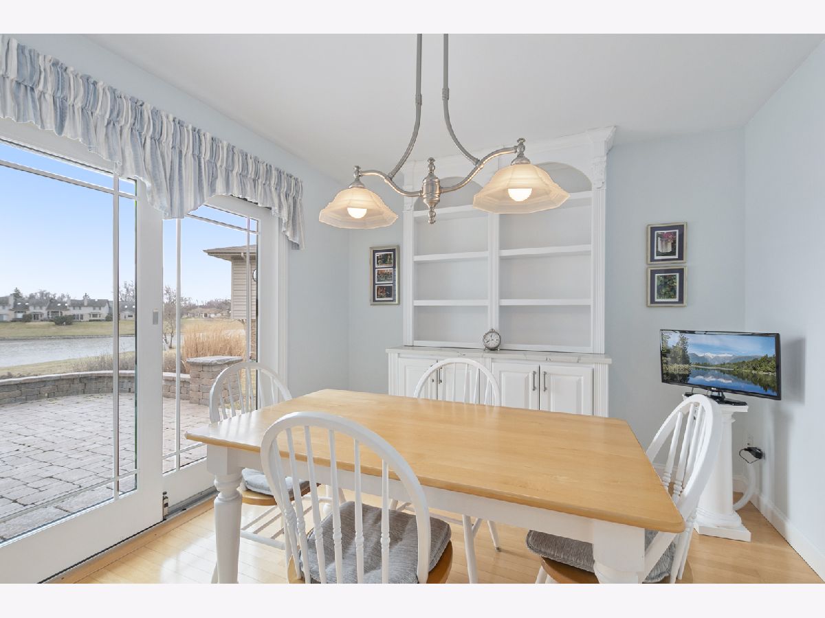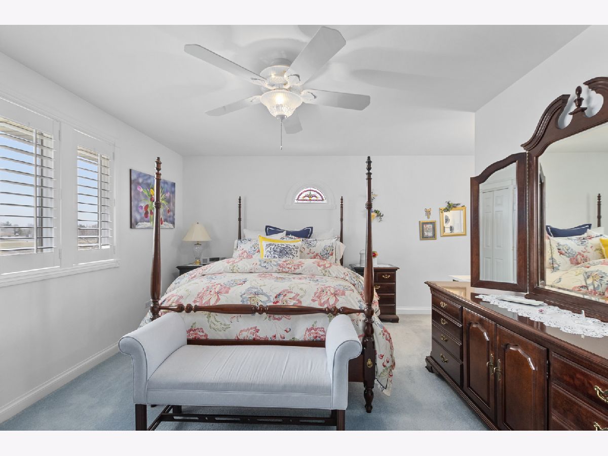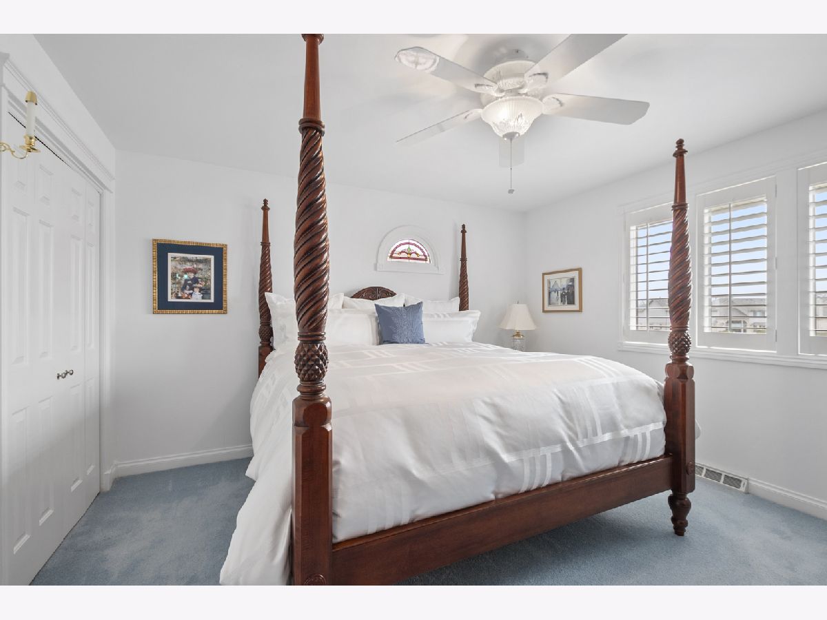Remarkably stunning and rarely available home with picturesque pond views, offering quality upgrades, stylish finishes, and a thoughtfully designed layout. Notable updates include a new roof installed in 2024 and new Andersen windows and sliding door replaced over time. Step inside and immediately notice the freshly painted interior, new custom white trim, and solid six-panel doors throughout, creating a bright feel from the moment you enter. The inviting living room features newer carpet, elegant drapes, and a charming bay window that fills the space with natural light. The formal dining room is perfect for entertaining and highlighted by a classic chandelier. The remodeled kitchen (2011) is designed for both style and functionality, featuring hardwood flooring, soft-close cabinetry with pull-out drawers, Corian countertops, a breakfast bar, built-in pantry, recessed lighting, and a newer dishwasher installed in 2021. Upstairs, the spacious primary bedroom offers Andersen stained glass window, plantation shutters, and double closets. The private primary bathroom was beautifully updated in 2018 with a Corian-top vanity, new shower glass door, new flooring, updated toilet, and Andersen stained glass window. Two additional nicely sized bedrooms feature newer carpeting, with one bedroom also offering plantation shutters. The full hall bathroom was also updated in 2018 with a new vanity, toilet, and ceramic tile flooring. The large lower-level family room provides a warm and comfortable gathering space with newer carpet, plantation shutters, and a remodeled gas fireplace. The powder room was updated in 2018 with a new vanity and toilet. The spacious laundry room has been thoughtfully upgraded with updated cabinetry, Corian countertops, and plantation shutters. Major mechanical updates include a new 200-amp circuit breaker panel installed in 2025, LG washer and dryer installed in 2021, and a new humidifier installed in 2025. The attached two-car garage features an epoxy floor, ceiling fan, and pull-down attic ladder for additional storage. Step outside to enjoy the beautifully maintained yard with new landscaping and a brick paver patio installed in 2016 with solar lighting, the perfect place to relax while taking in peaceful pond views. Ideally located within walking distance to McAuliffe Elementary, Prairie View Middle School, Andrew High School, and nearby parks, this home offers the perfect combination of location, updates, and beautiful surroundings.