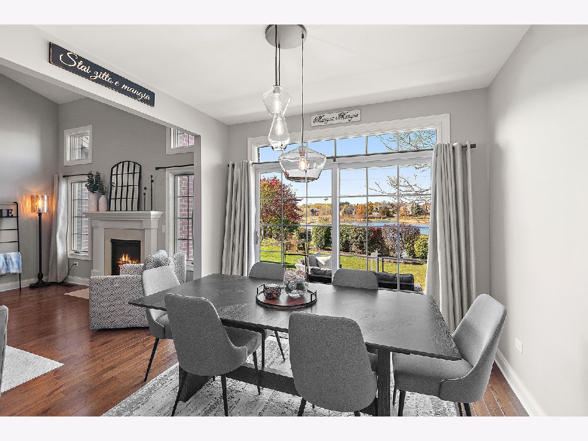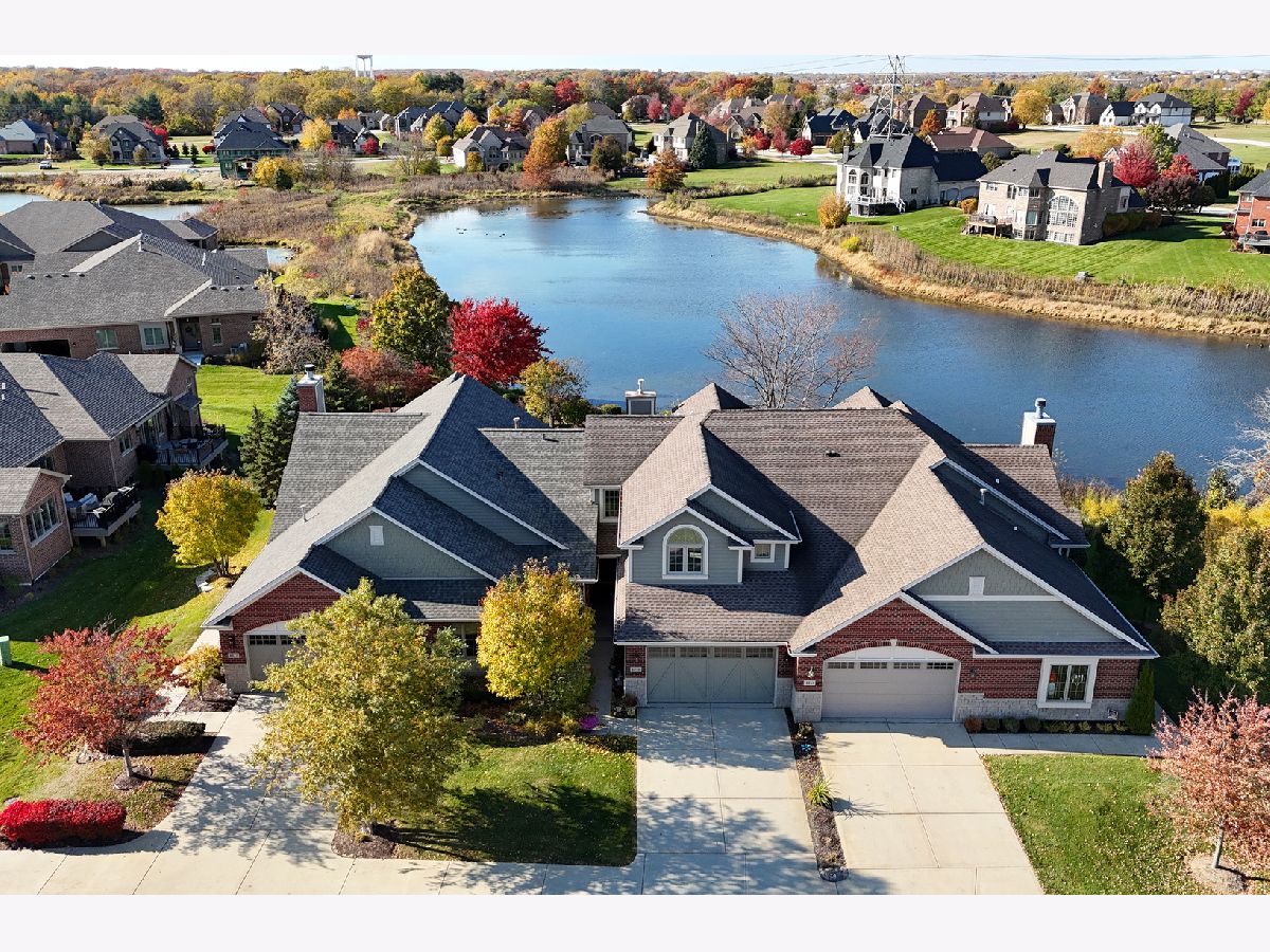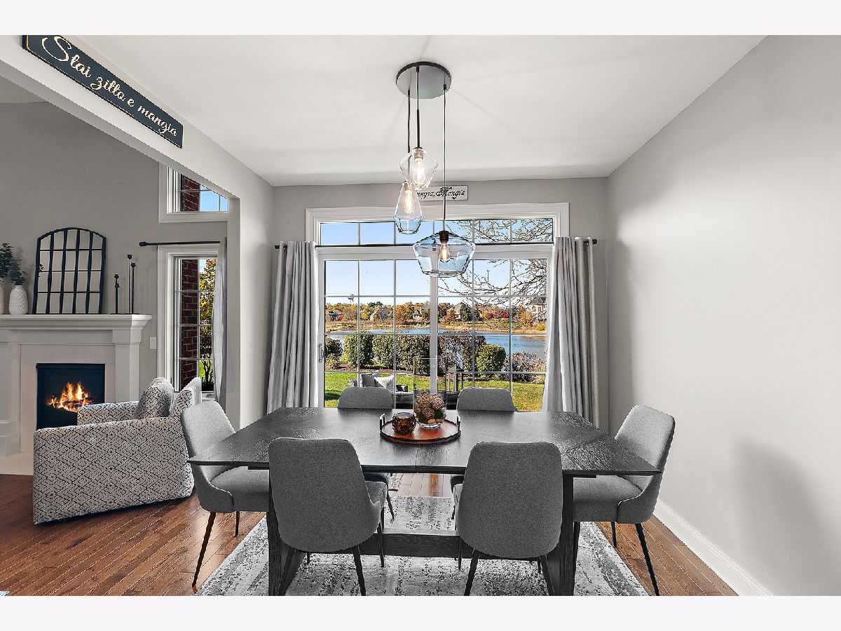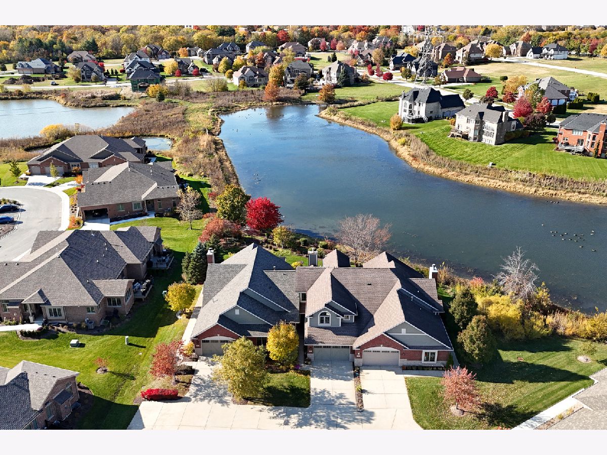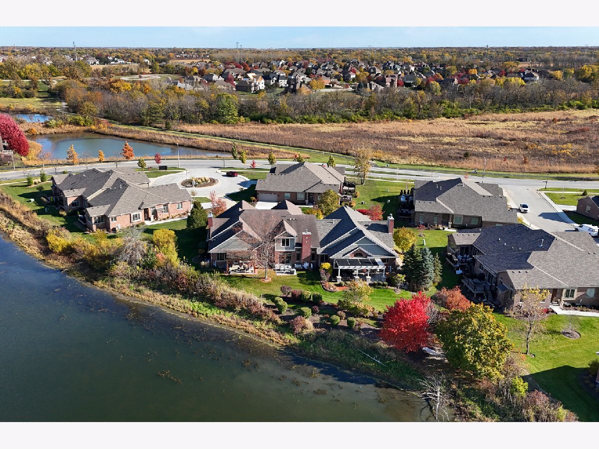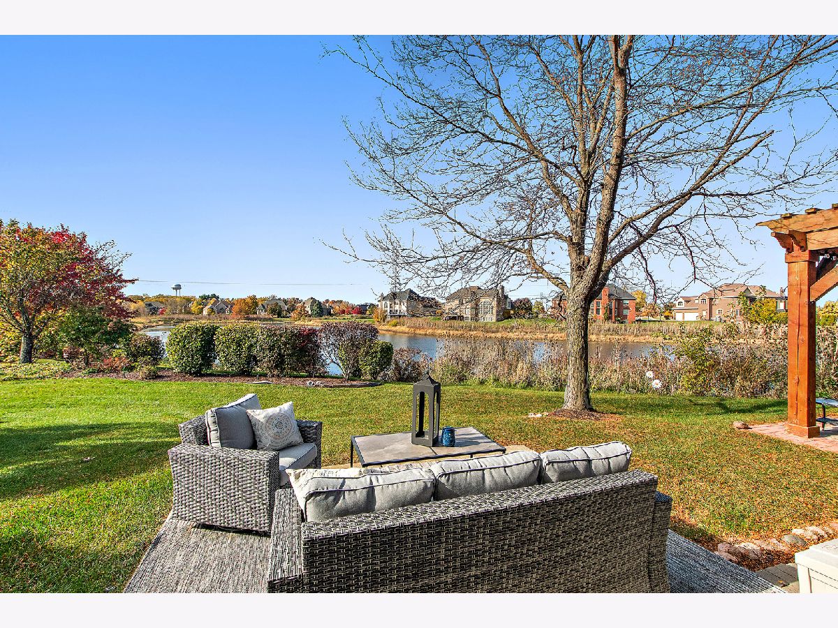 Impeccably maintained and truly turn-key, this beautifully updated 2-bedroom plus loft, 3.5-bath townhome in Lighthouse Pointe offers a like-new living experience on a premium waterfront lot. Thoughtfully improved with high-end finishes throughout, the home combines modern design, functional upgrades, and tranquil water views, allowing you to move in with confidence and ease. The two-story living room is filled with natural light and showcases hardwood floors, a granite-surround fireplace, and expansive windows framing peaceful water views. The custom kitchen rivals new construction, featuring quartz countertops, a striking herringbone stone backsplash, stainless steel appliances, a composite sink, pantry closet, and soft-close cabinetry, designed for both everyday living and entertaining. The adjoining dining area opens to the patio through oversized sliding glass doors with a transom window, creating a seamless indoor-outdoor connection. A formal dining room, currently styled as a sitting area, adds versatility and refinement with hardwood floors and a tray ceiling. A main-level laundry room with sink and cabinetry enhances convenience. Upstairs, the primary suite delivers a private retreat, complete with vaulted ceilings, dual walk-in closets with custom organizers, and a spa-inspired bath featuring a whirlpool tub, separate shower, and granite double vanity. The loft provides flexible space ideal for a home office, reading nook, or lounge, while the second bedroom enjoys morning light and calming water views. The finished basement significantly expands the living space, offering a recreation or fitness area, a full bath with heated floors and a double walk-in shower, plus a utility room and additional unfinished space for future expansion or storage. This home has been meticulously cared for and offers maintenance-free living, with landscaping and snow removal included, ideal for buyers seeking a low-maintenance, high-quality lifestyle. Outdoors, the concrete patio overlooks the water and provides a private setting for morning coffee, entertaining, or relaxing at the end of the day. Ideally located near Starbucks, scenic walking paths, and direct access to the Old Plank Trail, with convenient proximity to major expressways, this residence delivers the condition and ease of new construction paired with the rarity of a premium waterfront setting.