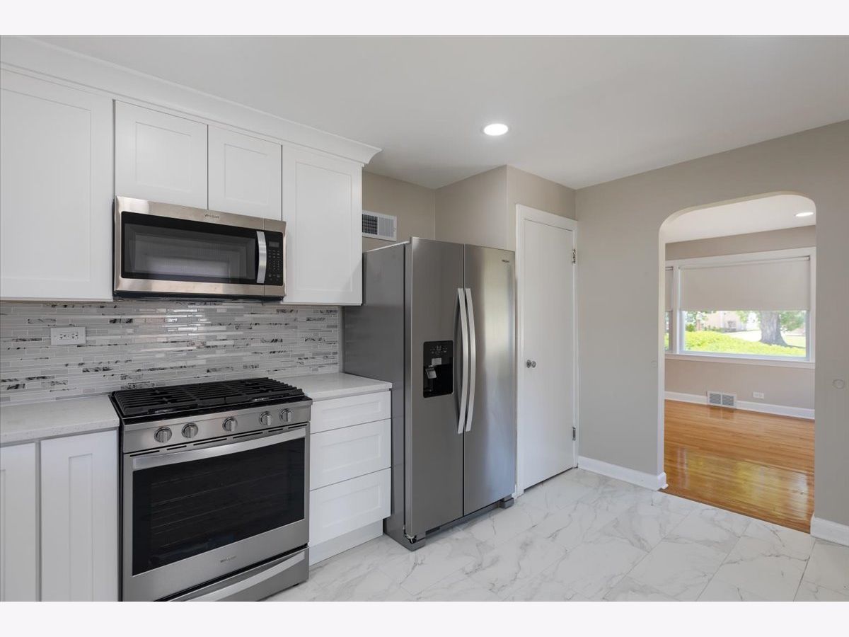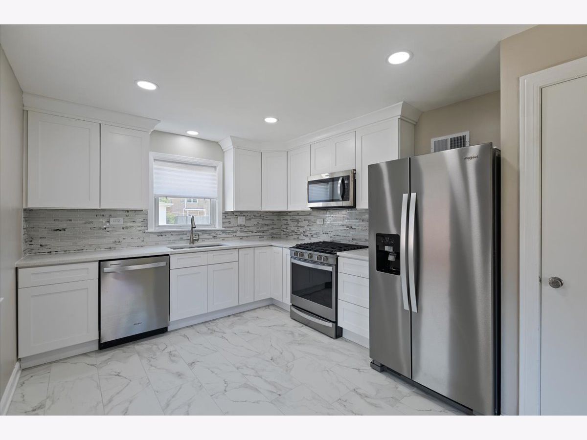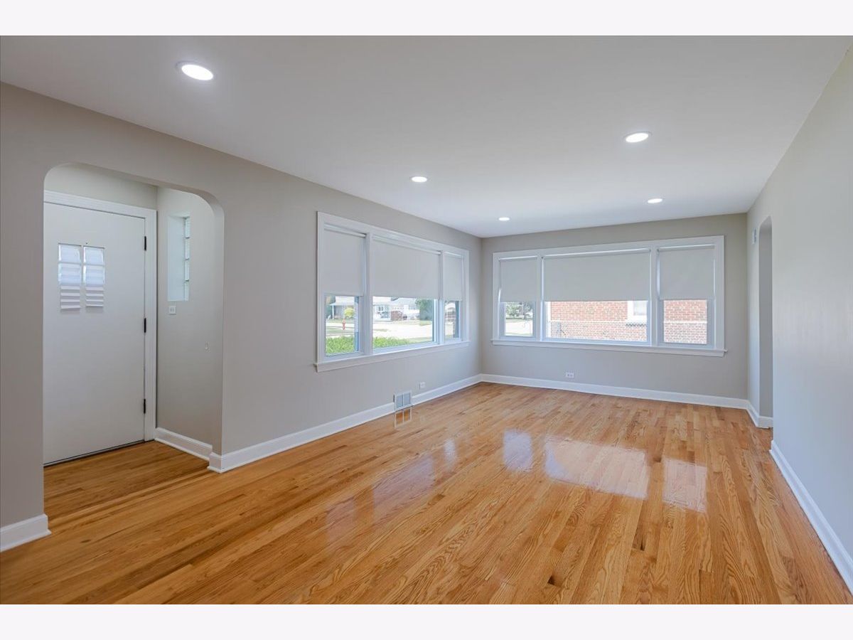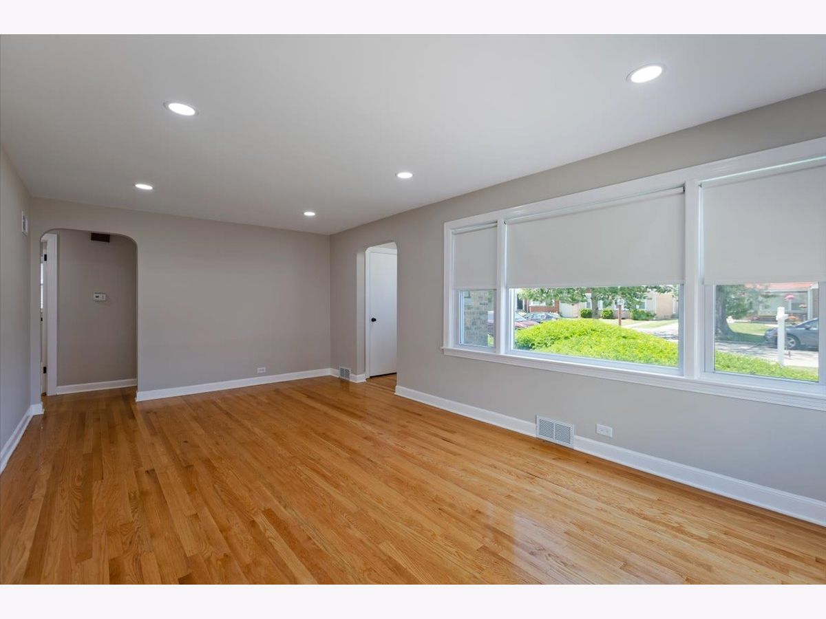 Beautifully updated 3-bedroom, 1.5-bath ranch situated on an oversized double lot in the highly regarded Park View School District 70. This home features a spacious open-concept living and dining area, perfect for entertaining. The newly renovated kitchen boasts elegant quartz countertops and brand-new stainless steel appliances. Gleaming refinished hardwood floors run throughout the main level, complemented by fresh, neutral paint in every room. The completely remodeled full bathroom includes a large built-in storage cabinet for added convenience. Downstairs, you'll find a massive fully finished basement with an updated half bath and direct access to the expansive backyard. Enjoy the massive outdoor space with a detached two-car garage and additional parking on the side drive. Ideally located near the expressway, library, parks, and scenic forest preserves - this move-in-ready home offers comfort, style, and convenience.