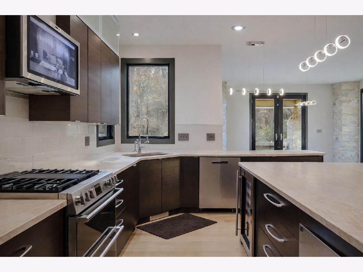 A rare opportunity to own one of Liberty Township's most sophisticated MODERN ESTATES-an architectural statement of DESIGN, PRIVACY, and CRAFTSMANSHIP. Completed in 2022 on 5.35 secluded acres, this 7,470+ sq ft contemporary masterpiece delivers refinement typically found in premier luxury markets. A grand CURVED STAIRCASE framed by a WALL OF GLASS welcomes you into a residence curated with intention at every turn. The SHOWPIECE SMART KITCHEN features CAFE APPLIANCES, QUARTZ surfaces, TWO WARMING DRAWERS, a WINE COOLER, DUAL WALK-IN PANTRIES, and FLOOR-TO-CEILING CUSTOM CABINETRY-combining beauty with exceptional functionality. Expansive living and dining areas flow effortlessly, complemented by a private main-level OFFICE WITH FIREPLACE and a convenient MAIN-LEVEL LAUNDRY. The upper-level PRIMARY SUITE is a true SANCTUARY, offering a PRIVATE CONNECTED SUNROOM ideal for morning coffee, reading, or quiet retreat. Enjoy a SPA-INSPIRED BATHROOM and a CUSTOM BOUTIQUE-STYLE WALK-IN CLOSET, while two additional upper-level bedrooms each feature PRIVATE EN-SUITE BATHROOMS. A spacious BONUS ROOM adds versatility for play, work, or lounge space. The DAYLIGHT BASEMENT elevates the home into a resort-like destination with a PROFESSIONAL THEATER (STADIUM SEATING), an ELEGANT WET BAR, a recreation lounge, guest quarters, and a full bath. Additional highlights include EUROPEAN DOORS/TRIM, SOLID WHITE OAK FLOORING, a TANKLESS WATER HEATER, a WHOLE-HOUSE GENERATOR, and a 4-CAR GARAGE configuration (ATTACHED + DETACHED). The expansive grounds offer room for a FUTURE POOL or outdoor oasis. A property of this caliber-combining PRIVACY, MODERN CONSTRUCTION, ACREAGE, and proximity to major highways and Duneland schools-rarely becomes available. An EXTRAORDINARY ESTATE offering unmatched DESIGN, SPACE, and PRESENCE.