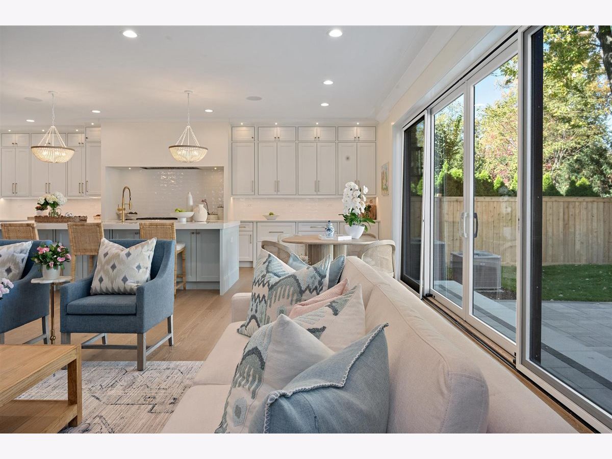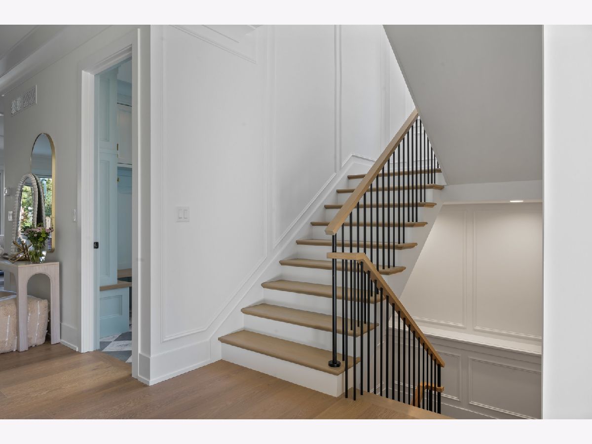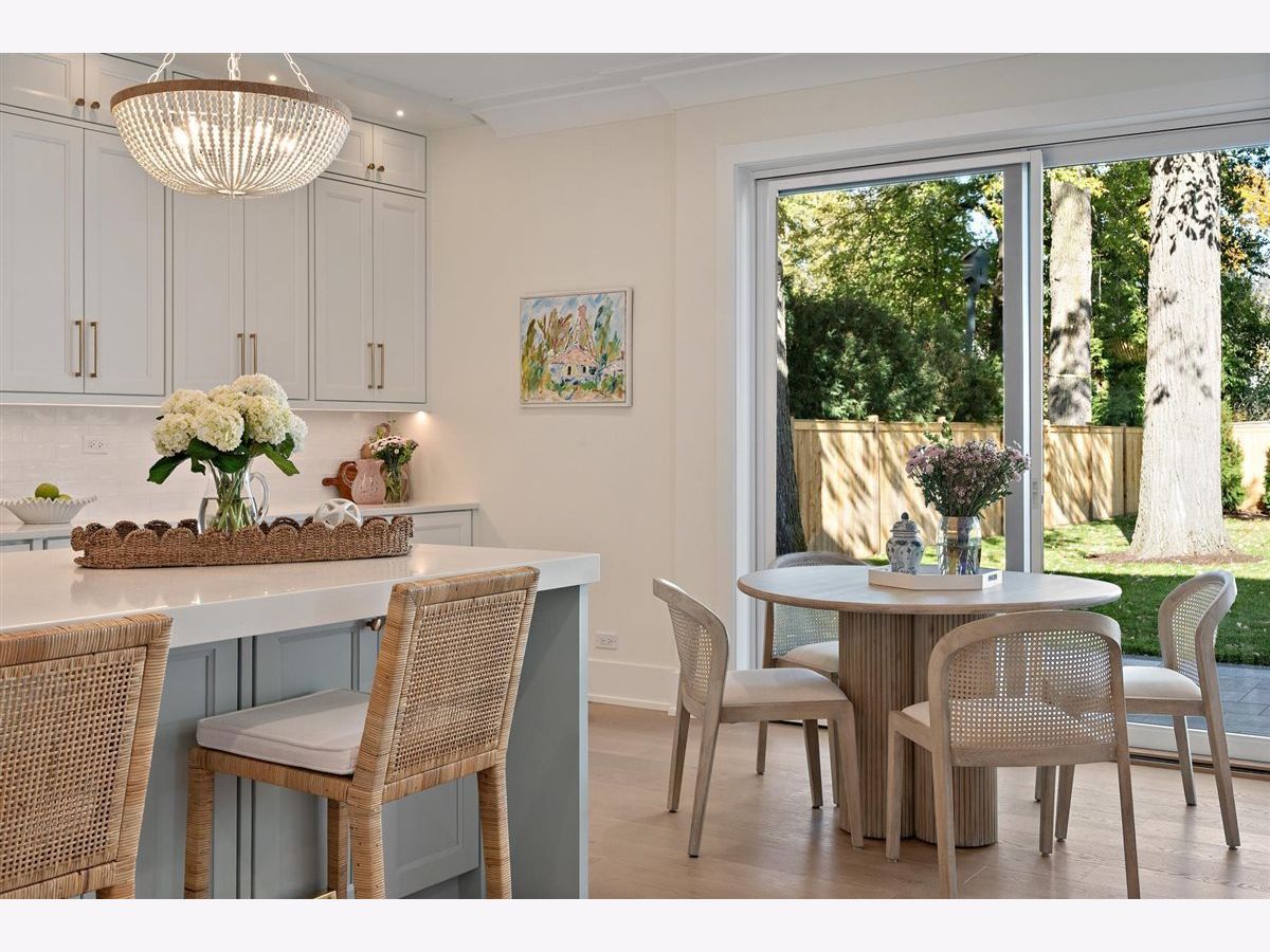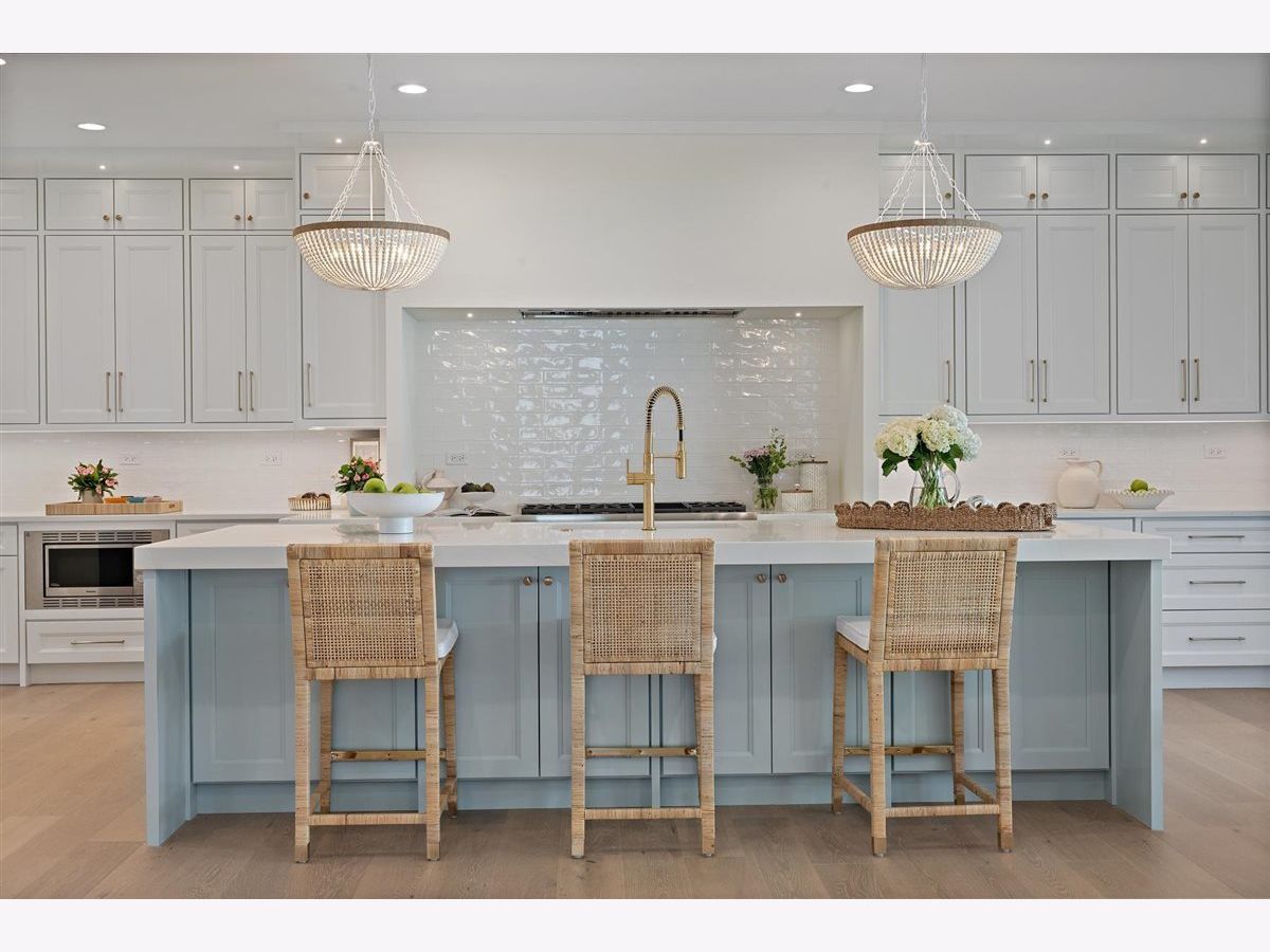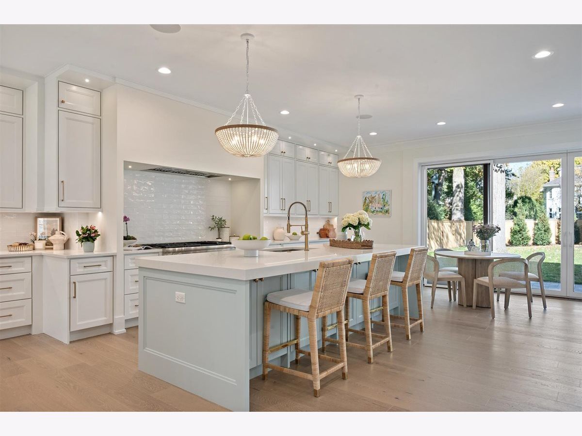 Just completed October 28th, this breezy, bright, and beautifully coastal new construction by one of the North Shore's premier builders captures the essence of modern beachy living. From the moment you arrive the sea salt blue shutters set the tone for what's inside: a sun-kissed sanctuary where craftsmanship meets coastal charm. Soaring ceilings, hand-beveled wide-plank white oak floors, Marvin windows, Ann Sacks tile, and layers of quartz and fine white marbles, all woven together with exquisite millwork and a refined, airy palette. Foyer opens to a coastal-inspired office wrapped in soft pale blue cabinetry and custom glass French doors. Formal dining room connects seamlessly to a fully outfitted butler's pantry, leading into the show-stopping Chef's kitchen-straight out of a Serena & Lily magazine. Thick white & light-veined quartz countertops, Visual Comfort pendants, custom cabinetry with polished brass accents, Thermador appliances and a soft blue island anchoring the room with seating for 5. Open-concept kitchen to family room centered around a black surround gas fireplace flanked by custom built-ins, bathe in sunlight through expansive floor-to-ceiling glass doors that open to the back patio and lush backyard. Mudroom with built in bench, gray and white checkered floors and sky-blue cabinetry and a designer level powder room complete this level. Second level with 4 ensuite bedrooms, each with its own beautifully tailored bath and fully built-out closets. Luxury primary suite a five-star retreat, featuring vaulted ceilings, large walk-in closet and a luxe white spa bath with dual vanities, walk-in shower, and soaking tub. Second level laundry room with double washer and dryer. Sun-drenched third floor offers endless versatility with bedroom, full bath, playroom, and office space. Fully loaded lower-level w/ a glass-enclosed gym with rubber flooring & mirrored walls, sleek wine cellar with custom racking and glass door, bedroom, full bath, and a large recreation room with custom media center and wet bar. This beachy new construction home delivers the ultimate living experience-a one-of-a-kind opportunity set in a prime Winnetka steps to it all!
