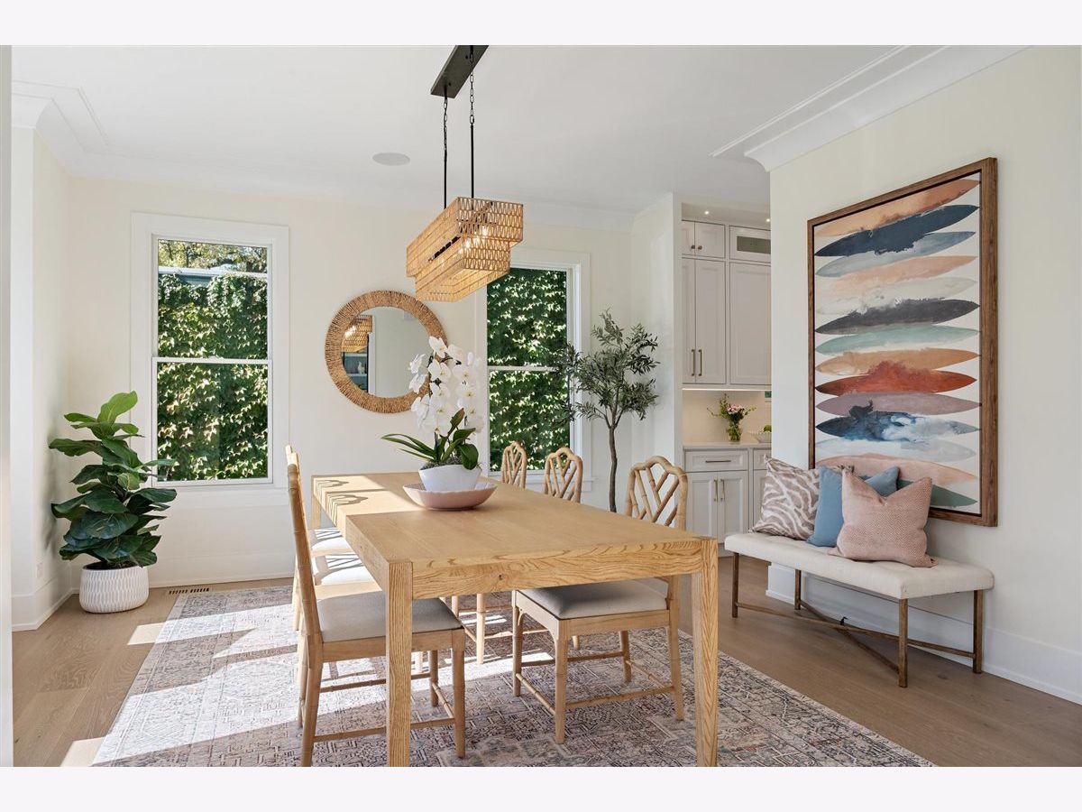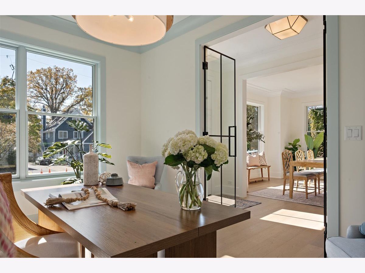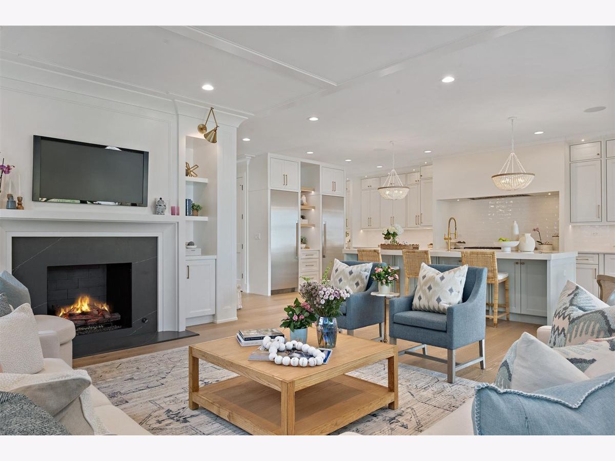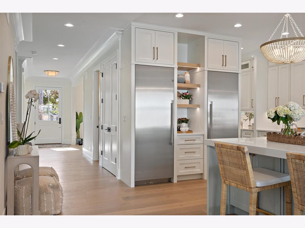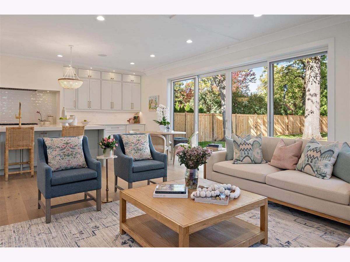 Just completed October 28th, this breezy, bright, and beautifully coastal new construction by one of the North Shore's premier builders captures the essence of modern beachy living. From the moment you arrive the sea salt blue shutters set the tone for what's inside: a sun-kissed sanctuary where craftsmanship meets coastal charm. Soaring ceilings, hand-beveled wide-plank white oak floors, Marvin windows, Ann Sacks tile, and layers of quartz and fine white marbles, all woven together with exquisite millwork and a refined, airy palette. Foyer opens to a coastal-inspired office wrapped in soft pale blue cabinetry and custom glass French doors. Formal dining room connects seamlessly to a fully outfitted butler's pantry, leading into the show-stopping Chef's kitchen-straight out of a Serena & Lily magazine. Thick white & light-veined quartz countertops, Visual Comfort pendants, custom cabinetry with polished brass accents, Thermador appliances and a soft blue island anchoring the room with seating for 5. Open-concept kitchen to family room centered around a black surround gas fireplace flanked by custom built-ins, bathe in sunlight through expansive floor-to-ceiling glass doors that open to the back patio and lush backyard. Mudroom with built in bench, gray and white checkered floors and sky-blue cabinetry and a designer level powder room complete this level. Second level with 4 ensuite bedrooms, each with its own beautifully tailored bath and fully built-out closets. Luxury primary suite a five-star retreat, featuring vaulted ceilings, large walk-in closet and a luxe white spa bath with dual vanities, walk-in shower, and soaking tub. Second level laundry room with double washer and dryer. Sun-drenched third floor offers endless versatility with bedroom, full bath, playroom, and office space. Fully loaded lower-level w/ a glass-enclosed gym with rubber flooring & mirrored walls, sleek wine cellar with custom racking and glass door, bedroom, full bath, and a large recreation room with custom media center and wet bar. This beachy new construction home delivers the ultimate living experience-a one-of-a-kind opportunity set in a prime Winnetka steps to it all!
