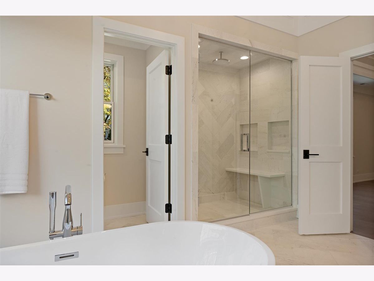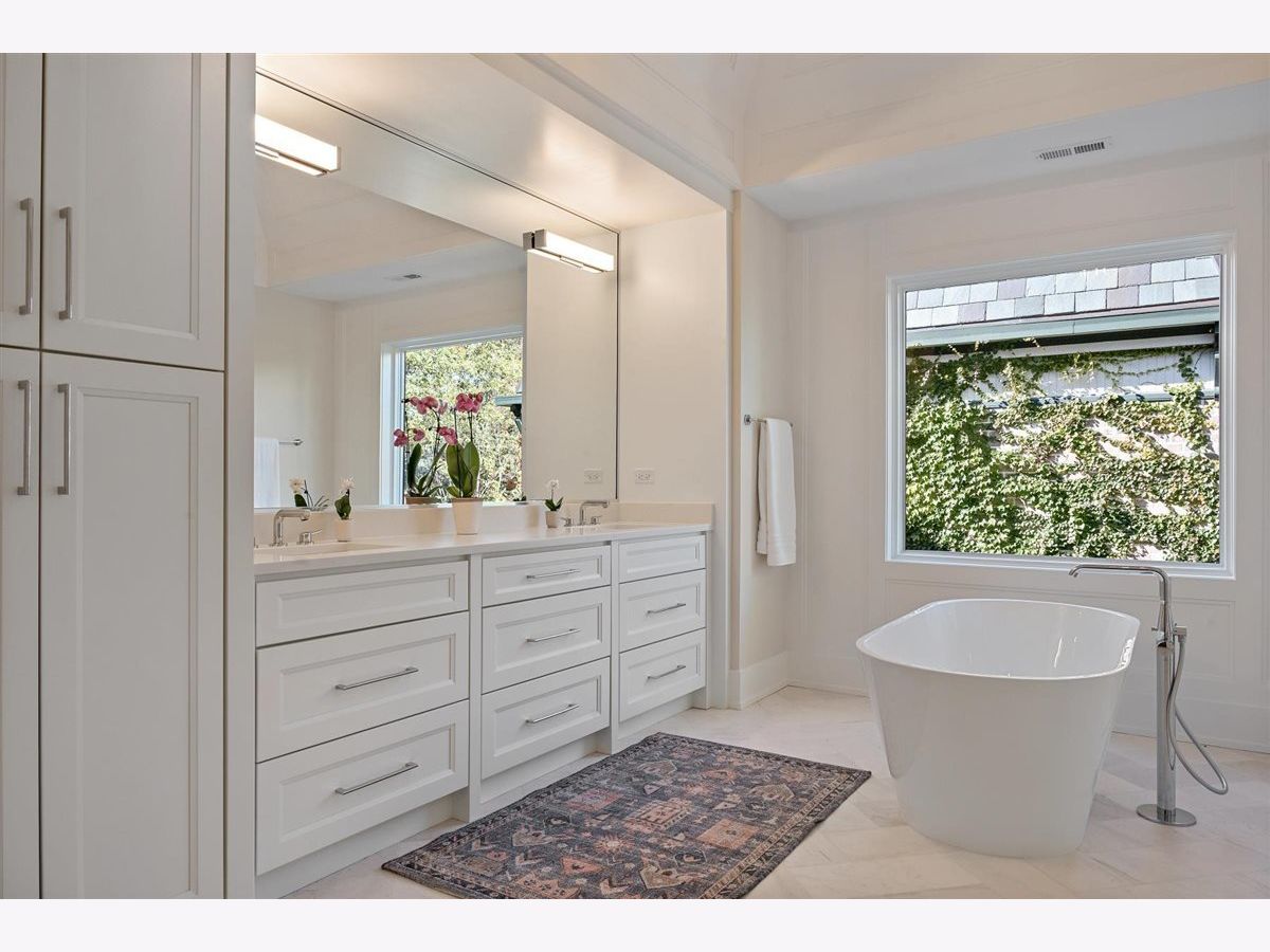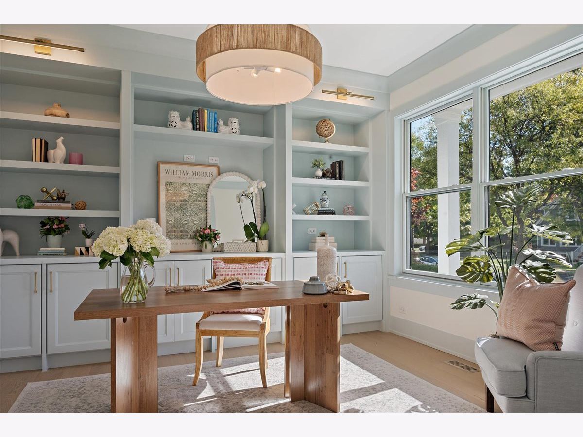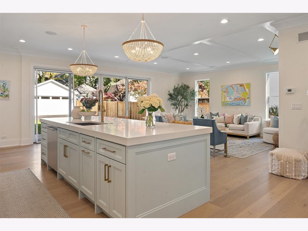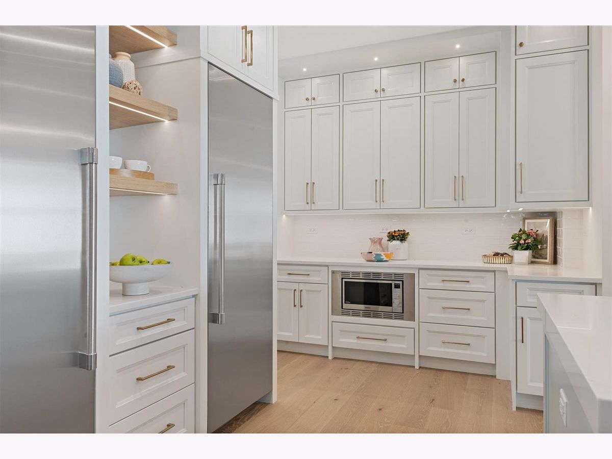 Just completed October 28th, this breezy, bright, and beautifully coastal new construction by one of the North Shore's premier builders captures the essence of modern beachy living. From the moment you arrive the sea salt blue shutters set the tone for what's inside: a sun-kissed sanctuary where craftsmanship meets coastal charm. Soaring ceilings, hand-beveled wide-plank white oak floors, Marvin windows, Ann Sacks tile, and layers of quartz and fine white marbles, all woven together with exquisite millwork and a refined, airy palette. Foyer opens to a coastal-inspired office wrapped in soft pale blue cabinetry and custom glass French doors. Formal dining room connects seamlessly to a fully outfitted butler's pantry, leading into the show-stopping Chef's kitchen-straight out of a Serena & Lily magazine. Thick white & light-veined quartz countertops, Visual Comfort pendants, custom cabinetry with polished brass accents, Thermador appliances and a soft blue island anchoring the room with seating for 5. Open-concept kitchen to family room centered around a black surround gas fireplace flanked by custom built-ins, bathe in sunlight through expansive floor-to-ceiling glass doors that open to the back patio and lush backyard. Mudroom with built in bench, gray and white checkered floors and sky-blue cabinetry and a designer level powder room complete this level. Second level with 4 ensuite bedrooms, each with its own beautifully tailored bath and fully built-out closets. Luxury primary suite a five-star retreat, featuring vaulted ceilings, large walk-in closet and a luxe white spa bath with dual vanities, walk-in shower, and soaking tub. Second level laundry room with double washer and dryer. Sun-drenched third floor offers endless versatility with bedroom, full bath, playroom, and office space. Fully loaded lower-level w/ a glass-enclosed gym with rubber flooring & mirrored walls, sleek wine cellar with custom racking and glass door, bedroom, full bath, and a large recreation room with custom media center and wet bar. This beachy new construction home delivers the ultimate living experience-a one-of-a-kind opportunity set in a prime Winnetka steps to it all!