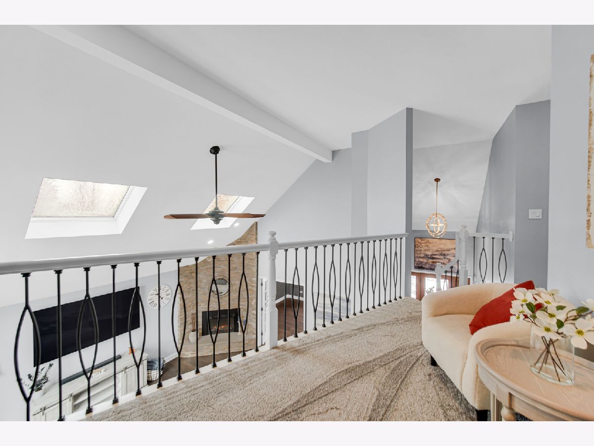 Stunning 4-bedroom + loft, 2.5-bath custom two-story with a main-level office, perfectly situated on a beautifully landscaped lot with serene pond views! This spacious home showcases soaring vaulted ceilings and numerous updates throughout, offering both style and functionality. The thoughtfully designed layout includes a versatile office on the main floor and 2 generous living spaces ideal for everyday living and entertaining, formal dining room, seperate laundry room with backyard access and gorgeous kitchen with tons a cabinets. Upstairs, you'll find four spacious bedrooms, including a primary suite with a walk-in closet, plus a loft for additional living space. Brand new carpet throughout the upper level adds a fresh, modern touch. Recent updates include a newer roof (6 years), painted siding with new soffits, upgraded attic insulation, and a 75-gallon water heater (5 years). The kitchen features a newer sliding glass door (still under warranty with 8 years remaining), providing easy access to the impressive 21x36 stamped concrete patio-perfect for outdoor gatherings. The partially finished basement offers additional space to customize to your needs, while the oversized 3.5-car garage provides ample storage. Enjoy a prime location within walking distance to the library, park, and the scenic Old Plank Trail. With beautiful pond views, extensive updates, and exceptional space, this home truly has it all!
