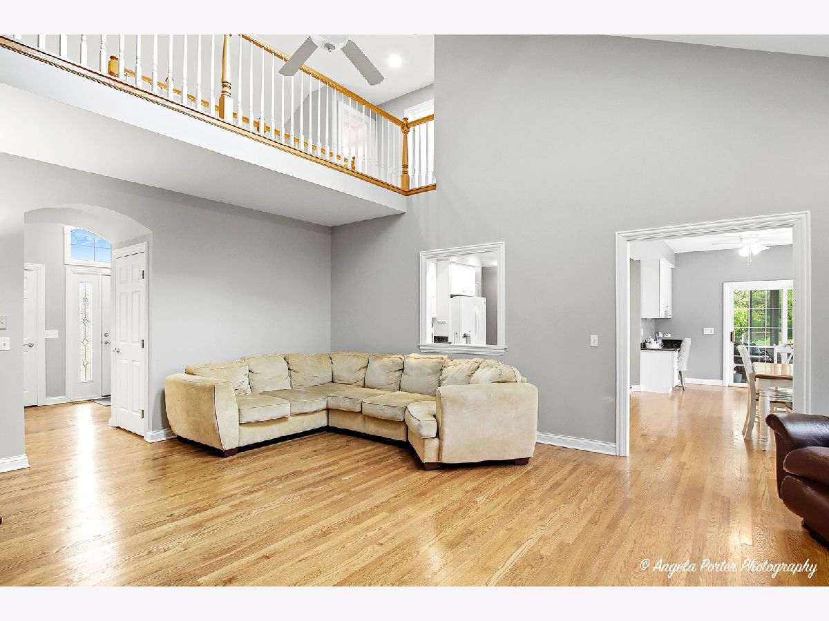 Stunning home in Chalet Hills Estates situated on the 10th hole of Chalet Hills Golf Course! This spacious and well-maintained property sits on over 1/2 acre with beautiful golf course views and offers a flowing floor plan perfect for everyday living and entertaining. The great room features soaring ceilings and a cozy fireplace, while the bright, open kitchen includes 42" cabinets, granite countertops, a large island, recessed lighting, walk-in pantry, reverse osmosis system, and a breakfast nook with eating area and built-in workstation. Appliances include a stove and fridge (5 years new), and a dishwasher, washer, and dryer (2 years new). Relax in the sunroom just off the kitchen or step out to the large deck with retractable Sunsetter awning. A formal dining room with elegant crown molding and an inviting two-story foyer add sophistication, while the first-floor master suite features tray ceilings, a walk-in closet, and a private bath with separate tub and shower. Also on the main level: a den/library with custom built-ins, a full bath, 4th bedroom, laundry room, and beautiful hardwood floors throughout much of the space. Upstairs offers a spacious loft, two oversized bedrooms, and a full bath. The partially finished English basement features a family room with bar, exercise area, den, rough-in for a bathroom, workshop, and plenty of storage with room to expand. Additional features include smart thermostat and garage door, roof (2016), A/C (2019), water softener (2014), new well pressure tank, and an in-ground irrigation system. Truly a perfect blend of comfort, function, and location!