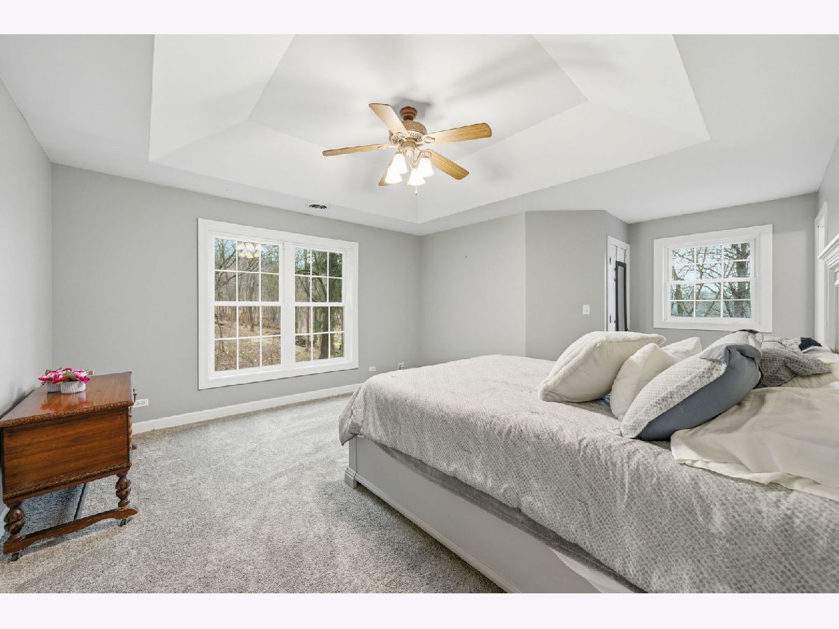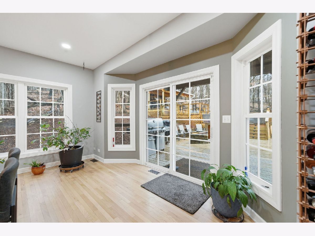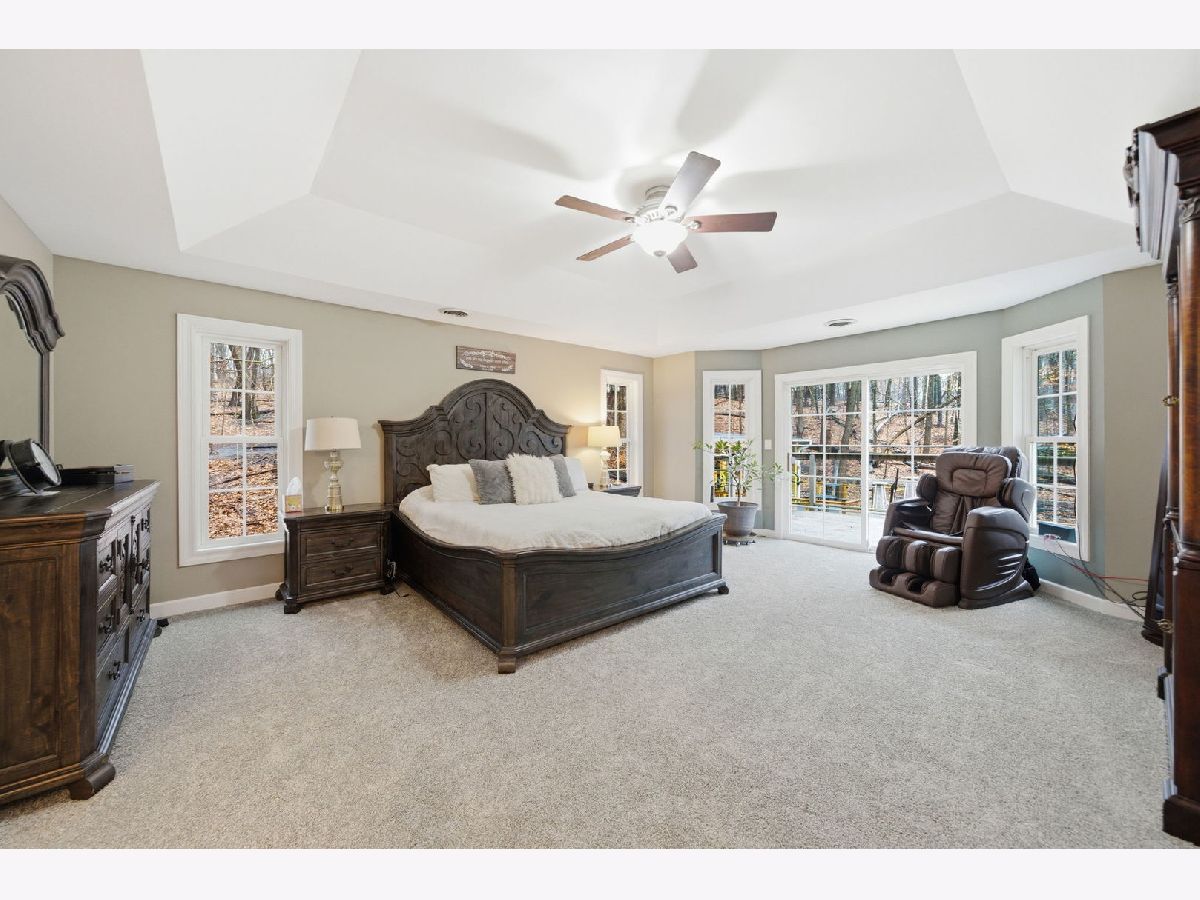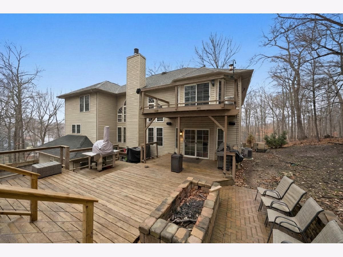 Welcome to this beautiful custom-built home nestled on a wooded 1+ acre lot at the end of a private cul-de-sac offering incredible privacy, panoramic river-views and over 5 acres of secluded woods surrounding the property. With Fox River access to the Chain O' Lakes, this property delivers a truly exceptional lifestyle both inside and out. Inside, the home welcomes you with a dramatic two-story foyer with decorative ledges that opens to a private study with glass French doors and an entertainment-sized dining room. The heart of the home is the beautifully updated gourmet kitchen featuring custom cabinetry, granite counters, large pantry, and high-end Dacor stainless steel appliances. The breakfast area opens to a large deck with upgraded cable deck railings that provide a sleek modern look while maximizing views of the surrounding nature. The two-story great room features a striking stone fireplace and floor-to-ceiling windows that frame the wooded landscape. A spacious main-floor bedroom with adjacent full bath offers excellent in-law or guest potential. Upstairs, the luxurious primary suite features a tray ceiling and private deck overlooking the peaceful wooded setting and stream that runs through the back of the property - the perfect spot for morning coffee while enjoying the sounds of nature. The spa-like primary bath includes a whirlpool tub, shower with body jets, bidet, and a large walk-in closet with custom organizers. Two generously sized bedrooms share a Jack-and-Jill bathroom and spacious loft area offers additional living space and includes pull-down attic access that could be finished for a future bonus room. The full walk-out basement creates the ultimate entertaining retreat with a 20-foot long bar/kitchen, granite bar top, temperature-controlled wine cellar for up to 250 bottles, outdoor access, and an additional gas heater for year-round comfort. Recent improvements and features include: * New whole-house carpet (2026) * Granite countertops in all bathrooms * Two new furnaces with humidifiers and ozone purification systems * New well pump * New wi-fi garage doors and openers * Heated 3-car garage * Whole-house water filtration system and water softener * Reverse osmosis in kitchen and basement kitchen to the sink, freezer and commercial grade pearl ice-maker * Self-retracting central vacuum system on every floor * Outdoor and basement speaker system * Security camera system * Underground electric dog fence covering approximately one acre * Professionally installed landscape lighting. The property is further enhanced with a 45-foot deeded riverfront sublot on the Fox River with custom stone stairs leading to the water. Newly built boat dock, mechanical solar-powered boat lift up to 7500lbs and access to the Chain O' Lakes, making it ideal for boating, fishing, waterfront entertaining, or enjoying breathtaking sunsets. With its rare Fox River frontage, access to the Chain O' Lakes, stunning private natural setting, and extensive upgrades, this home offers the perfect balance of luxury living and outdoor recreation. You Deserve This!