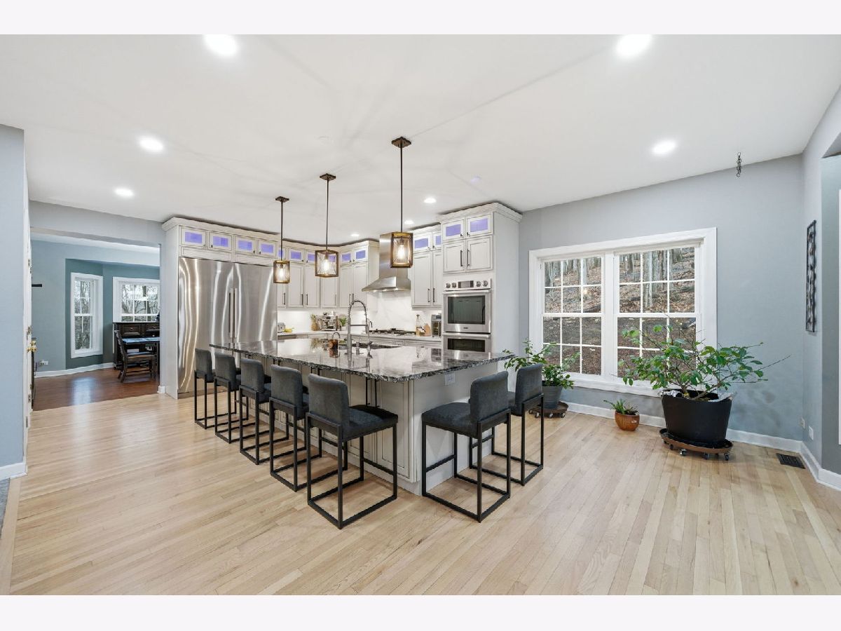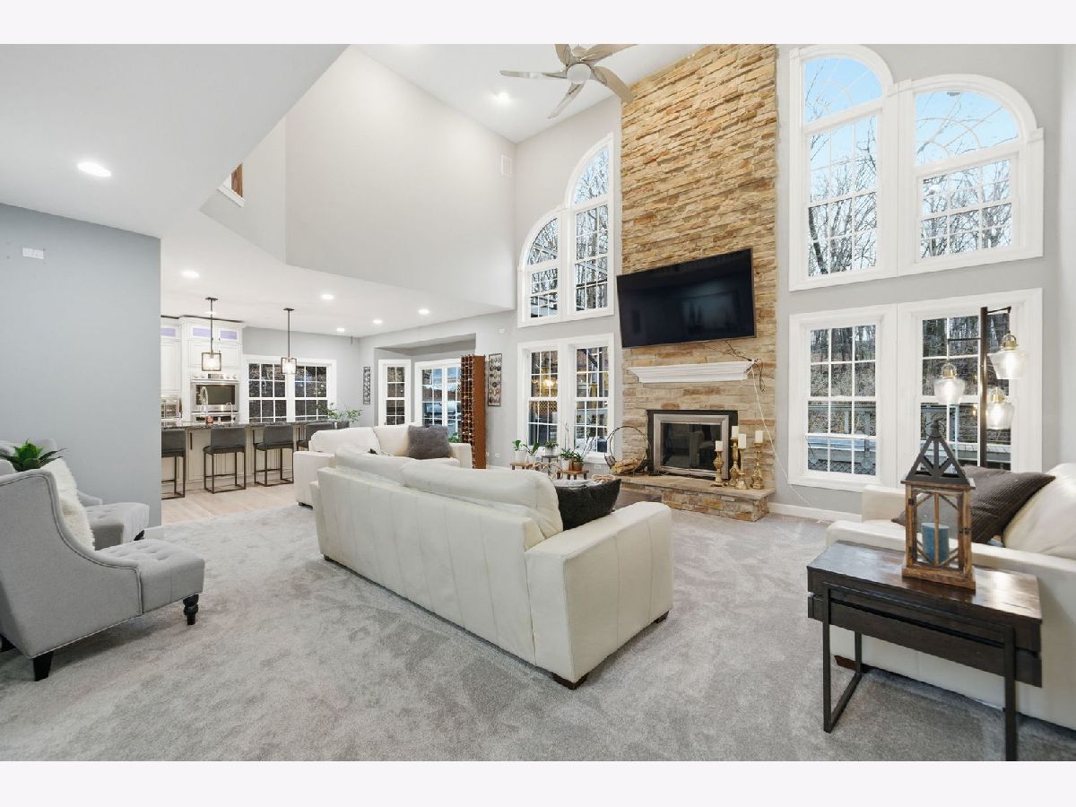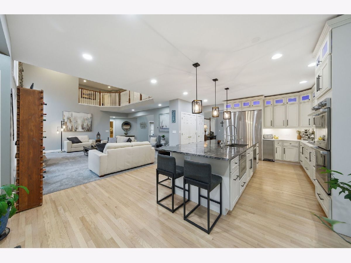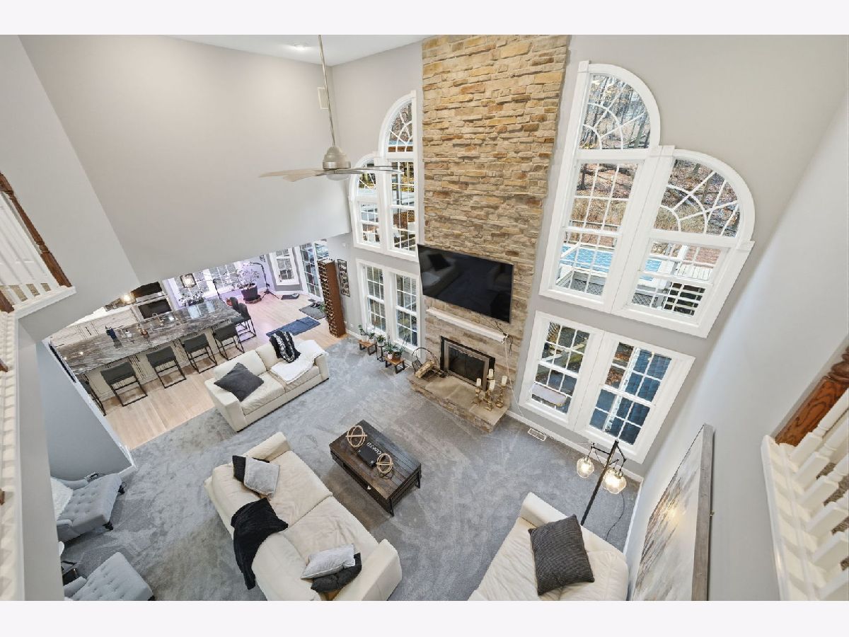 Welcome to this beautiful custom-built home nestled on a wooded 1+ acre lot at the end of a private cul-de-sac offering incredible privacy, panoramic river-views and over 5 acres of secluded woods surrounding the property. With Fox River access to the Chain O' Lakes, this property delivers a truly exceptional lifestyle both inside and out. Inside, the home welcomes you with a dramatic two-story foyer with decorative ledges that opens to a private study with glass French doors and an entertainment-sized dining room. The heart of the home is the beautifully updated gourmet kitchen featuring custom cabinetry, granite counters, large pantry, and high-end Dacor stainless steel appliances. The breakfast area opens to a large deck with upgraded cable deck railings that provide a sleek modern look while maximizing views of the surrounding nature. The two-story great room features a striking stone fireplace and floor-to-ceiling windows that frame the wooded landscape. A spacious main-floor bedroom with adjacent full bath offers excellent in-law or guest potential. Upstairs, the luxurious primary suite features a tray ceiling and private deck overlooking the peaceful wooded setting and stream that runs through the back of the property - the perfect spot for morning coffee while enjoying the sounds of nature. The spa-like primary bath includes a whirlpool tub, shower with body jets, bidet, and a large walk-in closet with custom organizers. Two generously sized bedrooms share a Jack-and-Jill bathroom and spacious loft area offers additional living space and includes pull-down attic access that could be finished for a future bonus room. The full walk-out basement creates the ultimate entertaining retreat with a 20-foot long bar/kitchen, granite bar top, temperature-controlled wine cellar for up to 250 bottles, outdoor access, and an additional gas heater for year-round comfort. Recent improvements and features include: * New whole-house carpet (2026) * Granite countertops in all bathrooms * Two new furnaces with humidifiers and ozone purification systems * New well pump * New wi-fi garage doors and openers * Heated 3-car garage * Whole-house water filtration system and water softener * Reverse osmosis in kitchen and basement kitchen to the sink, freezer and commercial grade pearl ice-maker * Self-retracting central vacuum system on every floor * Outdoor and basement speaker system * Security camera system * Underground electric dog fence covering approximately one acre * Professionally installed landscape lighting. The property is further enhanced with a 45-foot deeded riverfront sublot on the Fox River with custom stone stairs leading to the water. Newly built boat dock, mechanical solar-powered boat lift up to 7500lbs and access to the Chain O' Lakes, making it ideal for boating, fishing, waterfront entertaining, or enjoying breathtaking sunsets. With its rare Fox River frontage, access to the Chain O' Lakes, stunning private natural setting, and extensive upgrades, this home offers the perfect balance of luxury living and outdoor recreation. You Deserve This!