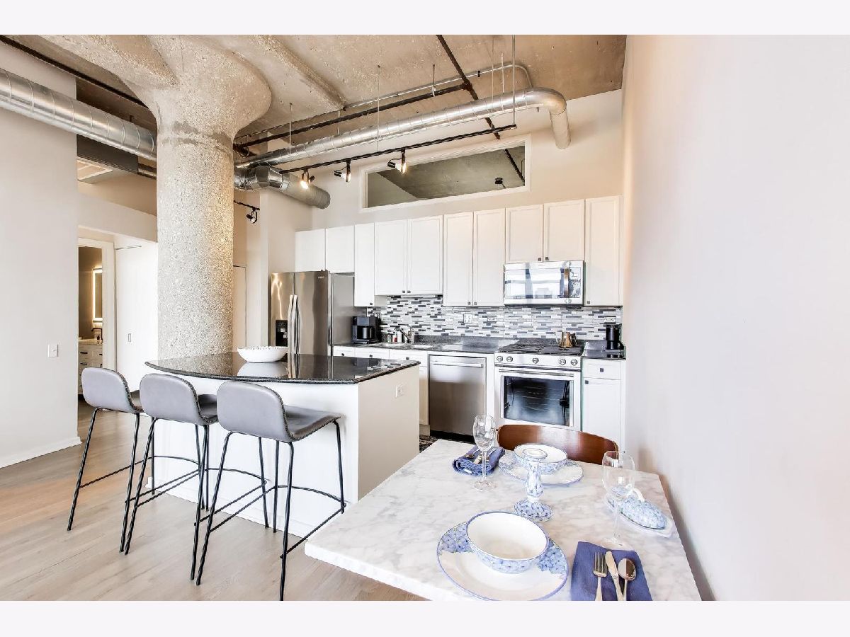 HOT RIVER NORTH- WELCOME TO DOMAIN, 900 N. KINGSBURY. This stunning, open concept, split floorplan 2-bedroom, 2-bath has a MASSIVE 30x25 PRIVATE TERRACE! This sun-filled home with large windows has been completely remodeled with designer finishes throughout. This concrete loft is filled with character including 12' ceilings, hardwood floors throughout, and even has the original mushroom columns!! Open kitchen with granite countertops, stainless steel appliances and a generous island with room for bar stools. The 750 SF OUTDOOR TERRACE is perfect for entertaining or enjoying the sun. The second bedroom is fully enclosed; both bedrooms are a great size and can accommodate KING beds! Other features include generous storage and closet space, central heat and air, and washer/dryer in unit. The monthly assessments include Xfinity high-speed internet, premium cable package, gas, and individually controlled heat, and air conditioning. Domain is a full-service building with 24-hour door staff, receiving room, and onsite management and maintenance team. The building has an exercise room, fitness center, dry cleaner, 12th floor rooftop party room, and sundeck with 360-degree city views! Storage locker included. Pet friendly - with dog parks close by. Walk to the Chicago Riverwalk, boat docks with a water taxi stop, boat slips and pontoon rentals are available! Nearby you will find Allyu Spa, Bian, Erie Cafe, Kai Sushi, Starbucks, Target, and CTA Chicago Brown Line. Deeded garage parking is an additional $30,000 with an additional assessment of $126.91/month. Taxes do not include homeowner exemption. This is a MUST-SEE HOME!!