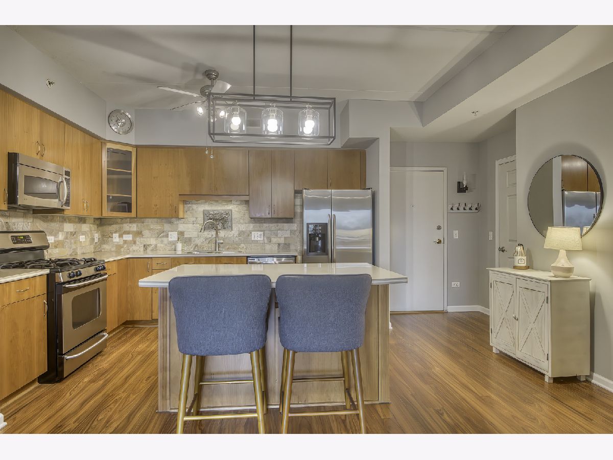 Welcome to this beautifully maintained 2 bed / 2 bath condo in the heart of Des Plaines. This home offers a spacious, open-concept living and dining area with a great layout and easy flow out to a private balcony-ideal for both everyday living and entertaining. The kitchen provides ample cabinet space and connects seamlessly to the main living area, while the split-bedroom layout offers comfortable separation and privacy. Both bedrooms are generously sized with good closet space, and the bathrooms have been nicely updated. Additional highlights include generous storage with abundant closet-space throughout, in-unit laundry, heated garage parking, and a private storage unit. The building is well-managed with secure entry and strong overall upkeep. All of this in a highly convenient location just steps to downtown Des Plaines, Metra, restaurants, shops, parks, and with easy access to major highways and O'Hare.