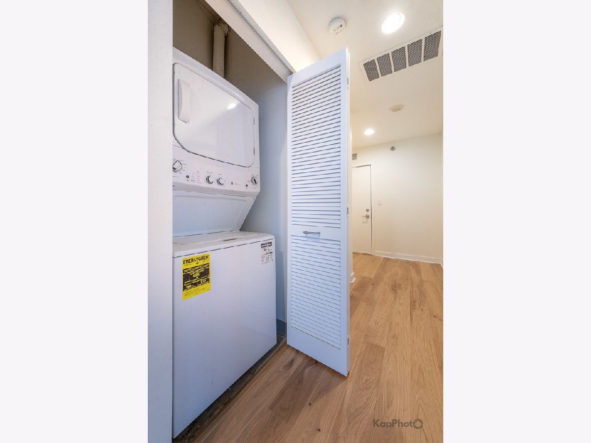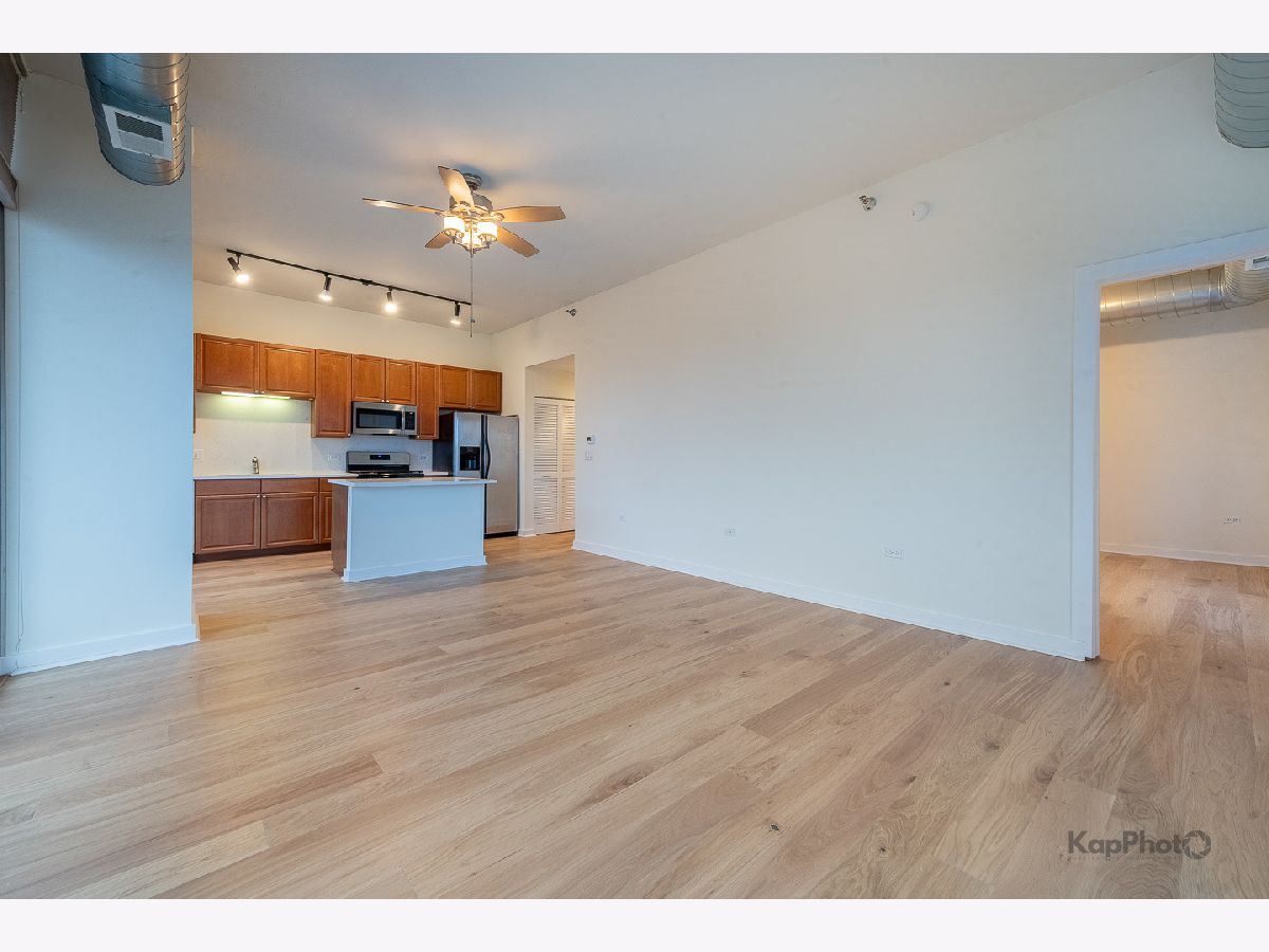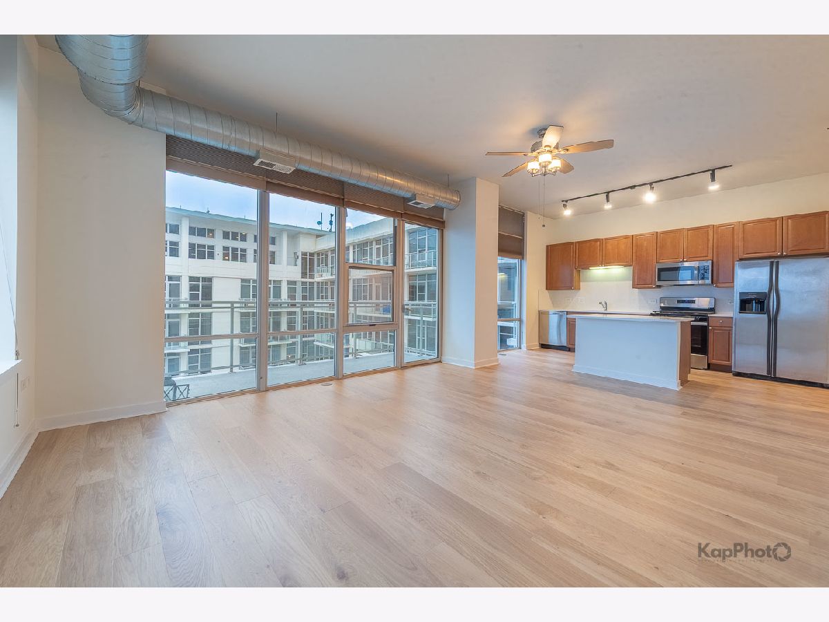 Bright and sunny southwest corner 1 bed/1 bath in high amenity building overlooking Mary Bartelme Park. Entirely freshly painted, this unit is appointed with BRAND NEW hardwood floors throughout, big windows, large balcony, in-unit washer/dryer, and custom window treatments. Kitchen features 42" cabinets, BRAND NEW Quartz countertops, Quartz backsplash, island with overhang, and stainless steel appliances. Large bedroom with ample closets and large windows with direct view of Mary Bartelme Park. Amenities include lobby, door staff, 4th floor courtyard, fitness center, rec room with kitchen, lounge, pool table, and sun deck. Prime indoor parking space available for an additional $30,000. Storage cage and bike storage included. Amazing location on Madison Row and steps to Mary Bartelme Park, Whole Foods, Mariano's, restaurants, shops, public transportation, Greektown, and the Fulton Market District.