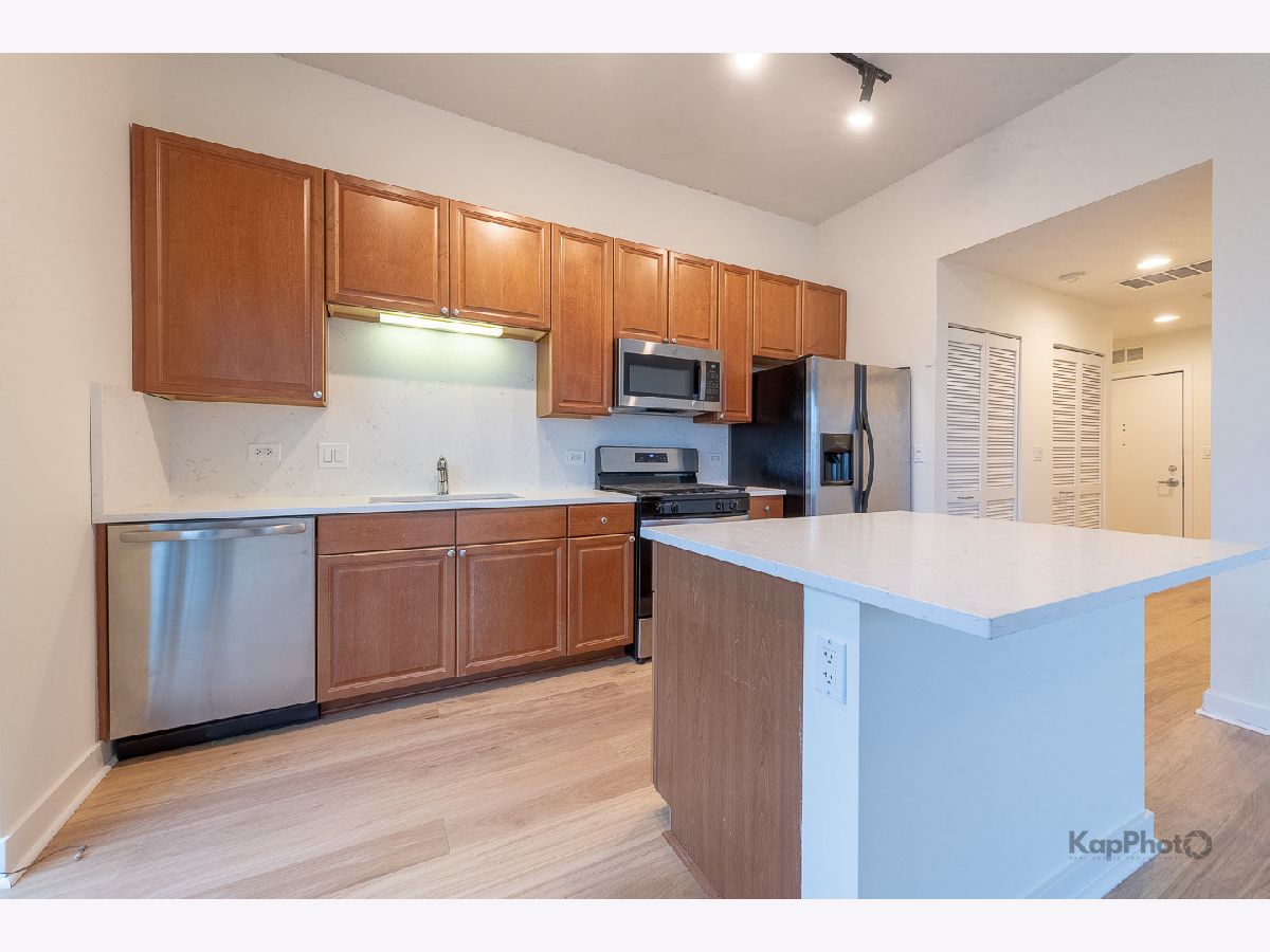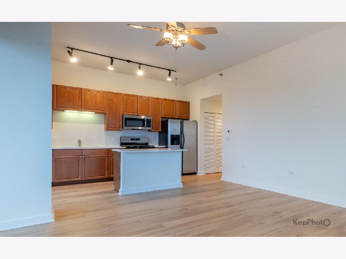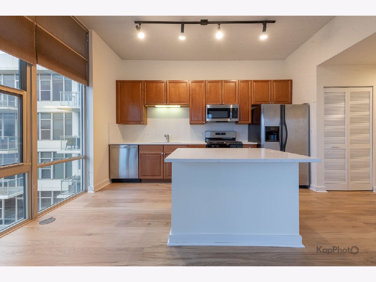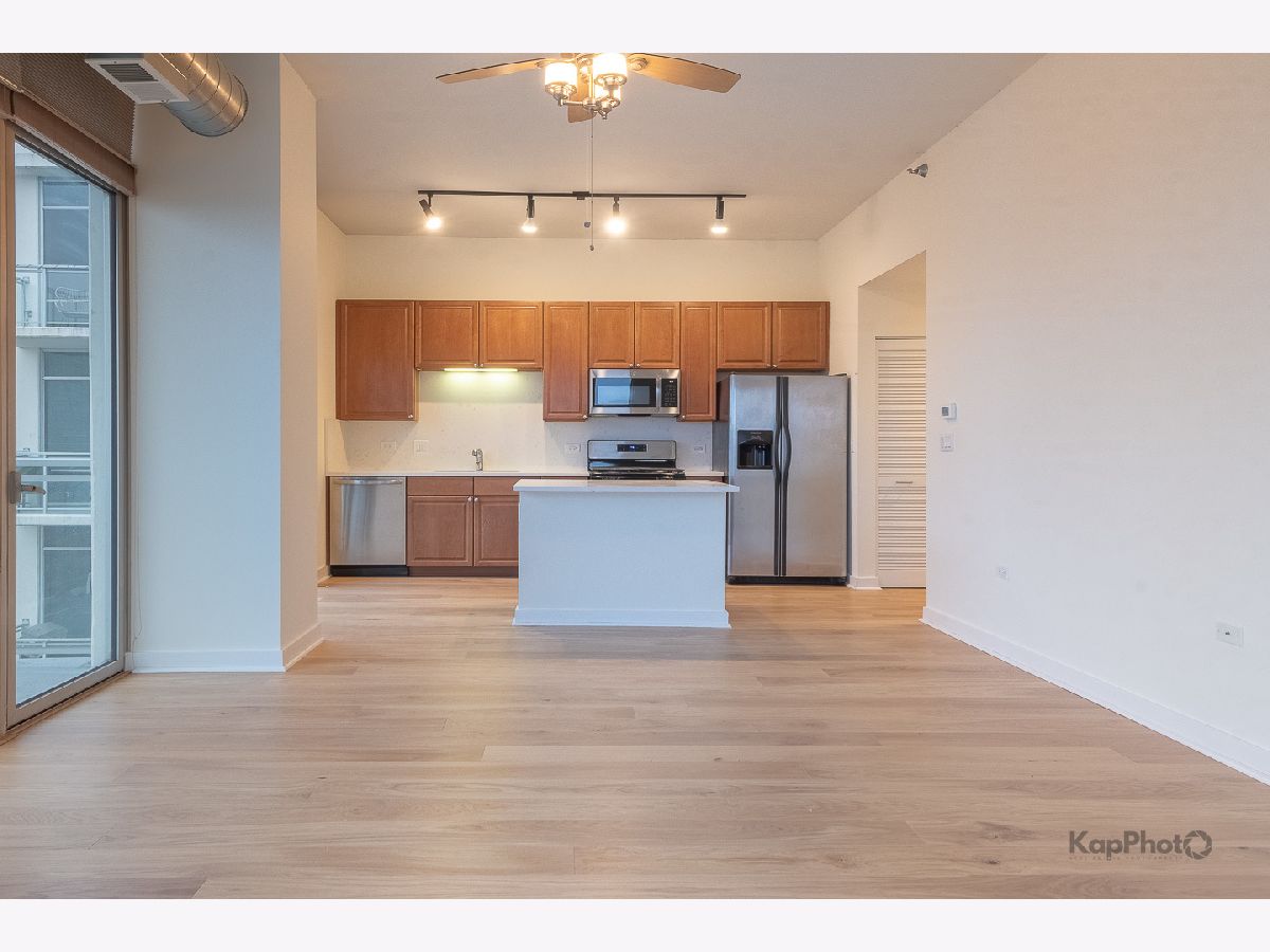 Bright and sunny southwest corner 1 bed/1 bath in high amenity building overlooking Mary Bartelme Park. Entirely freshly painted, this unit is appointed with BRAND NEW hardwood floors throughout, big windows, large balcony, in-unit washer/dryer, and custom window treatments. Kitchen features 42" cabinets, BRAND NEW Quartz countertops, Quartz backsplash, island with overhang, and stainless steel appliances. Large bedroom with ample closets and large windows with direct view of Mary Bartelme Park. Amenities include lobby, door staff, 4th floor courtyard, fitness center, rec room with kitchen, lounge, pool table, and sun deck. Prime indoor parking space available for an additional $30,000. Storage cage and bike storage included. Amazing location on Madison Row and steps to Mary Bartelme Park, Whole Foods, Mariano's, restaurants, shops, public transportation, Greektown, and the Fulton Market District.