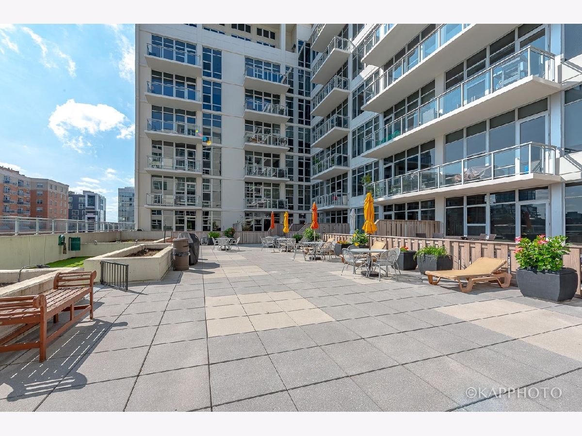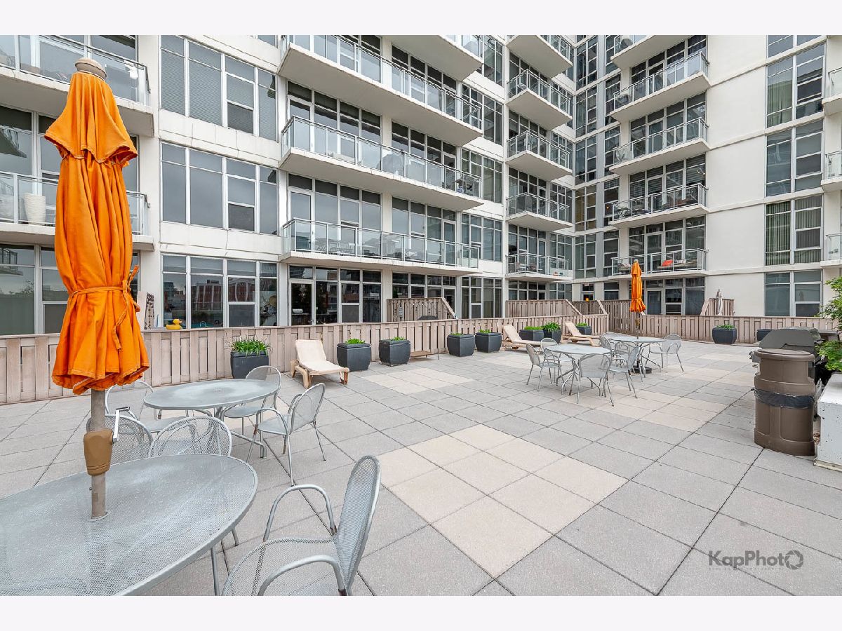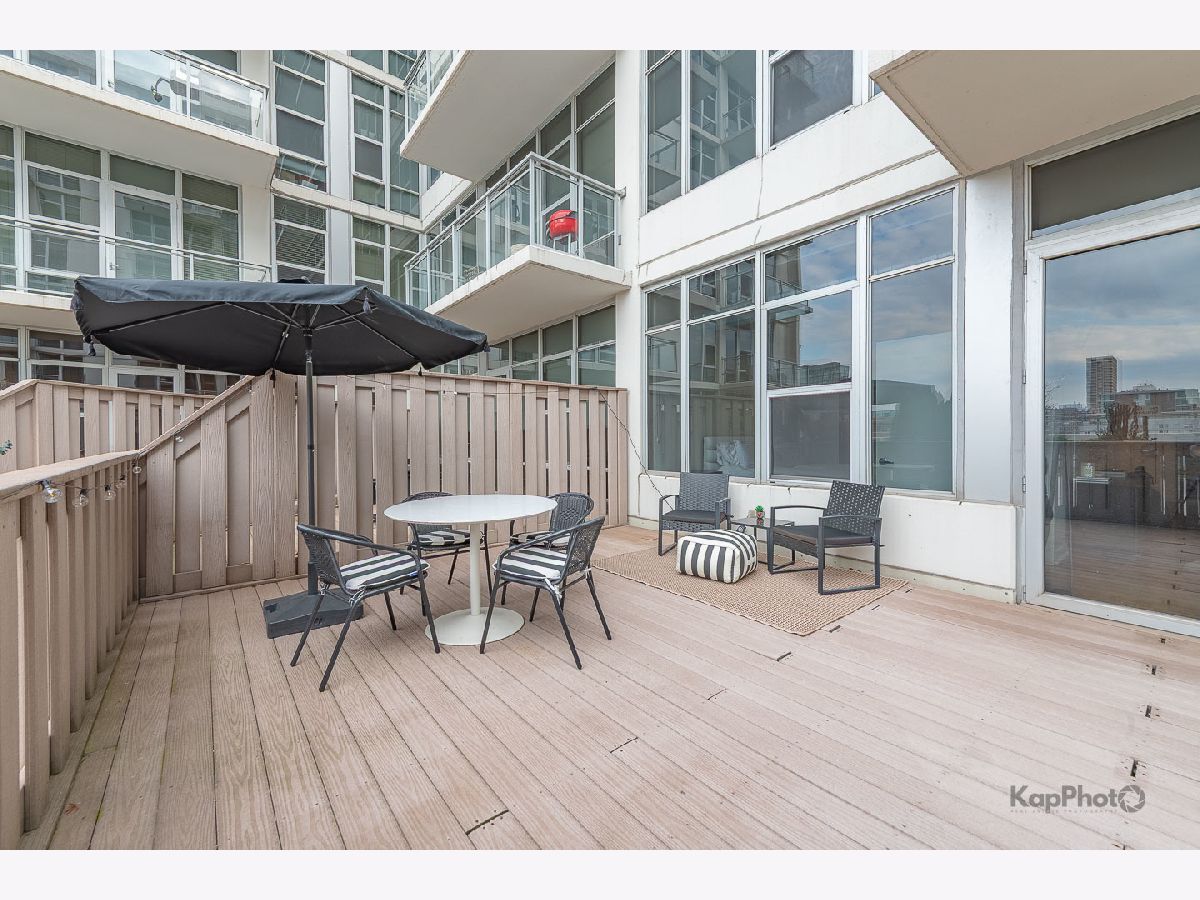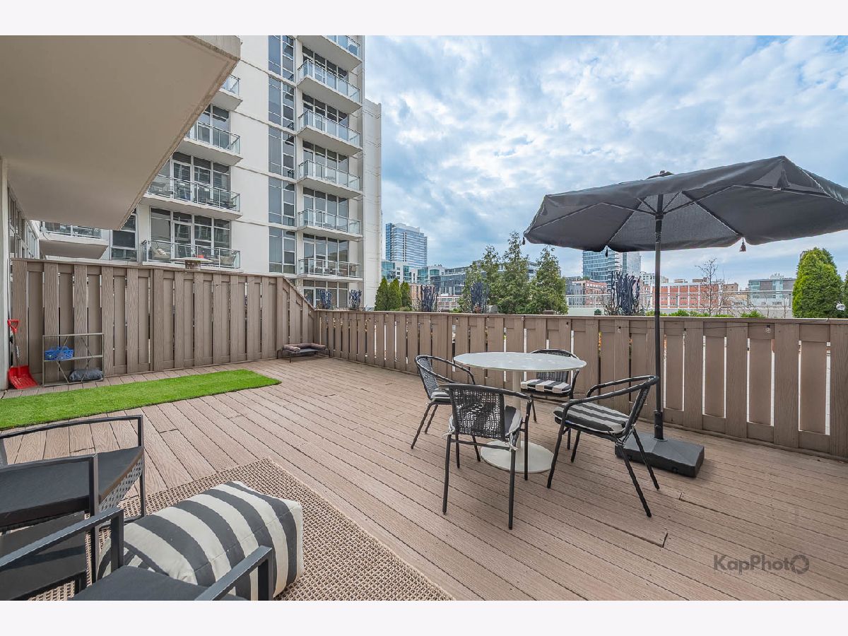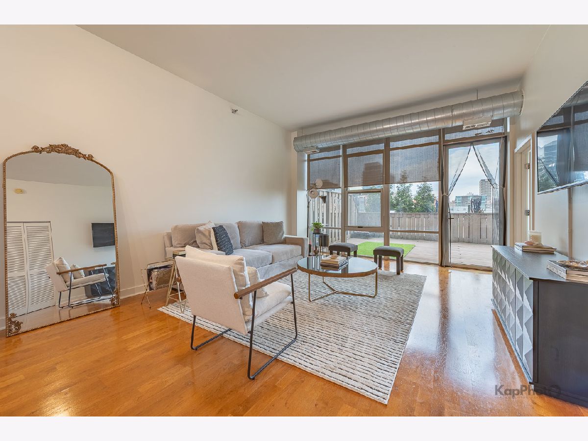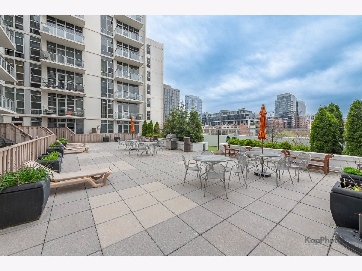 Spacious and pristine south facing 1 bed/1 bath with huge private terrace and best parking space in high amenity building and outstanding West Loop location. Exceptional bright and recently painted, this unit is appointed with hardwood floors, tall ceilings, large windows, and in-unit washer/dryer. Kitchen features plenty of cabinet space, stainless steel appliances, granite countertops, and large island. Fully enclosed bedroom with access to bathroom that also serves as a powder room. Highly inclusive monthly assessment includes heat, gas, internet, and water. Amenities include door staff, gym, 4th floor courtyard, dog run, top floor sundeck, recreation/party room, storage cage, and bike storage. Prime heated end parking space an additional $35,000. Situated on Madison Row only a block to Mary Bartelme Park and steps to Whole Foods, Mariano's, shops, restaurants, the loop, public transportation, Greektown, and the Fulton Market District.