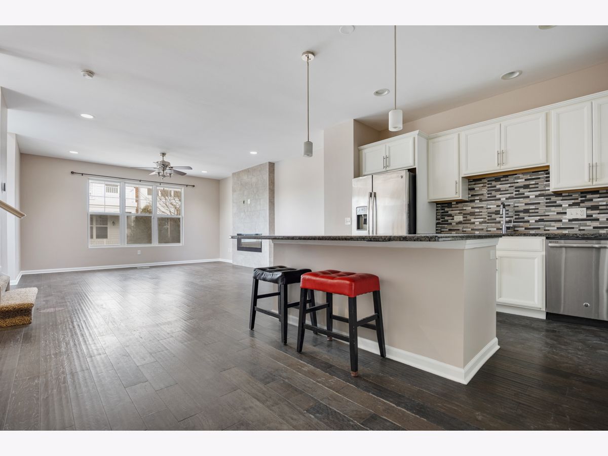 PRIME LOCATION - END UNIT - NORTH FACING CORNER UNIT - With incredible views and gorgeous sunlight throughout the day/year! The Hartford model is the larger model offered in Union Square by the builder. Enjoy beautiful courtyard landscaping and open area from your double balconies - one from the Owner's suite, the other just off the front door! Modern and open floor plan features a luxury design, a massive kitchen with tons of cabinetry and a designer Signature island - with seating for four. Hardwood floors on the main level. Extra cabinets and pantry cabinets. Glass tile backsplash and extended island space as well. 2nd floor has 3 bedrooms with great closet space. The Owner's suite features a door to the balcony, barn door to owner's bath, and double vanity. One of the largest walk in closets in any townhouse! Both other bedrooms + laundry room on 2nd floor all get great sunlight. Home also has a full FINISHED basement ready to entertain! High ceilings. Naperville Indian Prairie 204 schools with Metea Valley high school! A commuter's dream and with a WALK TO METRA location and easy access to Route 59, shopping, highway 88, grocery/restaurants and so much more.