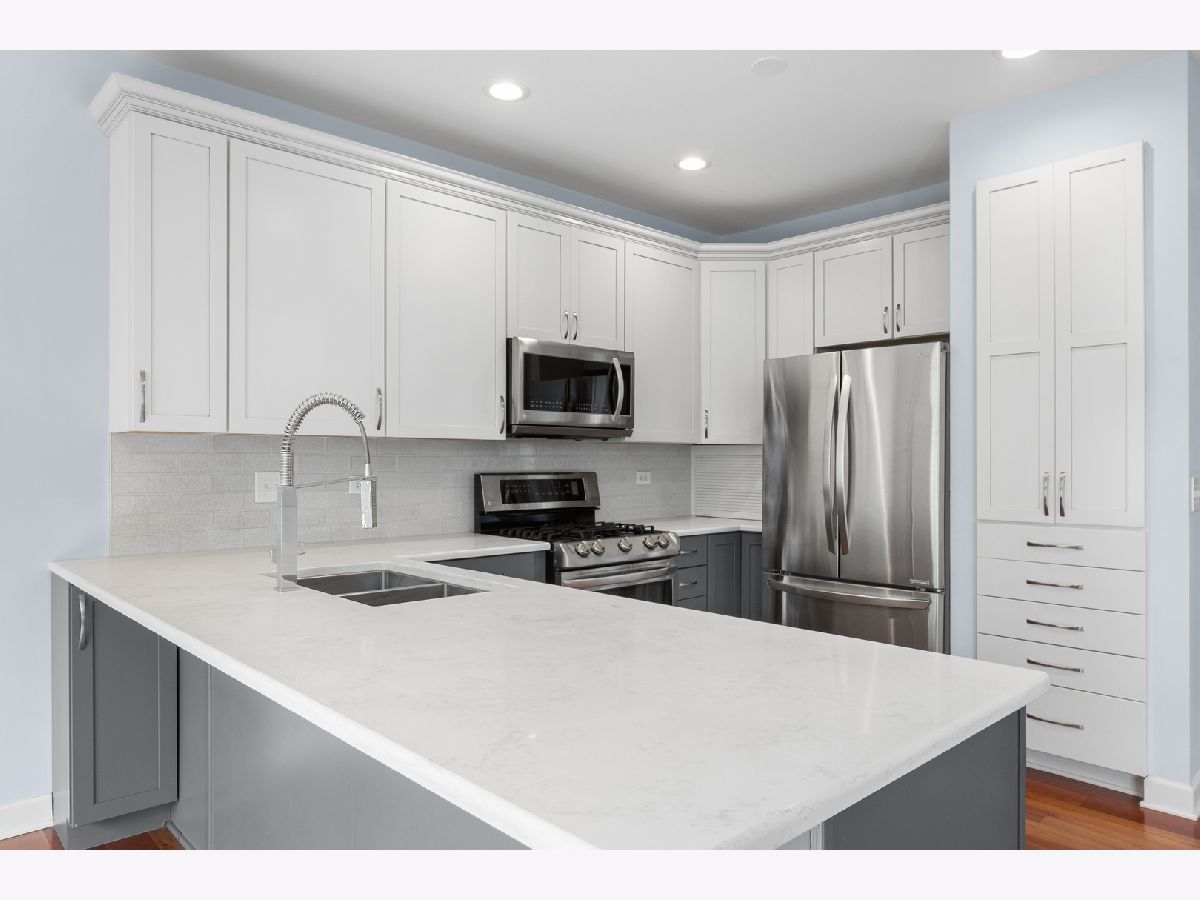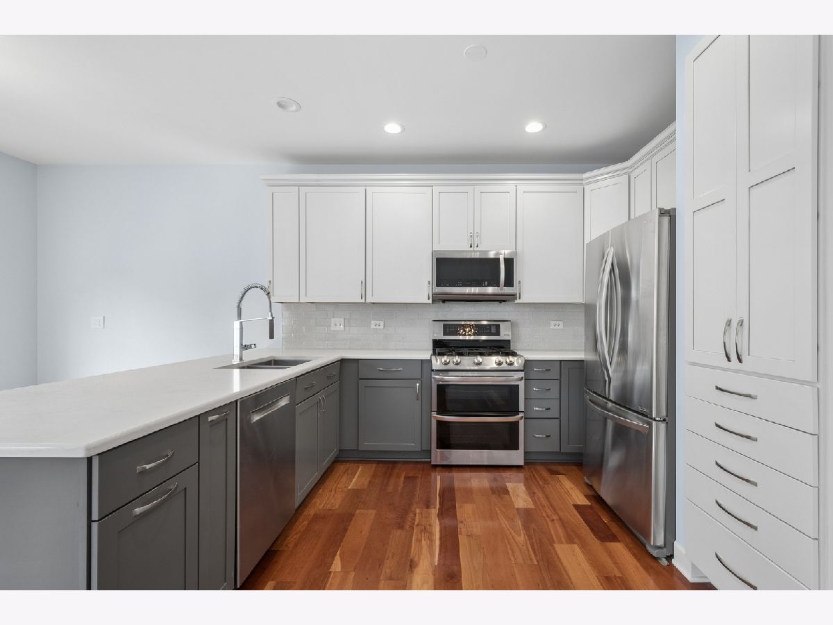 Rarely available! Very spacious townhome with full basement and attached 2 car garage. Main floor has living room with cathedral ceilings, dining area, gorgeous open kitchen, den, 1/2 bath, and laundry room. Second floor with 3 bedrooms and 2 full baths. The home was renovated (kitchen, baths, floors, etc.) in 2016. Newer furnace, central air, and sump pumps. Full unfinished basement with good ceiling height. Private patio in back and newer roof. Convenient location near lots of shopping, restaurants, expressways. Fresh move -in condition throughout! Vacant and easy to show!