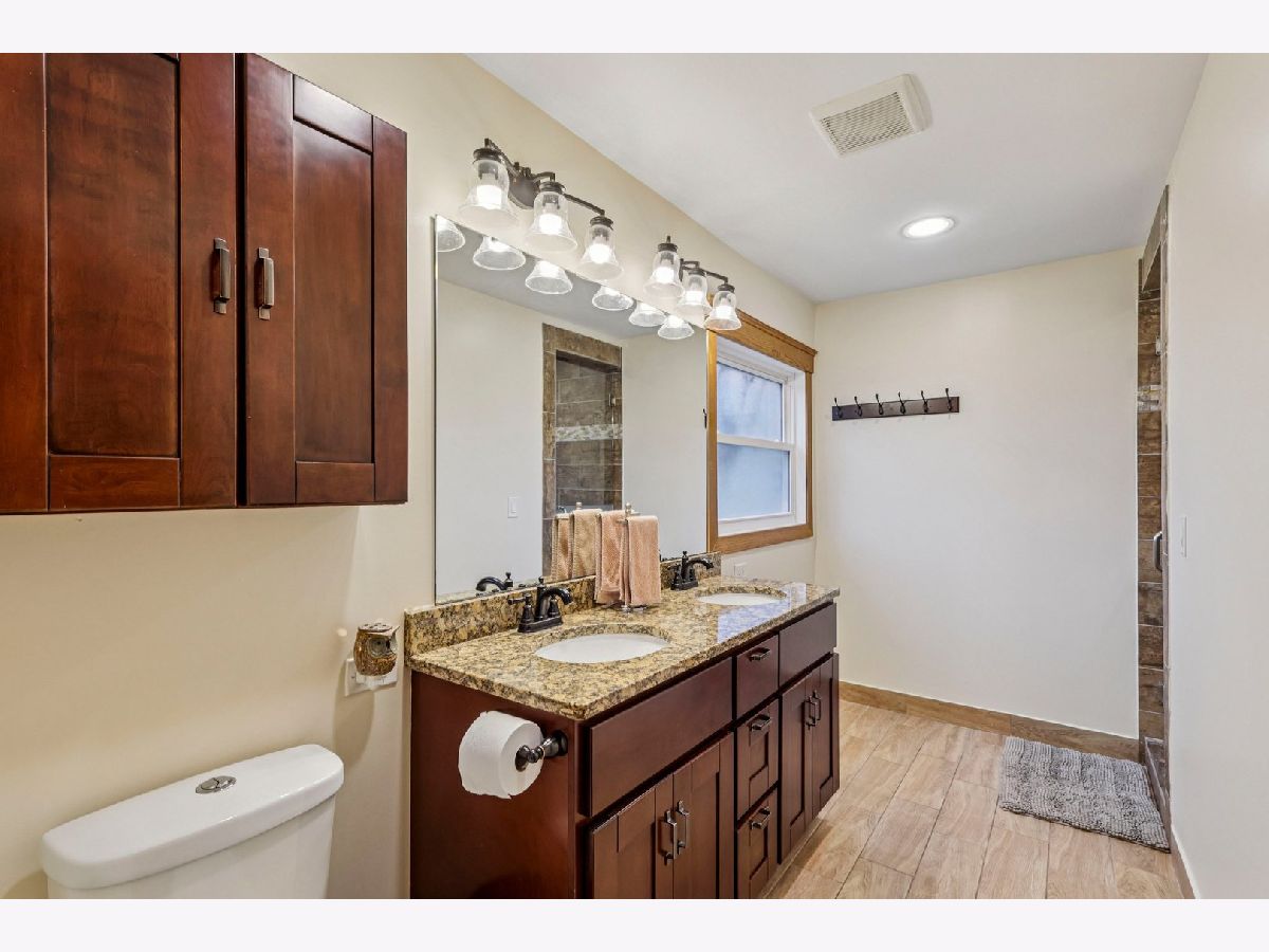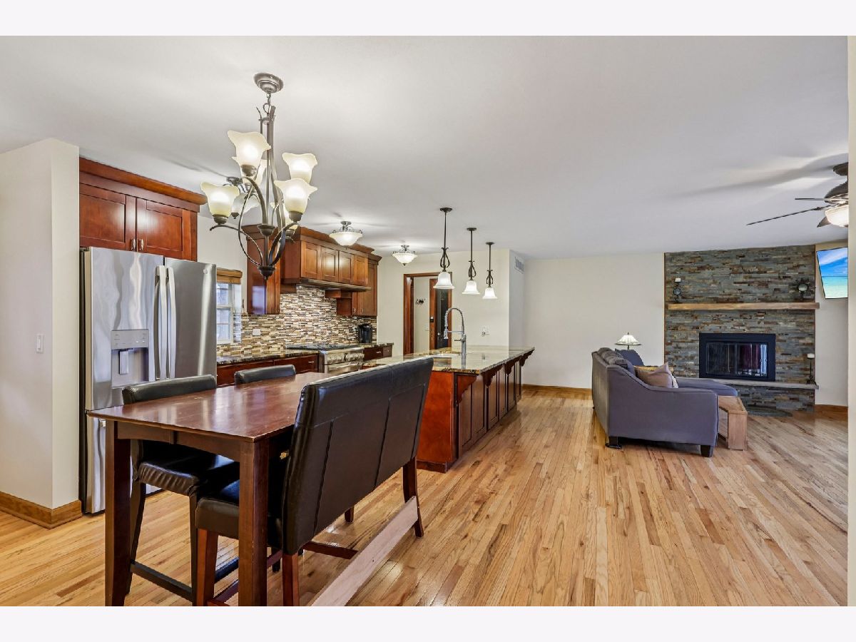 Welcome home to this wonderfully updated ranch situated on a spacious double lot! A charming front porch creates fantastic curb appeal and a warm first impression. Step inside and you're greeted by a bright, open floor plan. The eat-in kitchen has been beautifully updated with granite countertops, a tile backsplash, stainless steel appliances (including a Monogram stove), a deep freezer, high-end cabinetry with bonus storage, and two pantries-perfect for any home chef. The living room is an inviting space to relax, featuring a cozy fireplace and lovely views of the backyard. The main level offers three spacious bedrooms, including a primary suite with a walk-in closet complete with organizers and a freshly updated en suite bathroom showcasing a custom tile shower. Head downstairs to the fully finished basement, offering plenty of additional living space with a custom wet bar, comfortable sitting area, full bathroom, versatile flex room (ideal as a bedroom or office), and a large laundry area. Step outside to your fully fenced backyard-your own private oasis! The large patio is perfect for entertaining, complemented by a pool with an expansive deck and a shed with electricity. The fence includes access panels for convenience, making the space as functional as it is beautiful. A spacious two-car garage provides easy backyard access, and a well-designed mudroom at the entrance adds everyday convenience. Major updates include a new roof (2022) updated electrical (2021) and new HVAC (2019). Everything has been thoughtfully designed-this home is truly move-in ready!