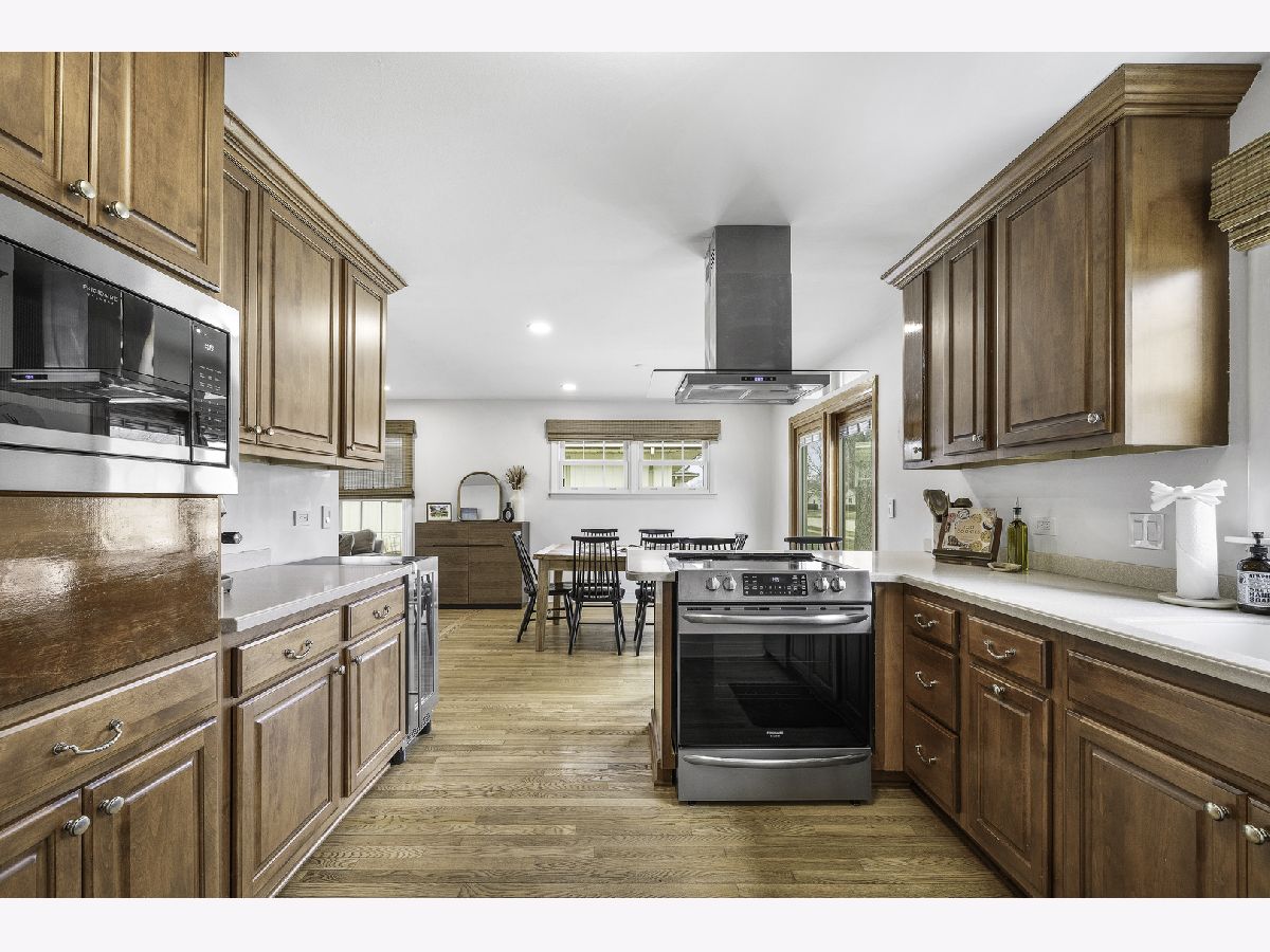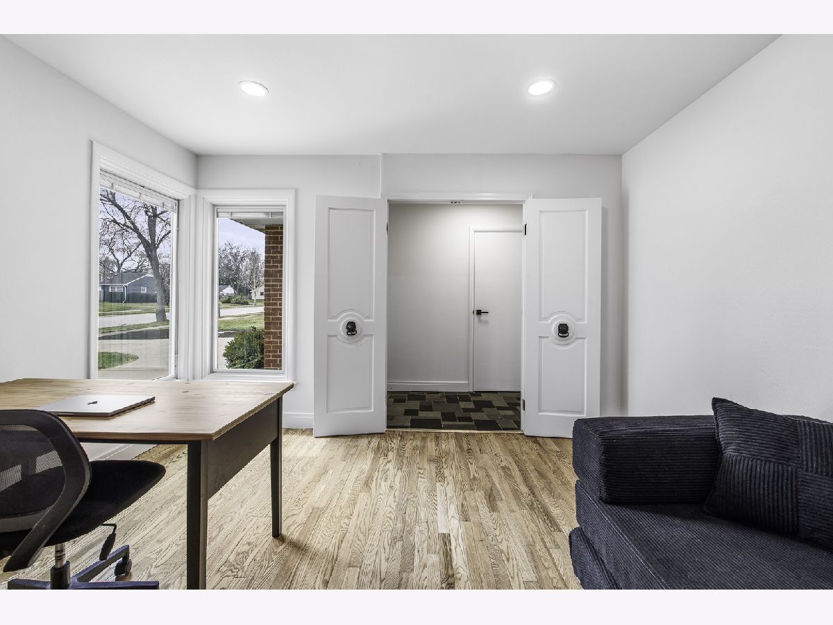 Welcome to this charming ranch style home situated on a prime corner lot in Arlington Heights. Thoughtfully updated with modern living in mind, this home offers a functional layout featuring a private office retreat while maintaining an open concept living and dining area. The redesigned kitchen is ideal for both everyday living and entertaining, showcasing beautiful cabinetry, newer appliances (2023), a wine fridge, and ample countertop space. Sliding door access leads directly to the brick paver patio-perfect for dining alfresco. Original hardwood floors have been restored and flow throughout much of the home, complemented by updated 5" baseboard trim, neutral color palettes, new closet doors, blinds, and modern light fixtures with LED overhead lighting and dimmer switches. Abundant natural light fills the home through well placed windows. The home features three bedrooms, all with hardwood flooring, including a primary suite with a full en-suite bath. Additional highlights include a dedicated laundry area, service door, and attached 1-car garage. Major updates include PVC sewer line, hot water heater (2023), and kitchen reconfiguration. Enjoy outdoor living with a semi-fenced yard, perennial flowers, storage shed, brick paver patio, concrete driveway set on a private corner lot. Conveniently located near parks, schools, shopping, dining, and all the best Arlington Heights has to offer, this home offers both comfort and accessibility. Make your showing appointment today!