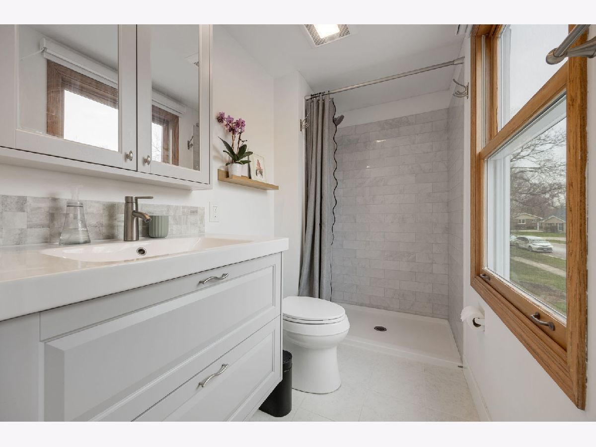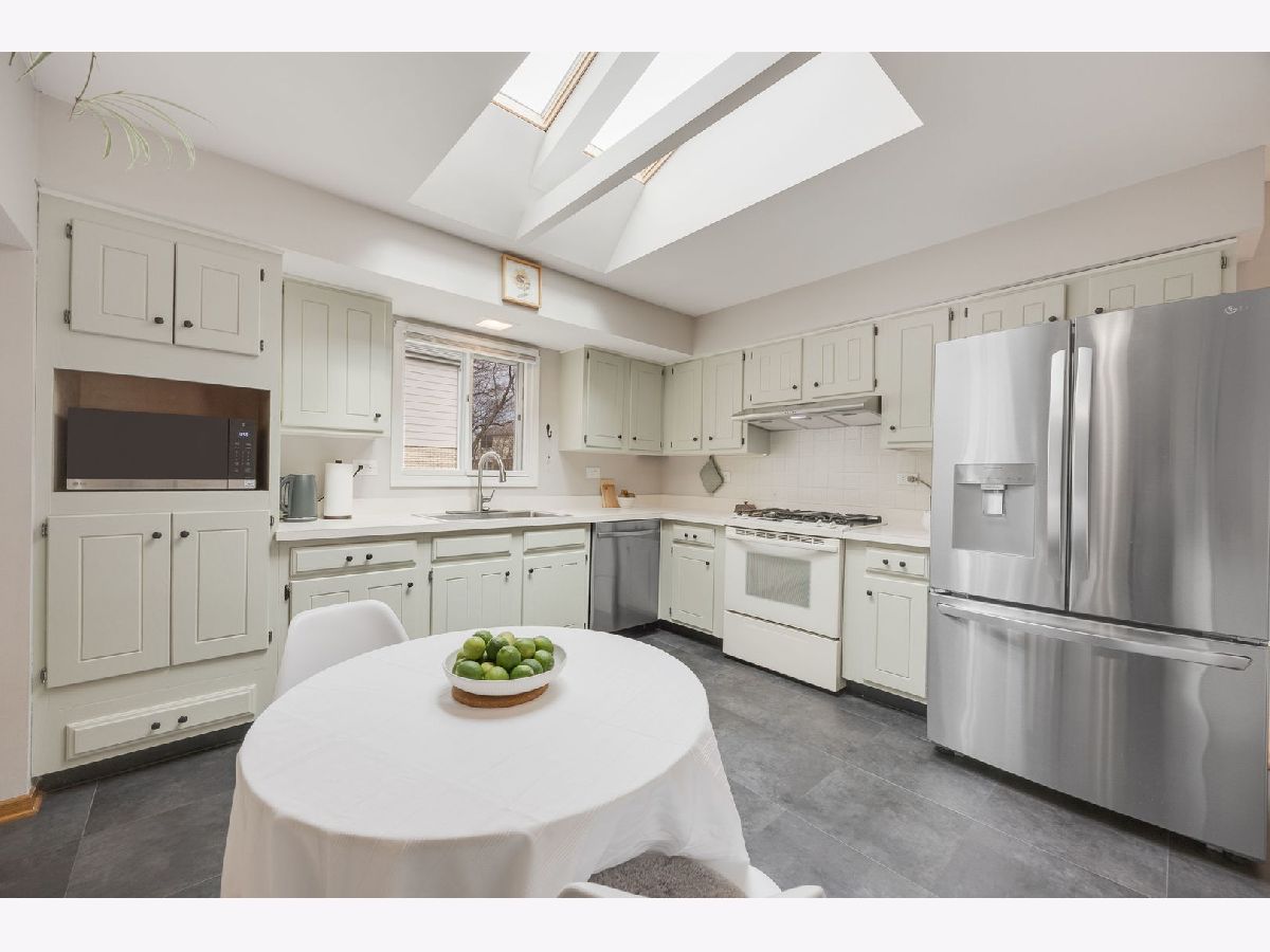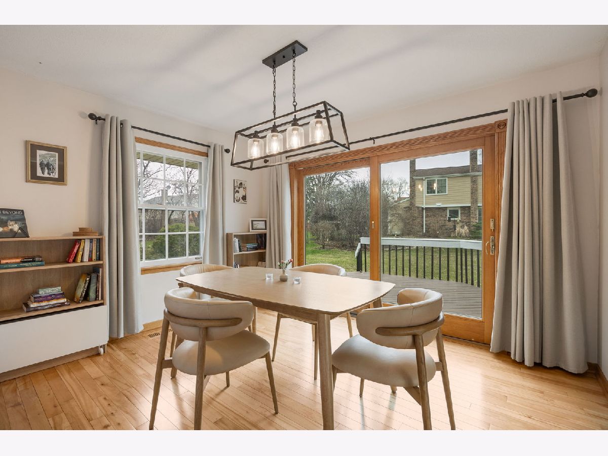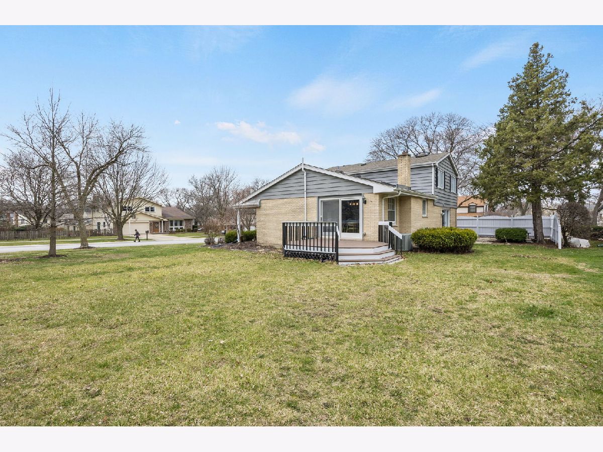 Highly desirable north Naperville location; well established neighborhood convenient to highway and abundant amenities. Large corner lot approx 1/3 acre. Welcoming and relaxing front porch; spacious foyer; sunny south facing living room features floor to ceiling bay window flooding room with natural light. Refreshed kitchen features newer SS refrigerator, dishwasher, hood vent, LVT flooring, additional built in generous sized large double drawer cabinet with deep counter top; double skylight provides plenty of natural light, kitchen opens to cozy gas fireplace living room with slider to concrete patio, breakfast bar and additional built in storage. Sunny dining room with newer Anderson sliding door to large deck overlooking expansive yard. New carpet on stairs and spacious upper hall. All bedrooms feature hardwood flooring and new ceiling fan/lights. Fully updated primary bathroom and refreshed 2nd bathroom features new hard surface counter w/ vessel sink and new toilet. Primary and 3rd bedroom feature IKEA closet systems. Solid wood doors throughout. Spacious unfinished basement measures 21x26 features built in deep shelving units, newer HVAC and roomy laundry corner with laundry sink and new LG front load washer and dryer; free standing dehumidifier will stay. Radon mitigation system installed 2025; new nest thermostat 2026. Ring doorbell. Minutes to abundant area amenties - parks, shopping, dining, entertainment. I88 1.5 mile, metra & downtown Naperville 2 mile. Award winning and highly rated Naperville 203 schools
