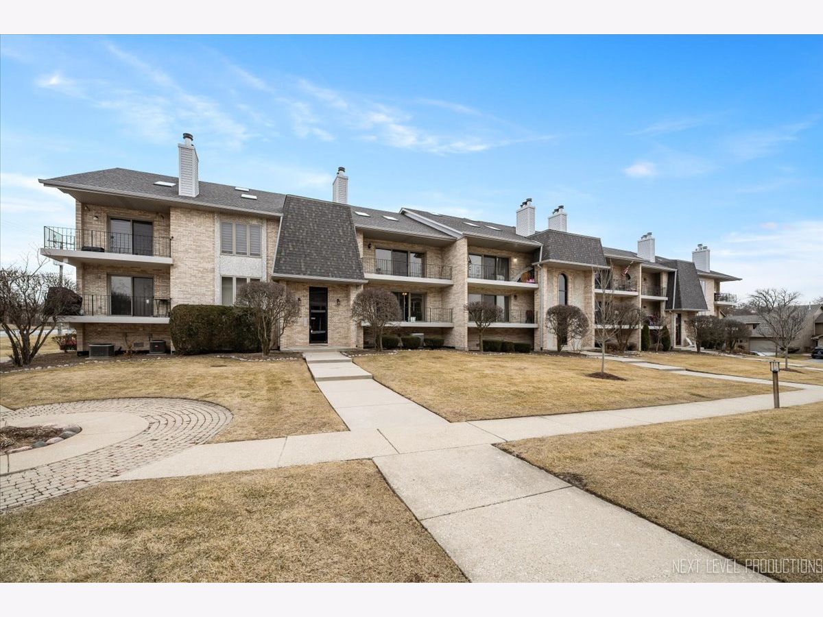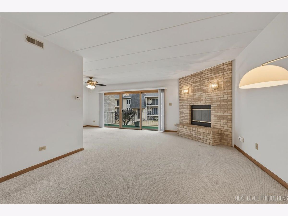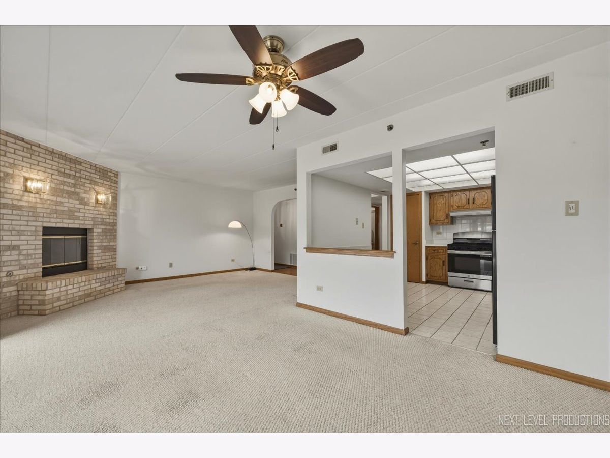 Beautifully maintained 2-bedroom, 2-bath condo in desirable Las Fuentes! A welcoming foyer opens to a sun-filled living room with a classic brick fireplace and seamless flow into the dining area and kitchen, perfect for everyday living and entertaining. Large windows and sliding doors lead to a private balcony overlooking the courtyard, bringing in abundant natural light and a gentle breeze. The eat-in kitchen features newer appliances and a pantry. Enjoy the convenience of in-unit laundry and a mechanical room with a utility sink and drying bar. The spacious primary suite offers two closets and a private full bath, while the second bedroom provides generous closet space. Heated 2-car tandem garage plus additional storage. Ideally located near I-294, I-55, shopping, dining, forest preserves, and more!