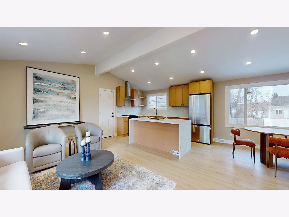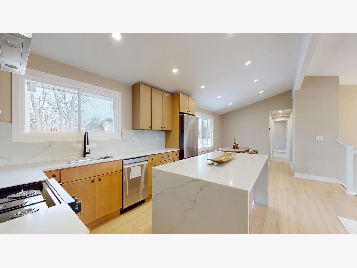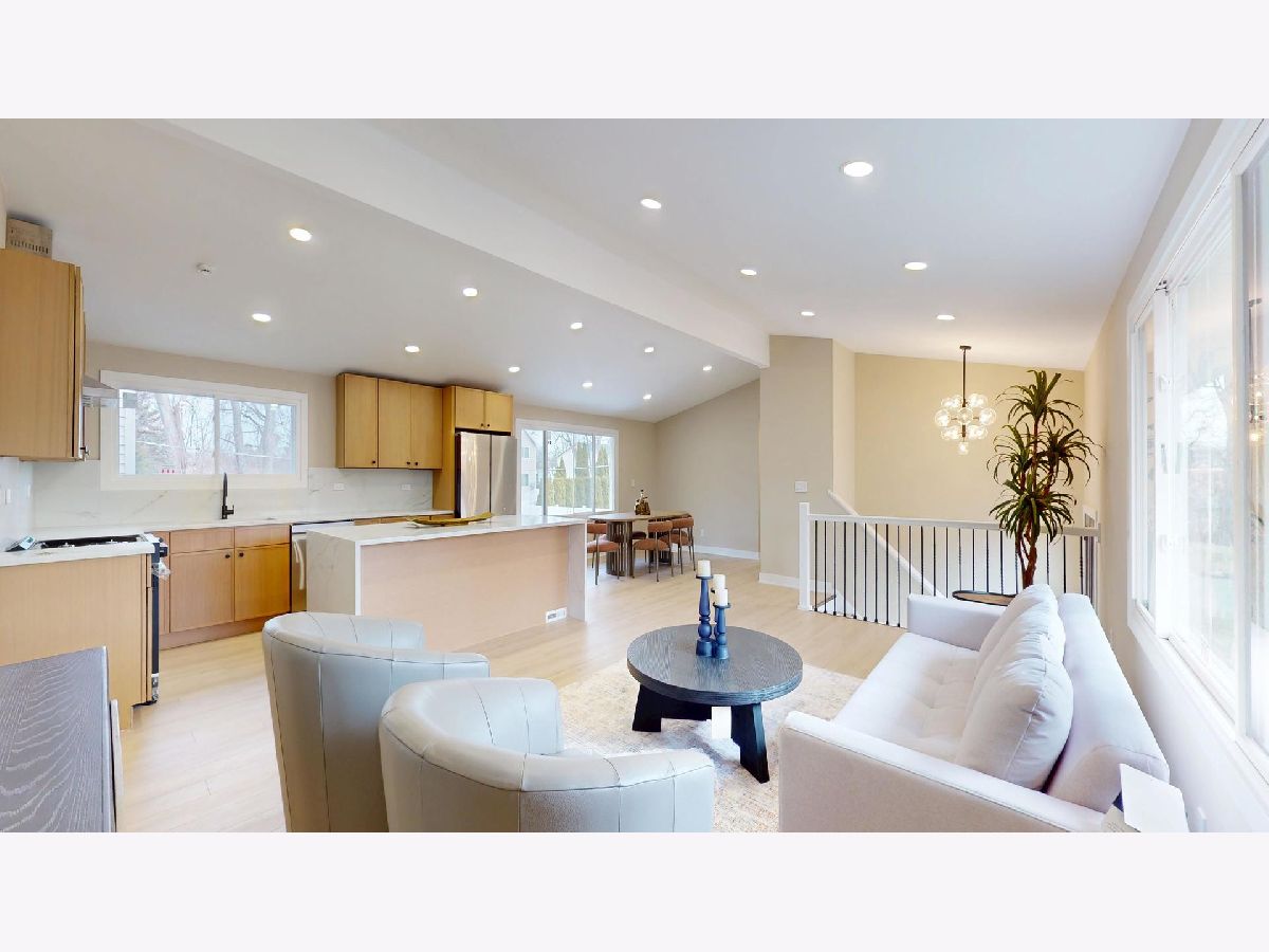 Welcome to this beautifully remodeled home in Lake Bluff offering modern design, space, and functionality. Fully renovated in 2026 with a stunning primary suite and open concept layout, this 5 bedroom, 3 full bath home features a open concept kitchen, living room, and dining room area, a huge family room, attached 2-car garage, and a detached 6-car garage that's ideal for car enthusiasts, a workshop, hobbyists or just extra storage. Step inside to a bright and airy living room featuring vaulted ceilings, large windows and recessed lighting. The dining room flows seamlessly with the kitchen and living room, creating an ideal setup for everyday living and entertaining. The beautifully updated kitchen showcases modern cabinetry, quartz countertops, stainless steel appliances, and a large island with a waterfall feature and seating. The spacious primary suite offers a large walk-in closet and a luxurious en-suite bathroom with dual sinks and a stunning shower featuring beautiful tile work and an accent wall. Four additional bedrooms provide flexible living space for family, guests, or for a home office. Two additional full bathrooms with modern finishes, tile surrounds, and tub/shower combos. The lower level boasts a huge family room, laundry room, with plenty of additional living space. New luxury vinyl plank flooring throughout, new windows, fixtures, and fresh paint make this home truly move-in ready. Located close to parks, schools, downtown Lake Bluff, shopping, dining, and more, this beautifully updated home has it all.