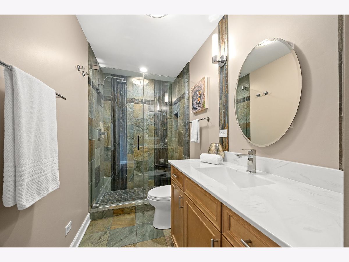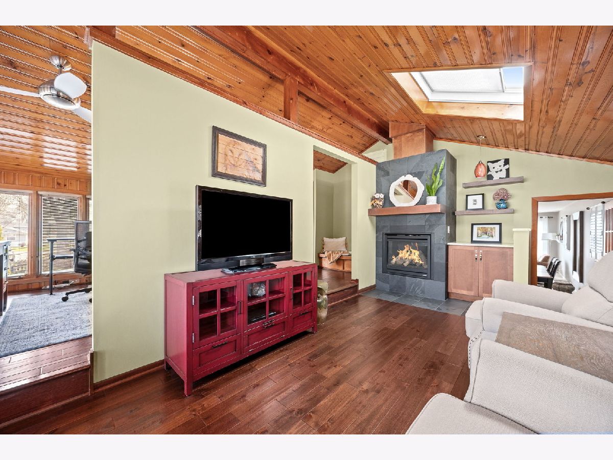 A true gem in North Downers Grove, welcome to 908 40th Street. Nestled on a quiet dead-end street and surrounded by mature trees, this beautifully landscaped property offers both privacy and charm on a spacious lot with an attached garage. This updated raised ranch features inviting, light-filled living spaces and an open floor plan. The bright, white kitchen has been thoughtfully updated with granite countertops, a large peninsula with seating, pull-out shelving, and sleek, no-smudge stainless steel appliances. The kitchen flows seamlessly into the dining area and living room, highlighted by a large picture window that fills the space with natural light. An exceptional main-level addition offers a cozy den with a gas fireplace, skylight, built-in cabinetry, floating shelving, and expansive Pella windows overlooking the picturesque backyard. This level also includes a dedicated office and a versatile bonus space-ideal for a reading nook, mudroom, or drop zone. Three bedrooms with closet organizers and a beautifully updated full bathroom featuring slate tile, a glass-enclosed shower, and a rainhead fixture complete the main level. The lower level expands your living space with durable, wood-look ceramic tile flooring, a spacious family room and recreation area, and large windows that continue to bring in natural light. You'll also find a full bathroom with a tub, laundry room, storage closet, and direct access to the attached 1.5-car garage. Step outside to your private backyard retreat with shed. The expansive patio is perfect for entertaining and outdoor dining. Enjoy peaceful mornings and evenings surrounded by vibrant gardens that attract birds, butterflies, and bees throughout the seasons. Ideally located close to shopping, dining, expressways, and hospitals, and within the highly sought-after Downers Grove North High School district, this home offers the perfect blend of convenience and tranquility.