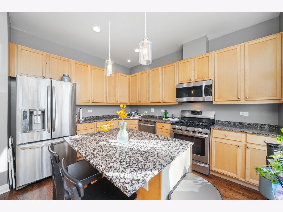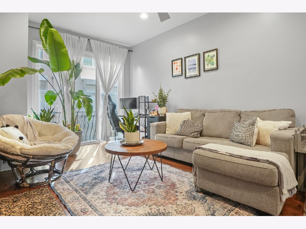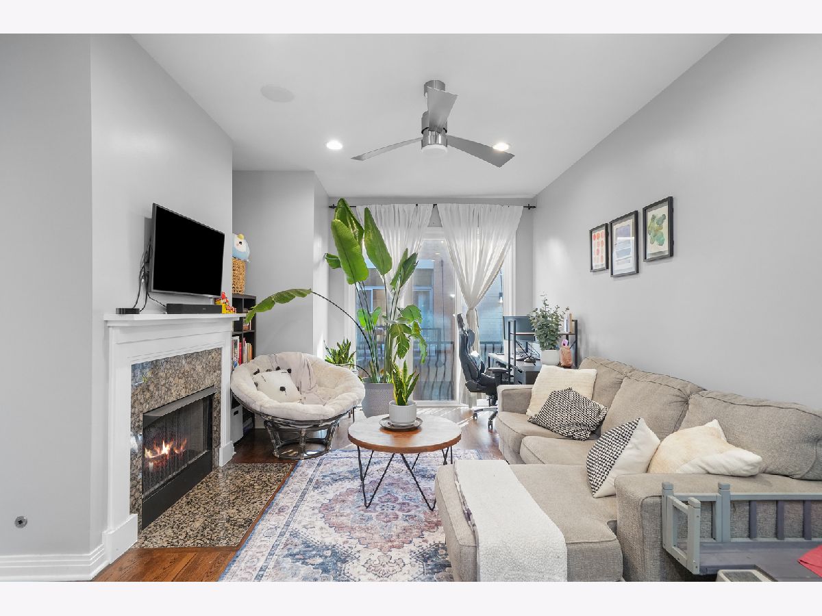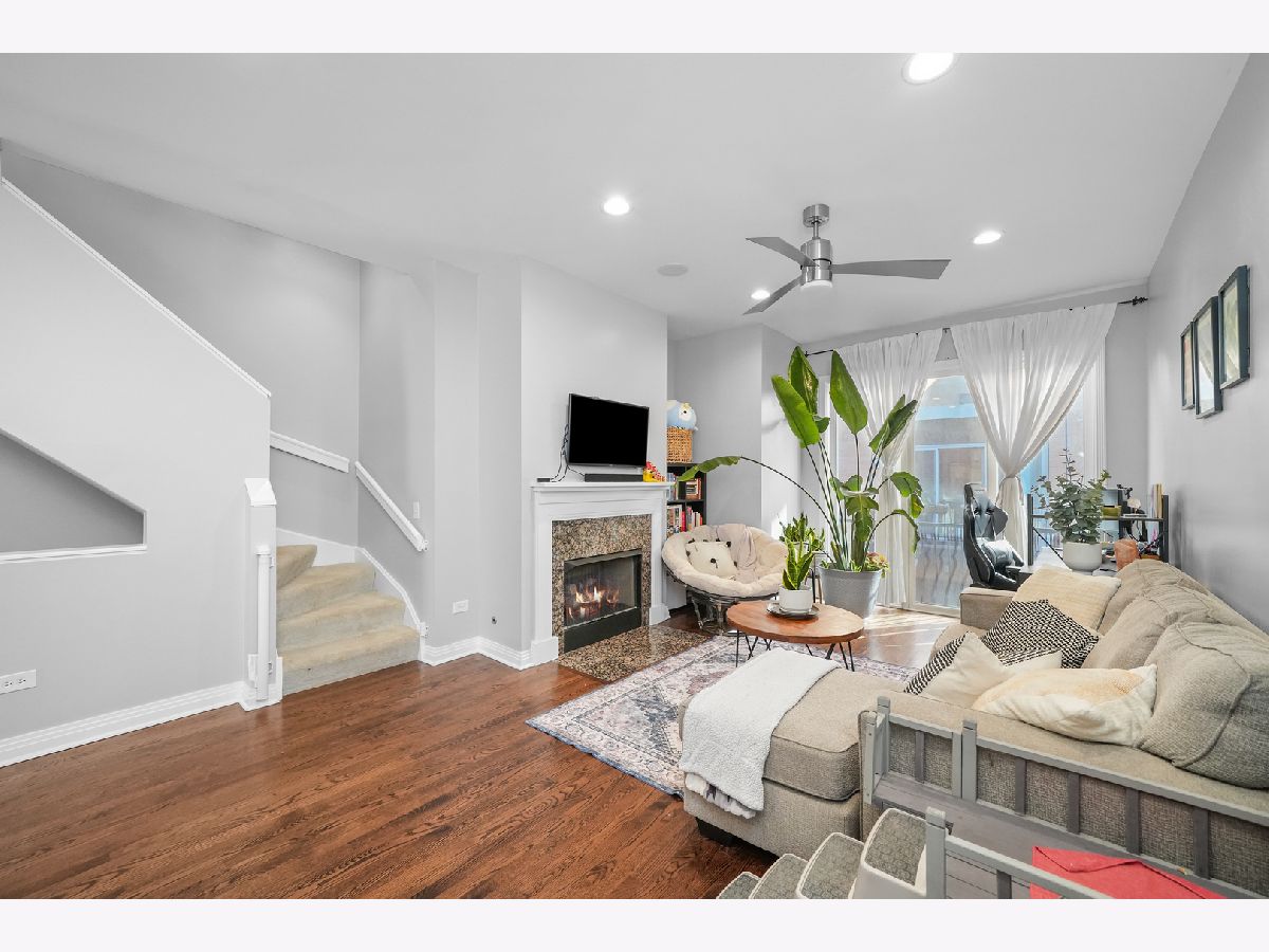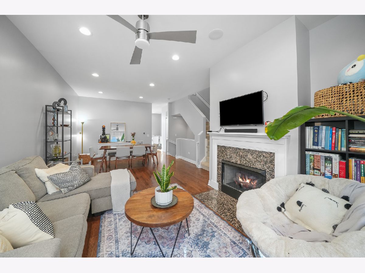 Discover this exceptional 1,900-square-foot townhome tucked within a semi-private, gated courtyard in the peaceful River West neighborhood. Set in a quiet enclave yet perfectly positioned in the heart of the city, this 3-bedroom, 2.1-bath residence offers three private outdoor spaces, soaring ceilings, abundant natural light, and an attached two-car garage. A gated patio welcomes you into the home. The first level features a flexible third bedroom, ideal as a home office or guest suite, complete with a half bath and direct access to the garage. Designed for entertaining, the second level showcases an open-concept living and dining area with a cozy gas fireplace. The kitchen is appointed with granite countertops, stainless steel appliances, a breakfast bar, and a balcony perfect for grilling. A conveniently located laundry closet sits just off the kitchen. The third level hosts a sun-filled primary suite with generous closet space and an ensuite bath. Down the hall, a spacious second bedroom with floor-to-ceiling windows is paired with a full hall bath featuring a tub/shower. The fourth level offers a charming office nook and access to an expansive rooftop deck, an ideal setting for entertaining, dining, or relaxing while taking in stunning city views and sunsets. Located in the heart of River West, this home is just minutes from Fulton Market, the West Loop, River North, and West Town. A quick two-minute walk to the Blue Line and easy expressway access make commuting effortless. Situated within the highly sought-after Ogden School District. Explore the property in 3D-click the 3D button to take a virtual tour and walk through every detail.