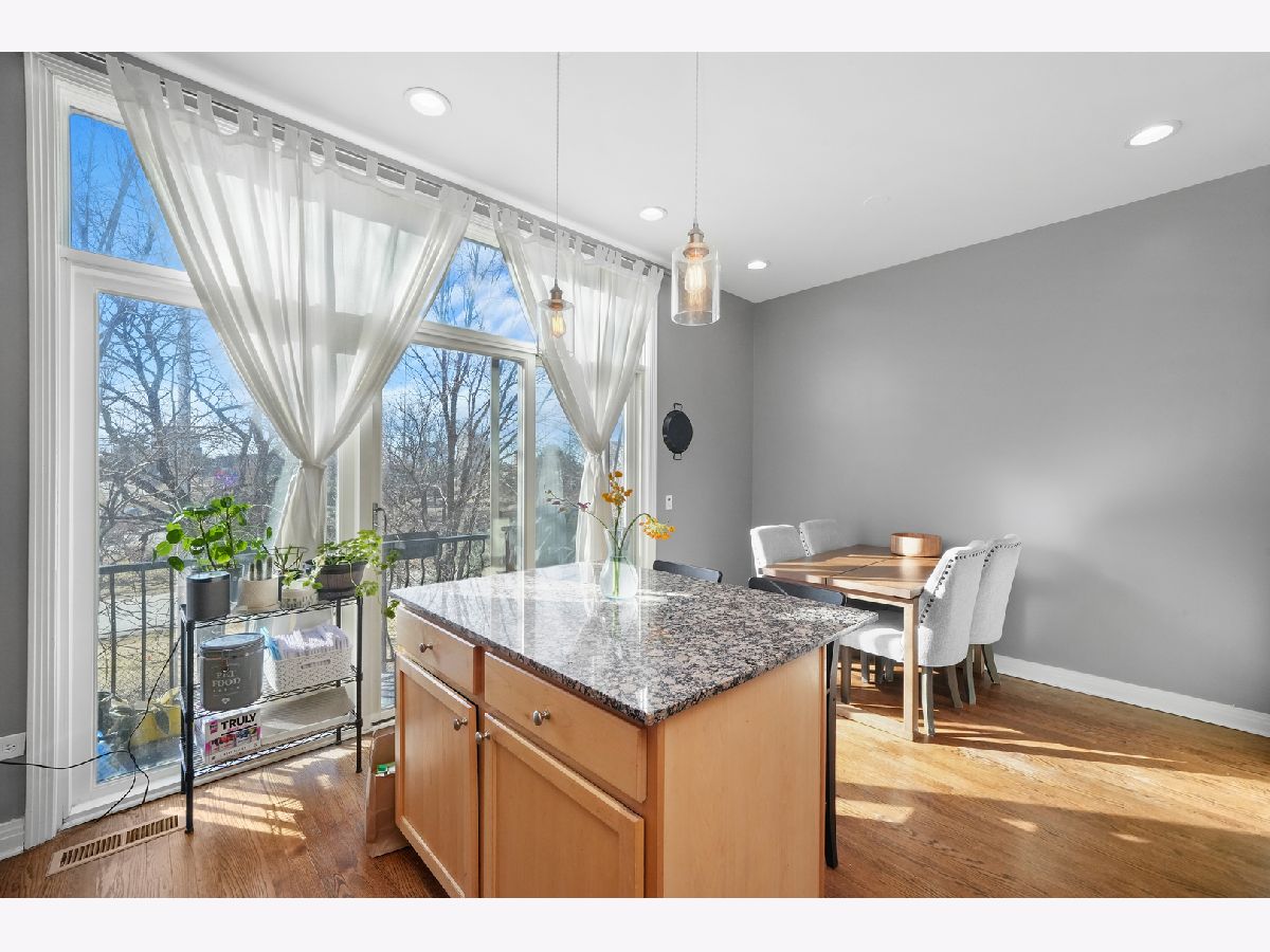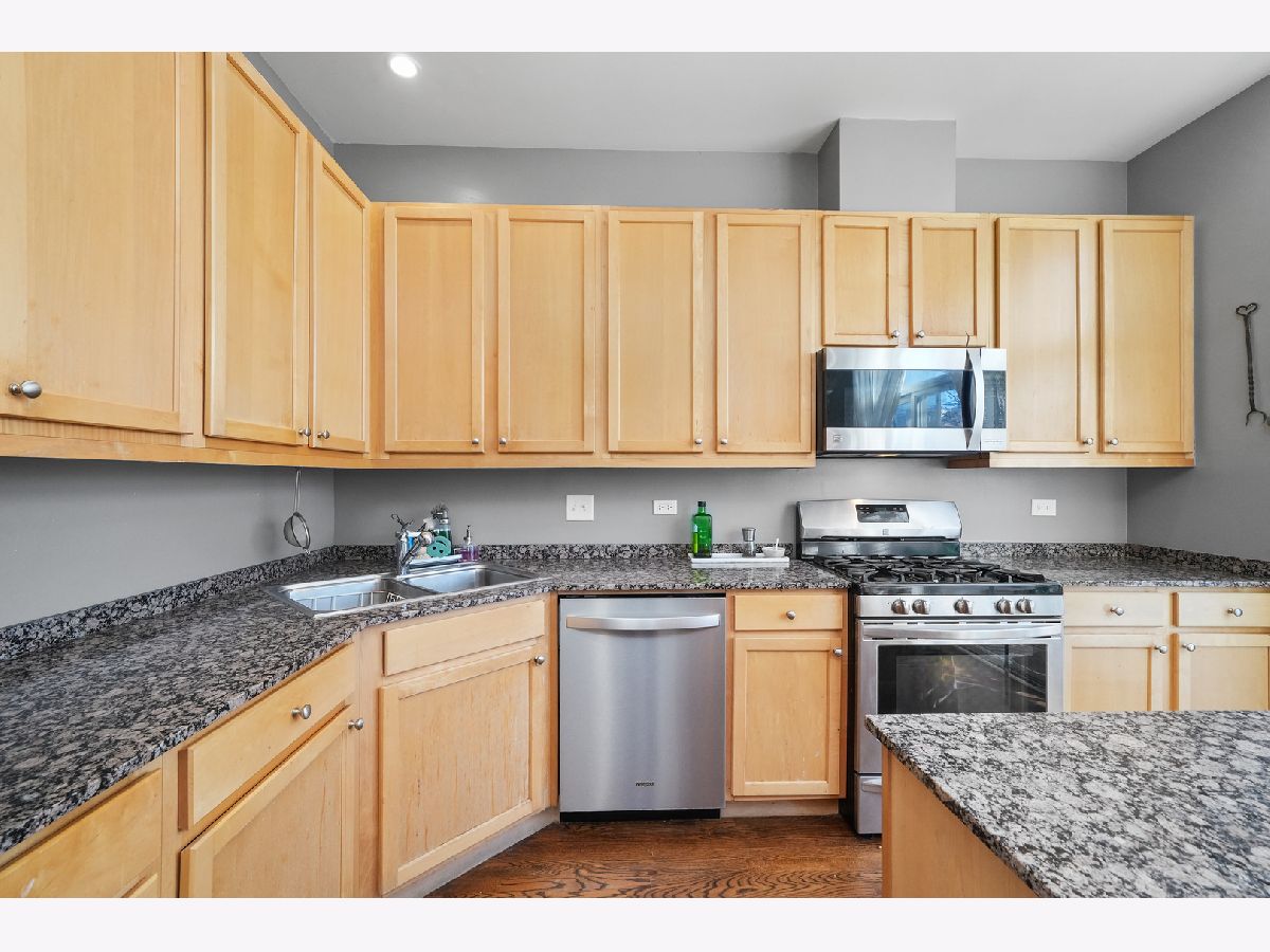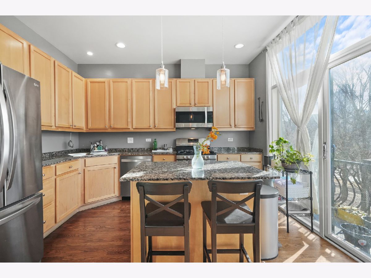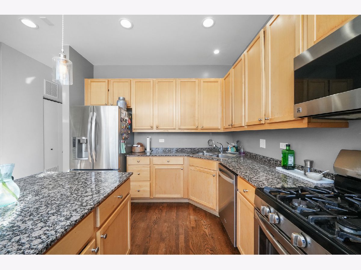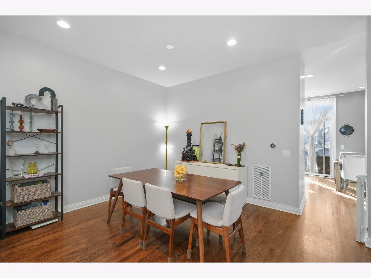 Discover this exceptional 1,900-square-foot townhome tucked within a semi-private, gated courtyard in the peaceful River West neighborhood. Set in a quiet enclave yet perfectly positioned in the heart of the city, this 3-bedroom, 2.1-bath residence offers three private outdoor spaces, soaring ceilings, abundant natural light, and an attached two-car garage. A gated patio welcomes you into the home. The first level features a flexible third bedroom, ideal as a home office or guest suite, complete with a half bath and direct access to the garage. Designed for entertaining, the second level showcases an open-concept living and dining area with a cozy gas fireplace. The kitchen is appointed with granite countertops, stainless steel appliances, a breakfast bar, and a balcony perfect for grilling. A conveniently located laundry closet sits just off the kitchen. The third level hosts a sun-filled primary suite with generous closet space and an ensuite bath. Down the hall, a spacious second bedroom with floor-to-ceiling windows is paired with a full hall bath featuring a tub/shower. The fourth level offers a charming office nook and access to an expansive rooftop deck, an ideal setting for entertaining, dining, or relaxing while taking in stunning city views and sunsets. Located in the heart of River West, this home is just minutes from Fulton Market, the West Loop, River North, and West Town. A quick two-minute walk to the Blue Line and easy expressway access make commuting effortless. Situated within the highly sought-after Ogden School District. Explore the property in 3D-click the 3D button to take a virtual tour and walk through every detail.