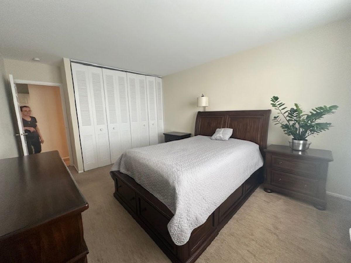 Wonderful bright unit with redone kitchen and bath few years ago. Spacious kitchen with area for table. Large bedroom with wall of closets. Huge walk-in closet. Laundry room on each level and storage locker. Shows well. Large Terrace. Bldg amenities include pool, sundeck, exercise room, and billiards room. 2 exterior parking spaces included. Plenty of parking spaces. Great location convenient to shopping, tollways, airport, theater, community college, bike trails. Handicap Accessible. On site property manager.