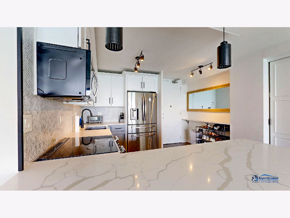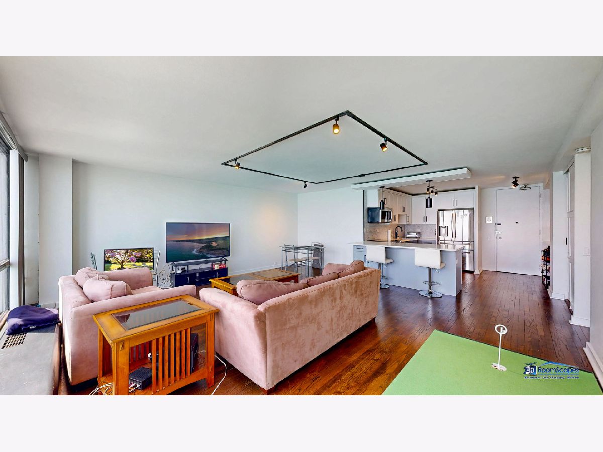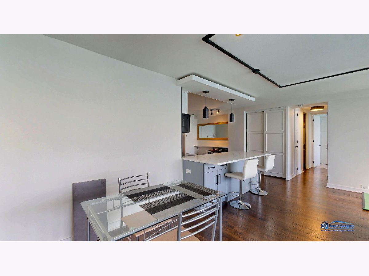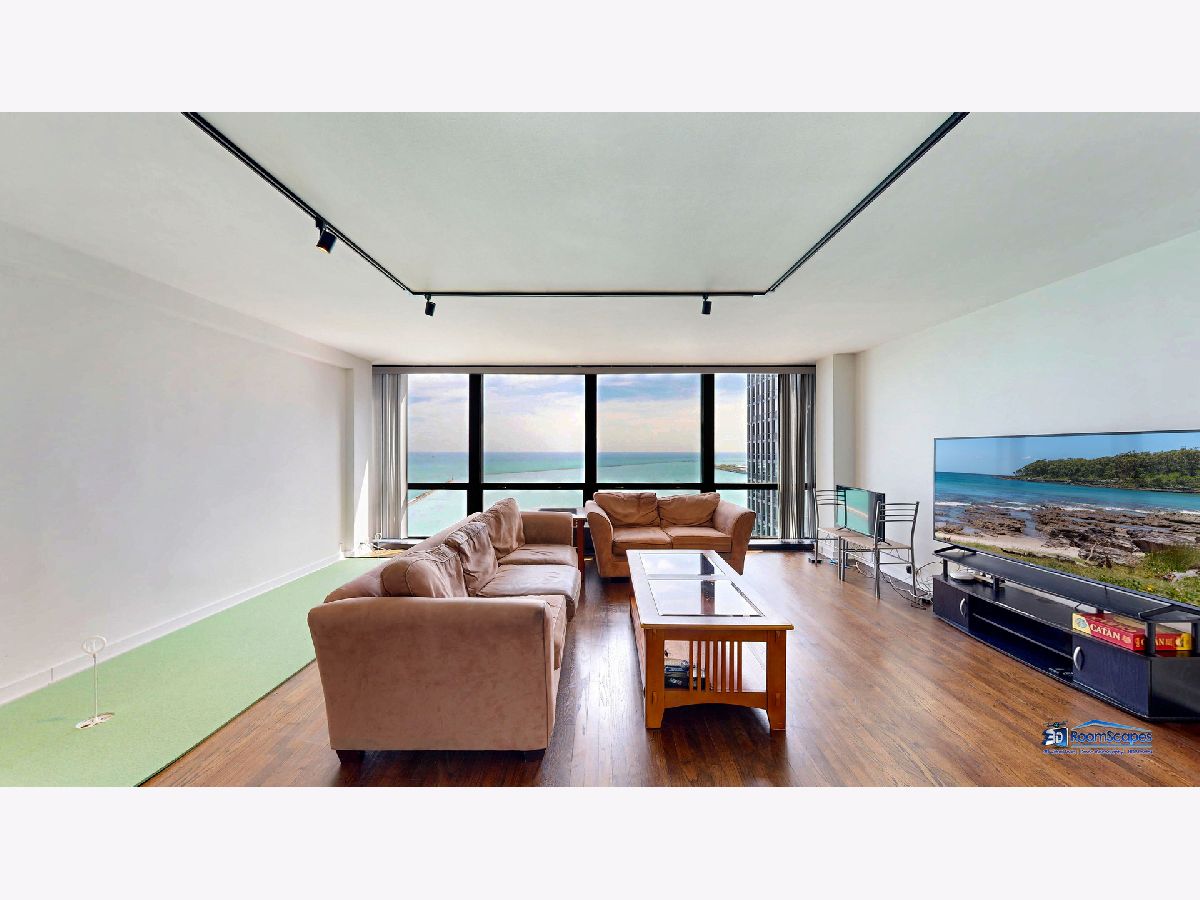 Experience unparalleled lake views from this elegantly renovated 2-bedroom, 2-bathroom condo, ideally situated in the heart of Streeterville. This fabulous unit offers a sophisticated living experience with a beautifully appointed kitchen featuring custom shaker cabinets, quartz countertops, and high-end stainless-steel appliances. Rich dark walnut hardwood floors flow through the bright, open concept living space, illuminated by expansive windows that frame the lake. Two generous bedrooms provide comfort, while the primary suite offers a luxurious escape with a roomy walk-in closet. Both bathrooms are a testament to meticulous design, boasting premium finishes, custom vanities, and elegant fixtures. Beyond the modern luxury and breathtaking views from every room, you'll enjoy building amenities like a 24-hour doorman, on-site management, laundry, and a spacious sundeck. This unbeatable location puts you steps from Oak Street Beach, The Mag Mile, Chicago's finest restaurants, and cultural attractions, offering the quintessential city lifestyle. The building leases parking spaces in the attached garage for $300/space.