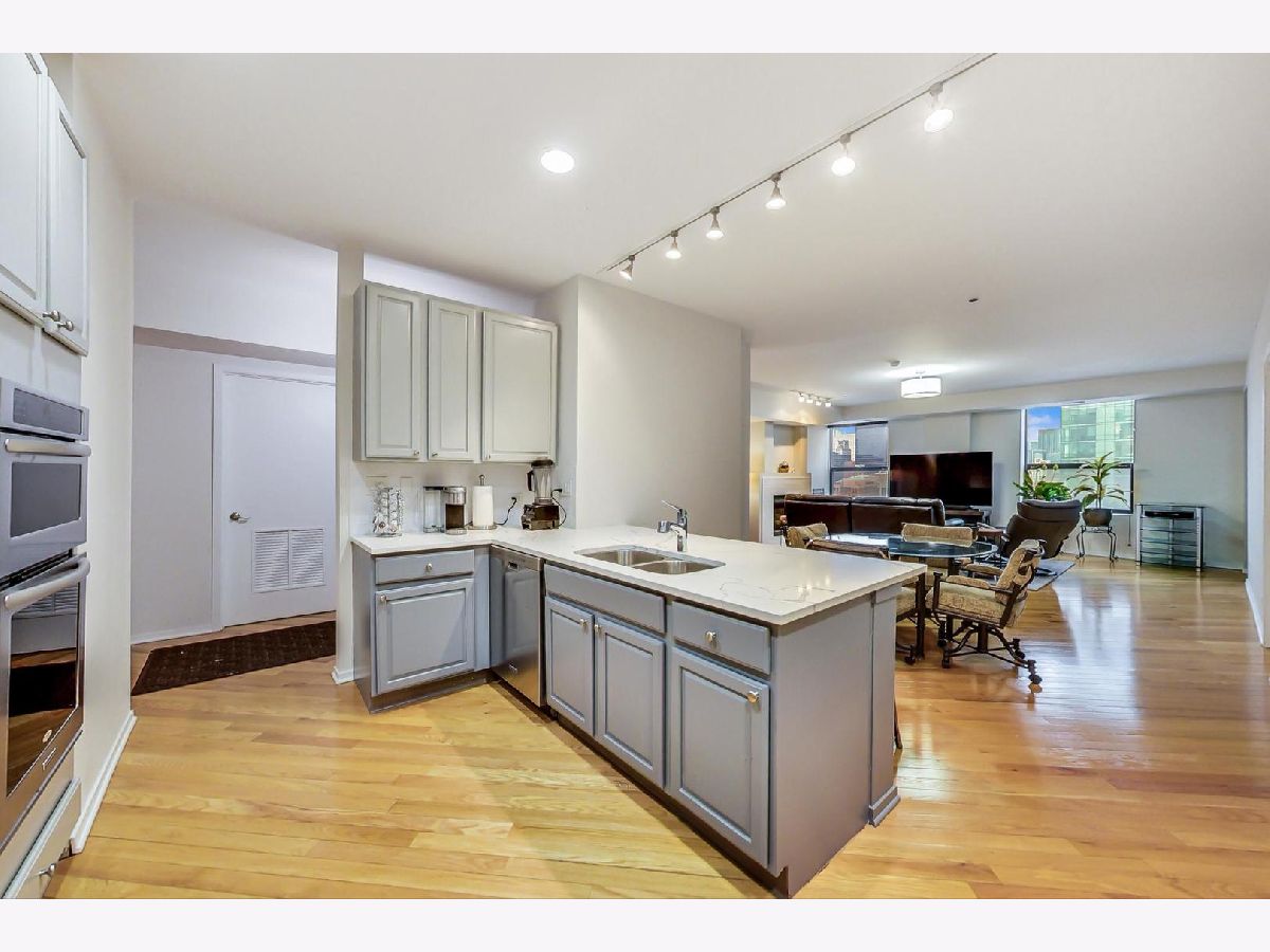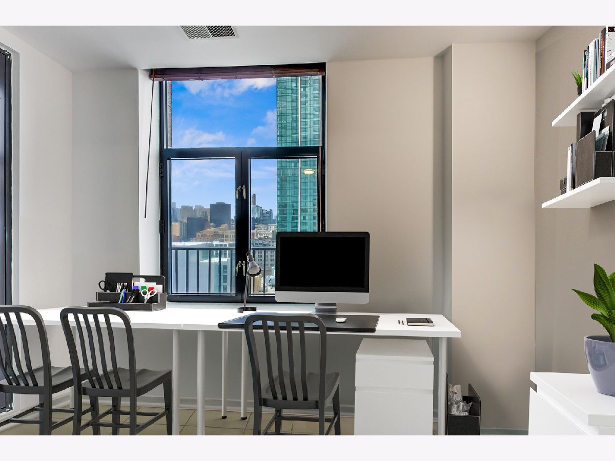Spacious and meticulously updated condo with modern finishes throughout and stunning Navy Pier and Lake Michigan views! Upon entering the condo you are greeted with an elegant living room with an inviting gas fireplace, an abundance of natural light, and beautiful hardwood floors throughout. The kitchen was recently renovated with luxury Italian quartz counters, subway tile back-splash, trendy hi-gloss blue/gray cabinetry and newer stainless steel appliances. New carpeting installed in both bedrooms in 2020. The massive primary suite boasts TWO walk in closets and a spa-like bathroom featuring dual vanities, Jacuzzi tub and separate walk-in shower. Fully enclosed second bedroom opens to a bonus/office space showcasing sweeping city and lake views. A convenient second bath and laundry room complete this wonderful home. Impeccably maintained building with strong reserves and great amenities including door staff, gym, yoga room, library, valet, dry cleaners, large storage room, and on-site management. Heated garage parking available for an additional $35k and must be purchased with the condo. Easy access to public transportation and expressways, and only minutes from the Lakefront Path, Museum Campus, summer festivals and everything else Grant Park and Millennium Park have to offer. Steps away from all that Michigan Avenue has to offer!