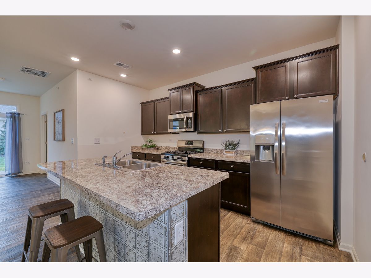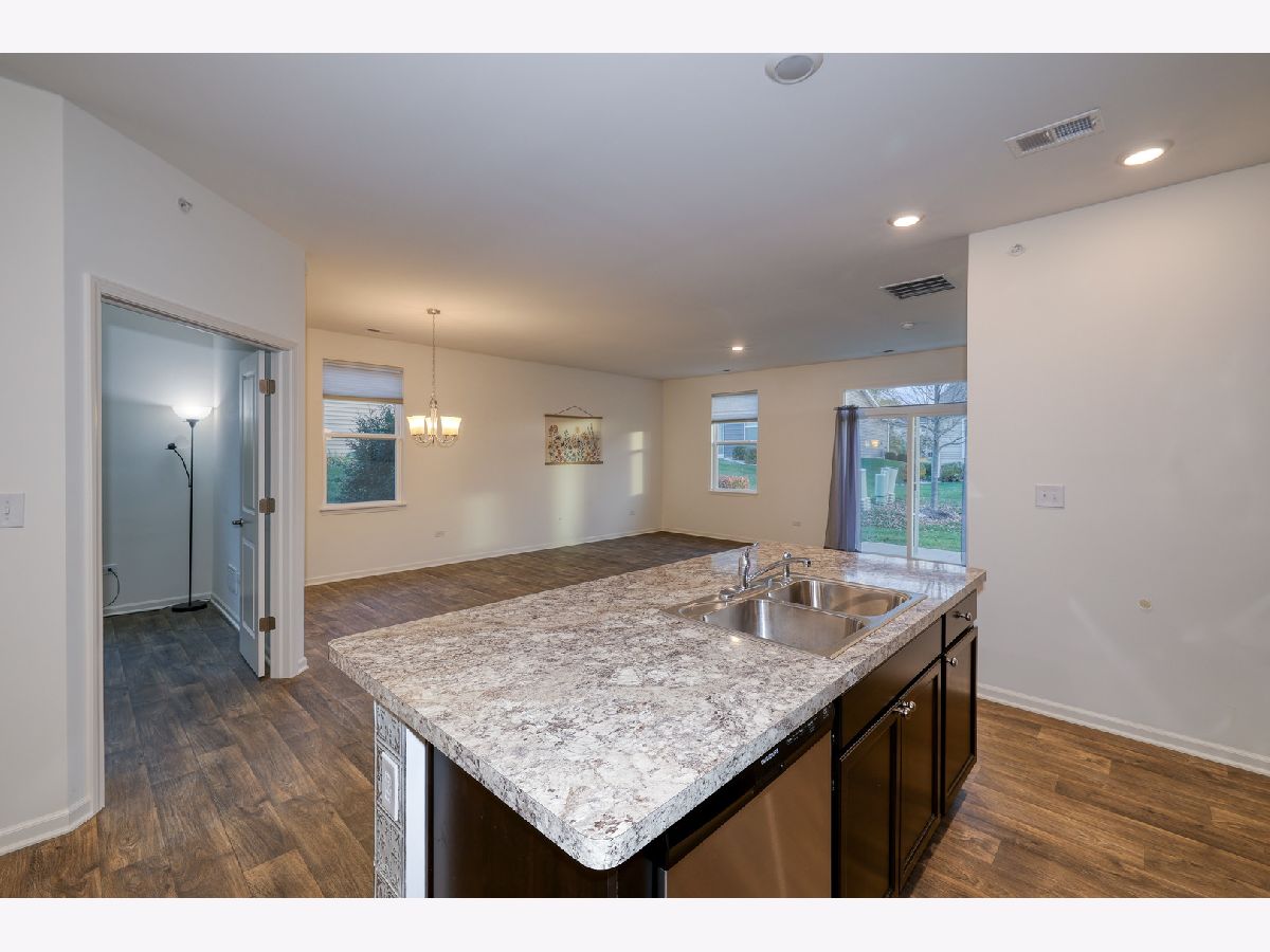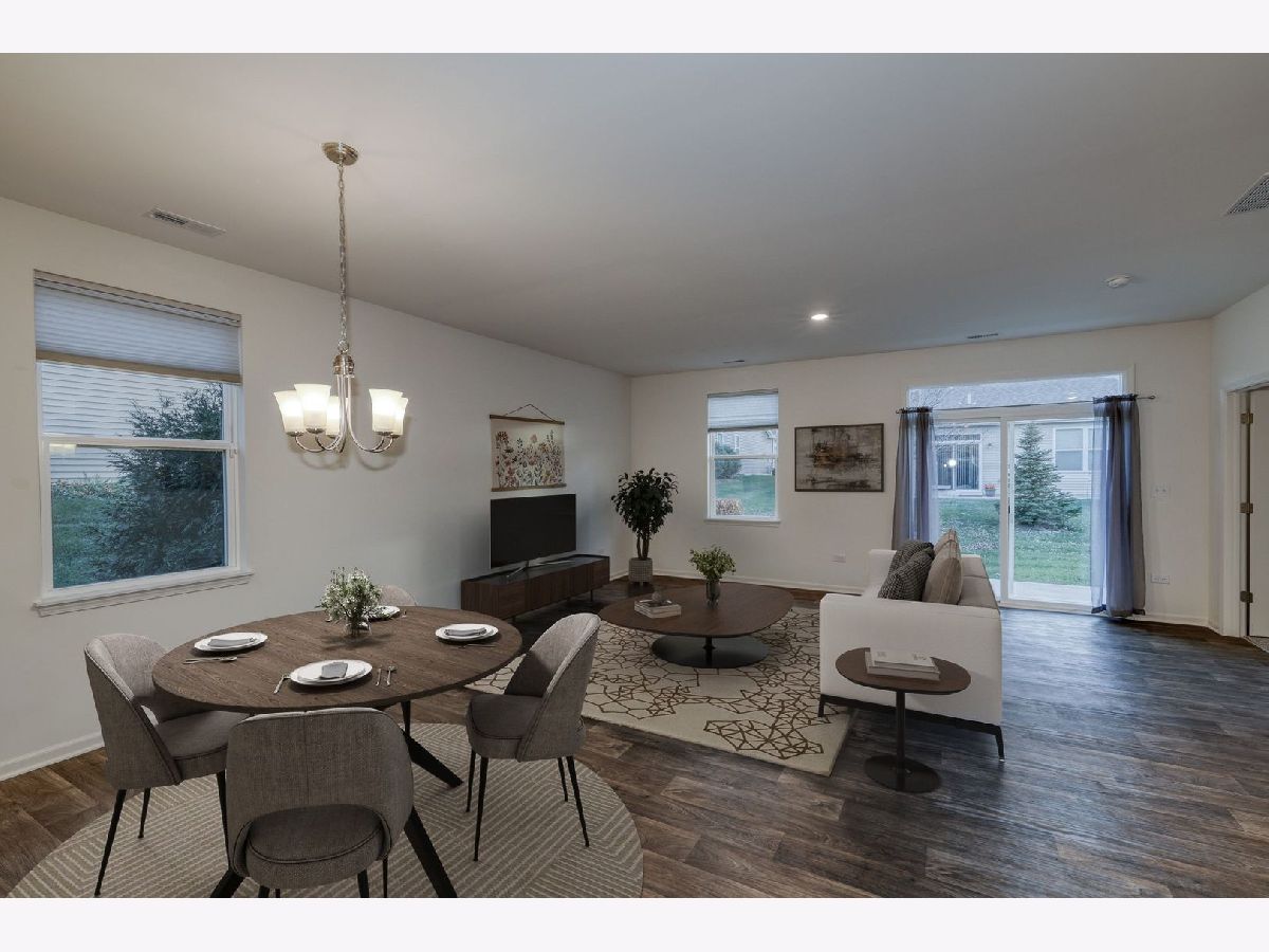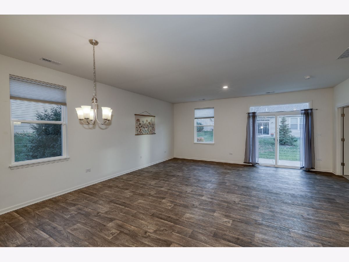 Fantastic end-unit ranch townhome with 2 beds plus den and 2 full baths in sought-after Lincoln Valley. Built in 2020, this Galway model is the largest of the triplexes offering 1,413 square feet of beautifully designed space filled with natural light. The kitchen, living room, and dining area flow seamlessly together, creating an inviting and spacious layout perfect for entertaining or relaxing at home. The kitchen features a large island with seating, designer cabinets with crown molding, a pantry, and stainless steel appliances. The primary suite includes a huge walk-in closet and private bath with a stand-up seated shower, linen closet, and raised vanity. The den with double doors provides a versatile space for an office or guest room. Additional features include a two-car garage and smart home technology for modern comfort and convenience. Enjoy resort-style living in Lincoln Valley's clubhouse community, offering a health club, pool, bocce ball and pickleball courts, and scenic walking trails. Ideally located across from the Red Oak Nature Center and Fox River Trail, this home combines nature, community, and low-maintenance living.