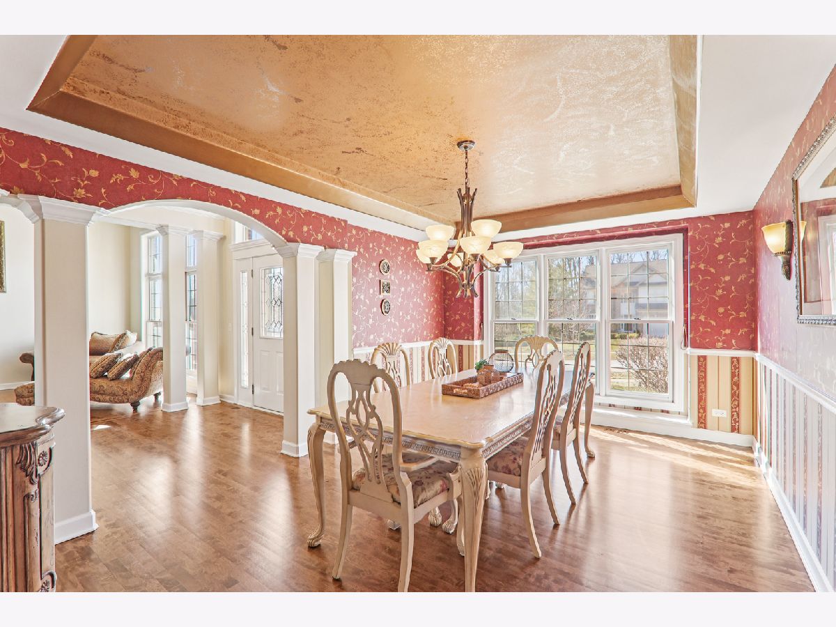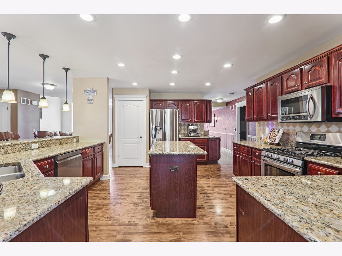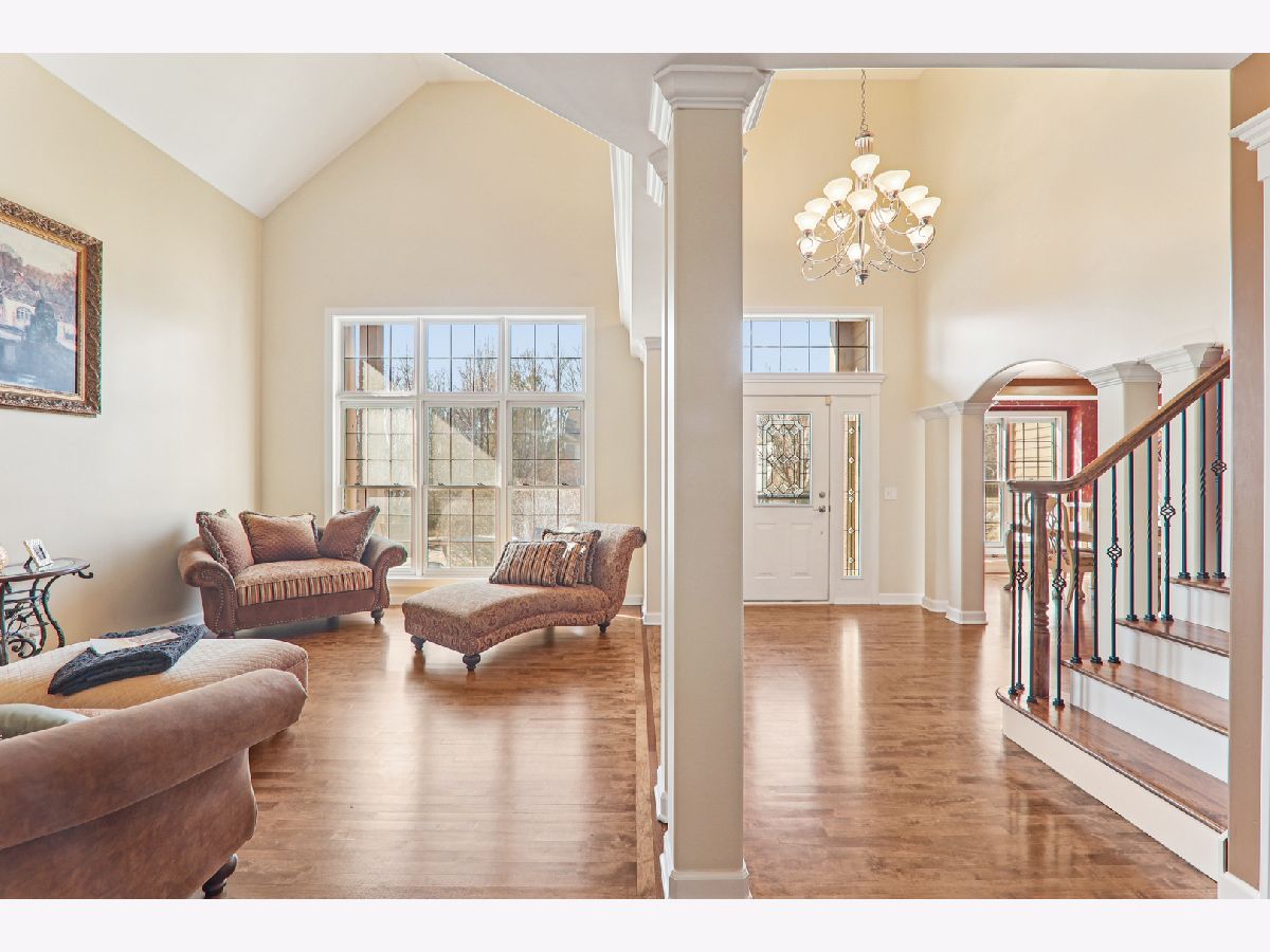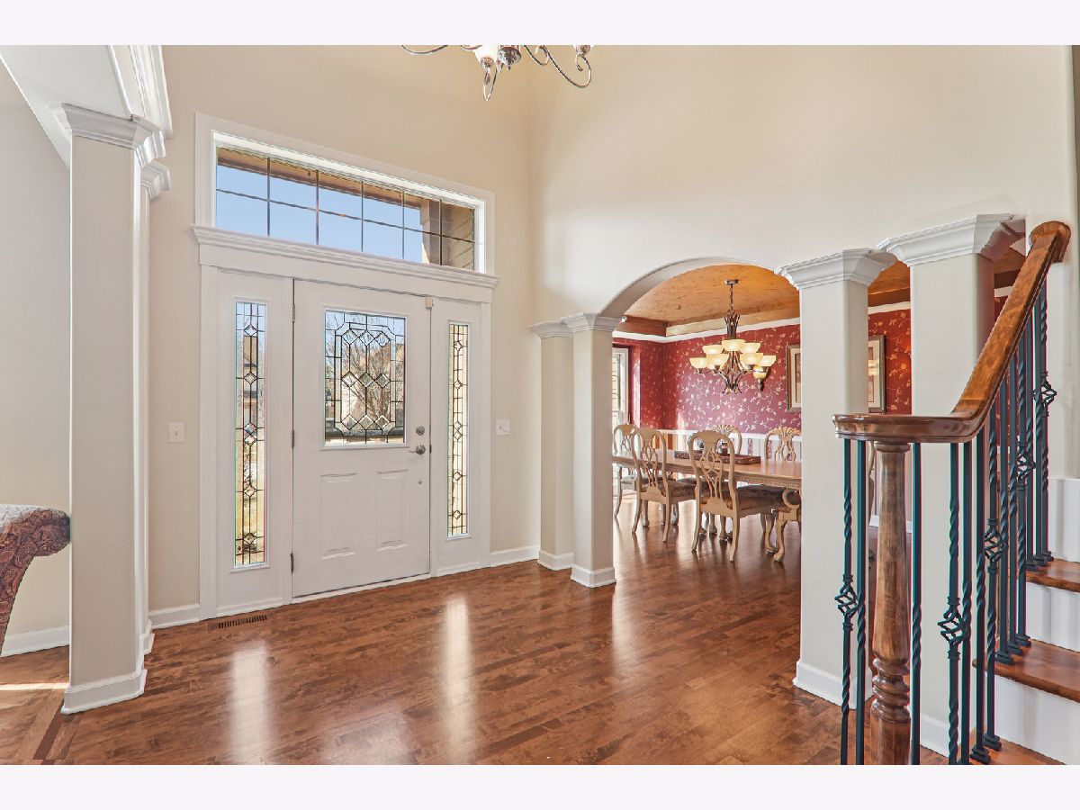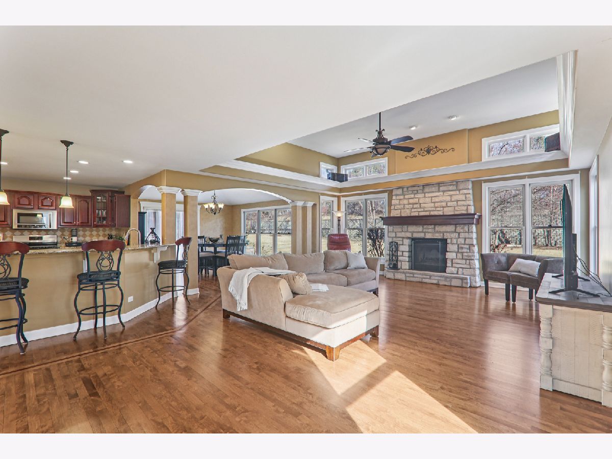 At just under 4,000 square feet, this gorgeous home offers an open-concept design ideal for everyday living, entertaining, and working from home. Hardwood flooring flows throughout the majority of the home. A welcoming covered front porch opens to a dramatic two-story foyer, flanked by a sun-filled living room and a formal dining room featuring a tray ceiling and an expansive butler's serving bar with extended cabinetry. The gourmet kitchen showcases granite countertops, stainless steel appliances, a large island with breakfast bar seating, and a pantry closet-perfect for the home chef. The kitchen opens seamlessly to the bright breakfast room and spacious family room, highlighted by a stone fireplace and walls of windows. The breakfast area leads to a brick paver patio overlooking the huge backyard. A private den and convenient laundry center complete the main level. Upstairs, a massive gallery hallway with wood flooring leads to four generously sized bedrooms. The primary suite features a tray ceiling, sitting room, and an oversized walk-in closet. The luxurious private bath includes a large skylight for abundant natural light. The hall bath has been beautifully remodeled. The full deep-pour English basement is ready to be finished and already includes a bath rough-in. The professionally finished 3-car garage features an epoxy floor, built-in storage, a two-car door, and a tandem third bay ideal for bikes, boats, a collector car, or motorcycle. Despite its impressive size, this home offers a warm and welcoming feel, enhanced by a newer roof and dual HVAC systems. Located in the Hampshire High School district and just minutes to I-90, Randall Road shopping and dining, and the Metra for easy commuting.
