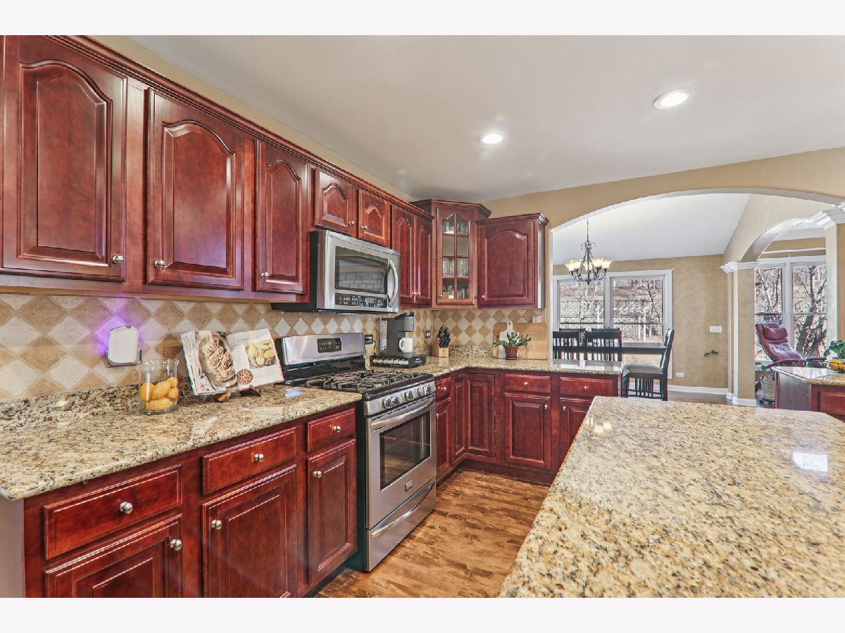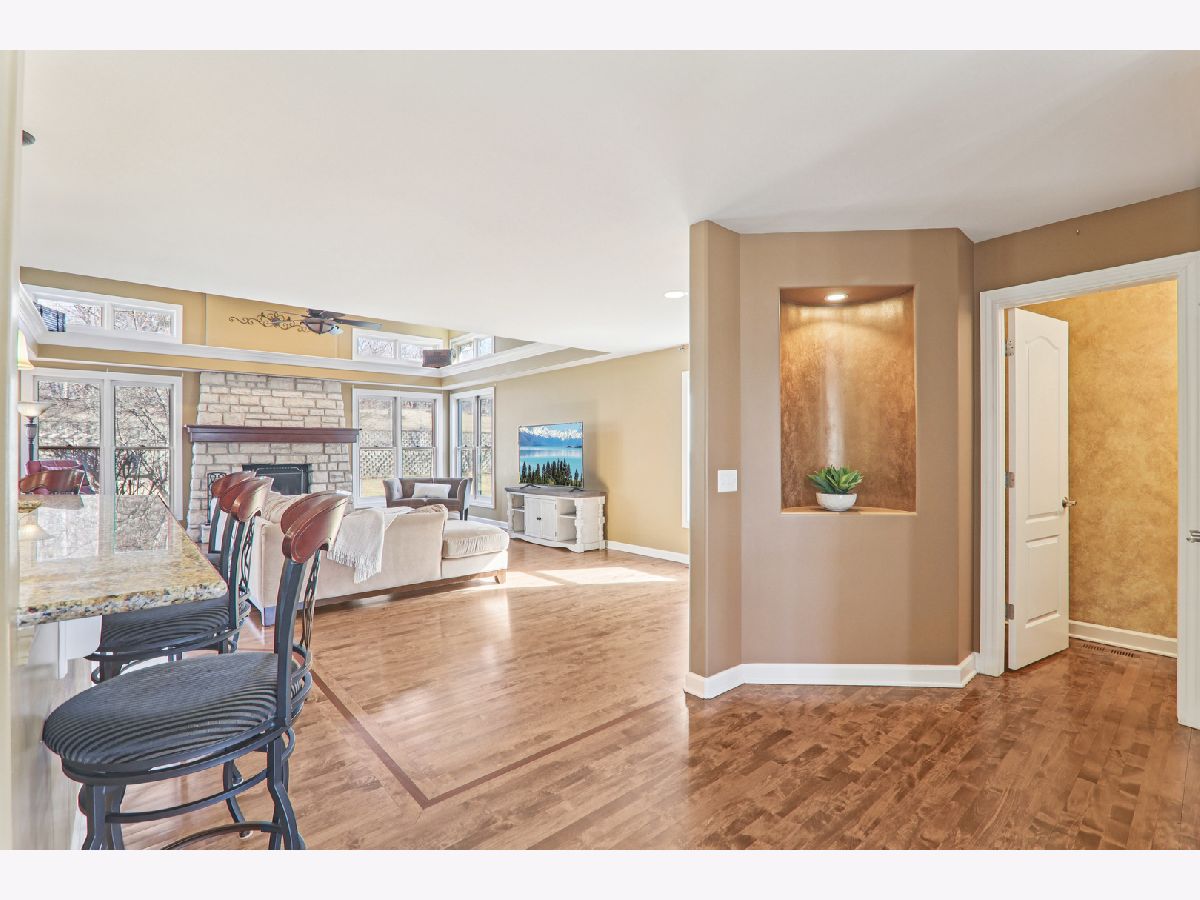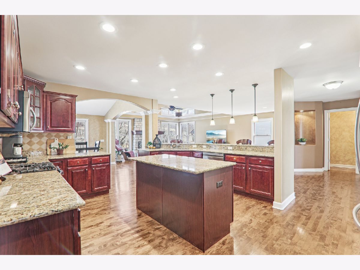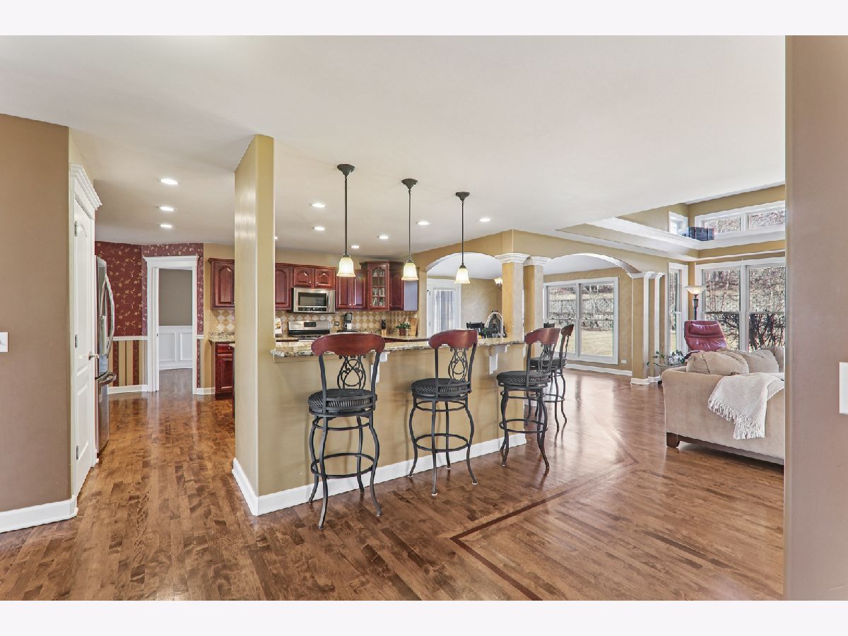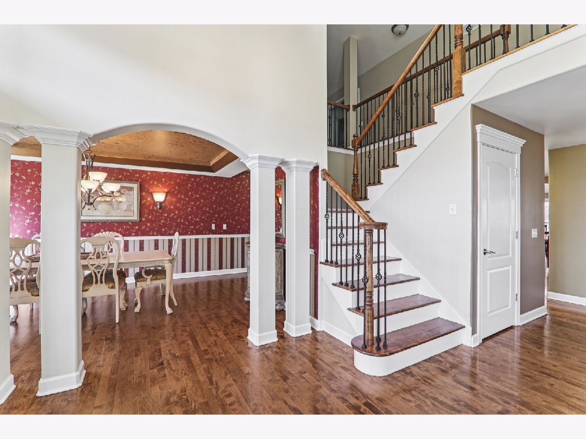 At just under 4,000 square feet, this gorgeous home offers an open-concept design ideal for everyday living, entertaining, and working from home. Hardwood flooring flows throughout the majority of the home. A welcoming covered front porch opens to a dramatic two-story foyer, flanked by a sun-filled living room and a formal dining room featuring a tray ceiling and an expansive butler's serving bar with extended cabinetry. The gourmet kitchen showcases granite countertops, stainless steel appliances, a large island with breakfast bar seating, and a pantry closet-perfect for the home chef. The kitchen opens seamlessly to the bright breakfast room and spacious family room, highlighted by a stone fireplace and walls of windows. The breakfast area leads to a brick paver patio overlooking the huge backyard. A private den and convenient laundry center complete the main level. Upstairs, a massive gallery hallway with wood flooring leads to four generously sized bedrooms. The primary suite features a tray ceiling, sitting room, and an oversized walk-in closet. The luxurious private bath includes a large skylight for abundant natural light. The hall bath has been beautifully remodeled. The full deep-pour English basement is ready to be finished and already includes a bath rough-in. The professionally finished 3-car garage features an epoxy floor, built-in storage, a two-car door, and a tandem third bay ideal for bikes, boats, a collector car, or motorcycle. Despite its impressive size, this home offers a warm and welcoming feel, enhanced by a newer roof and dual HVAC systems. Located in the Hampshire High School district and just minutes to I-90, Randall Road shopping and dining, and the Metra for easy commuting.