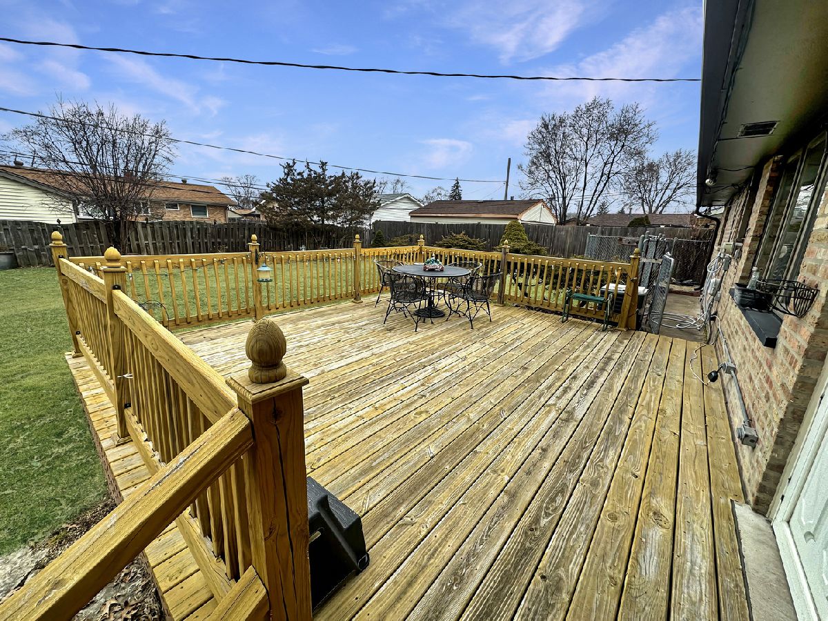 Welcome to this well-maintained 3-bedroom, 1.1-bath Southfield ranch in Bridgeview. A brick paver front porch entry leads into the bright living room featuring vinyl plank flooring (hardwood underneath). Hardwood floors continue through all three bedrooms. The eat-in kitchen offers granite countertops, a pantry closet, stainless steel refrigerator, gas stove, microwave, and a breakfast bar that opens to the living room-perfect for everyday living and casual entertaining. A convenient half bath just off the kitchen includes a dedicated laundry area. Additional features include a crawl space with sump pump, LeafGuard gutters (2020), and an asphalt driveway providing ample parking, leading to an attached oversized 1-car garage (no interior access). The rear deck, approximately 3 years old, offers great outdoor space for relaxing or entertaining plus there is a fenced in dog run too. Major updates include furnace (March 2013), hot water heater (October 2023), drain tile system in cement crawl and roof. Estate sale-property is being sold strictly as-is. Inspections are welcome for informational purposes only.
