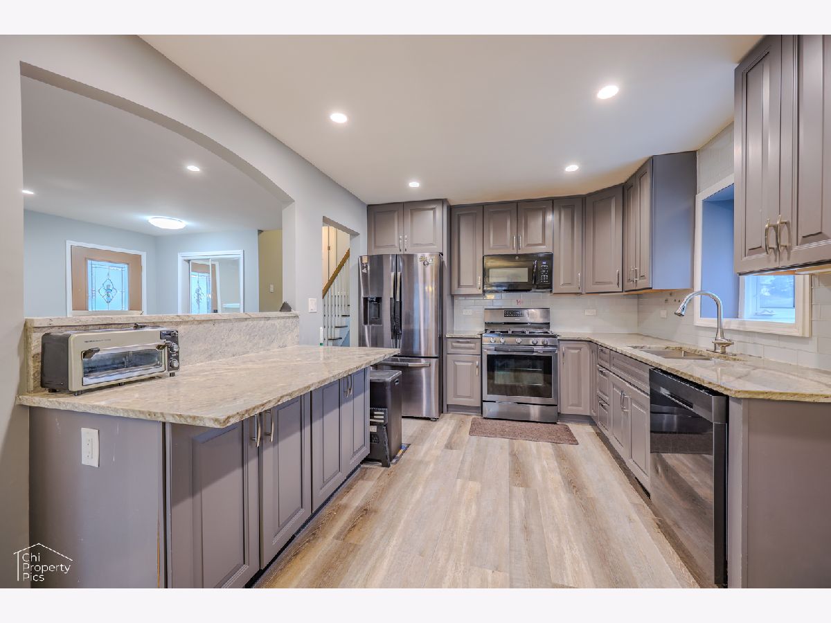 Beautifully updated single-family tri-level home located in a desirable and quiet neighborhood in Morton Grove, offering 1,960 square feet of well-designed living space with four bedrooms and two bathrooms. The main level features a stunning modern kitchen with granite countertops, a spacious breakfast island, stainless steel appliances, and soft-close cabinetry, seamlessly opening to the dining and living areas-perfect for everyday living and entertaining. Large bay windows with a built-in sill fill the home with abundant natural light, and the entire home has been freshly painted, giving it a bright and move-in-ready feel. The upper level includes three generously sized bedrooms, each with ceiling fans and similar layouts, along with a full bathroom. The lower level boasts a large recreation room that includes a laundry area, an additional bathroom, and a versatile fourth bedroom that can also serve as a work-from-home office. From the rear of the rec room, step out to an expansive backyard featuring a concrete patio, storage shed, and a beautiful Asian pear tree, all situated on an approximately 9,000 square foot lot. The property also includes a driveway that comfortably fits four cars, a one-car garage, a landscaped front garden with flowers and plants, and a crawl space for additional storage. Ideally located near parks, trails, shopping, restaurants, and public transportation, with convenient access to I-94 and nearby schools including Hynes Elementary School and Golf Middle School-this move-in-ready home offers the perfect combination of comfort, space, and convenience. A wonderful opportunity to own a home in a fantastic location!